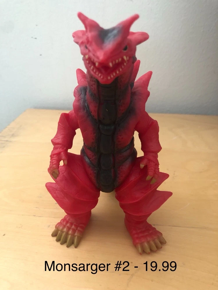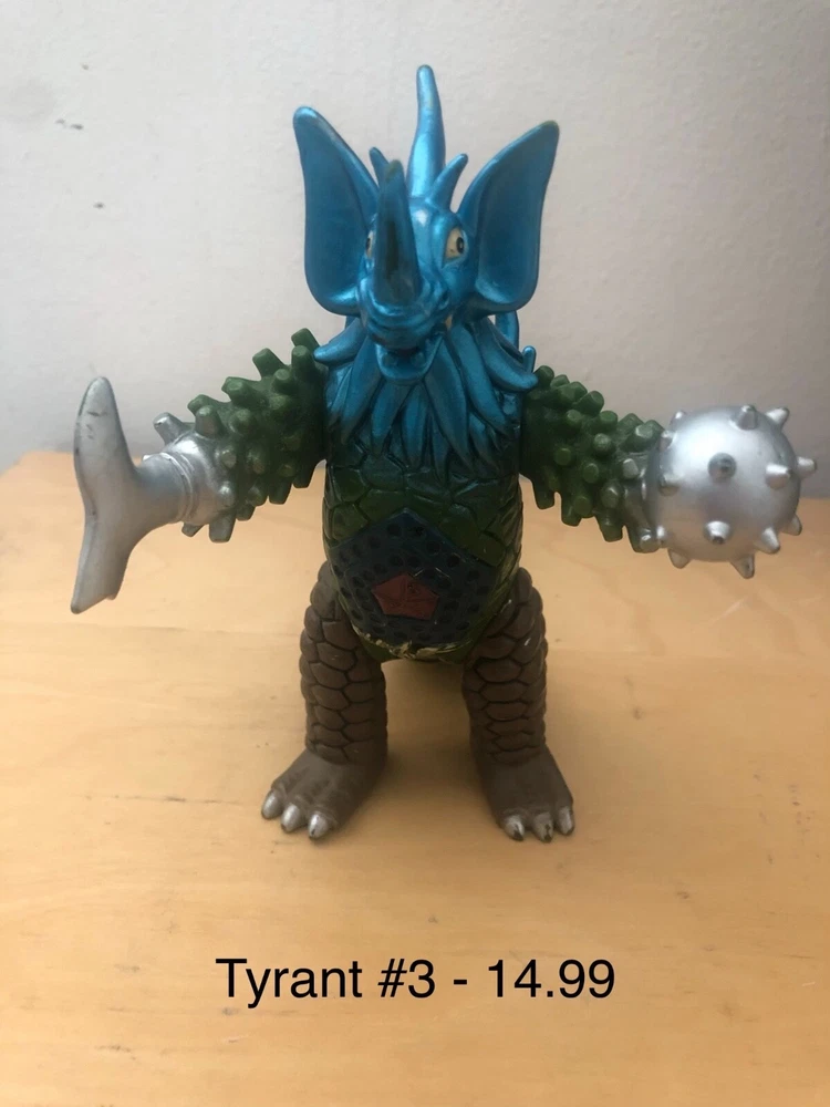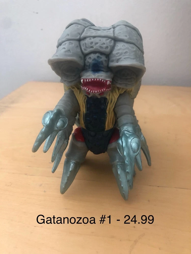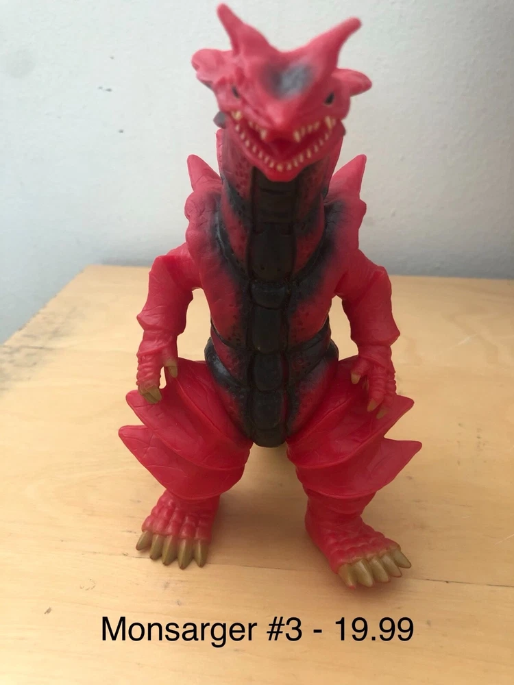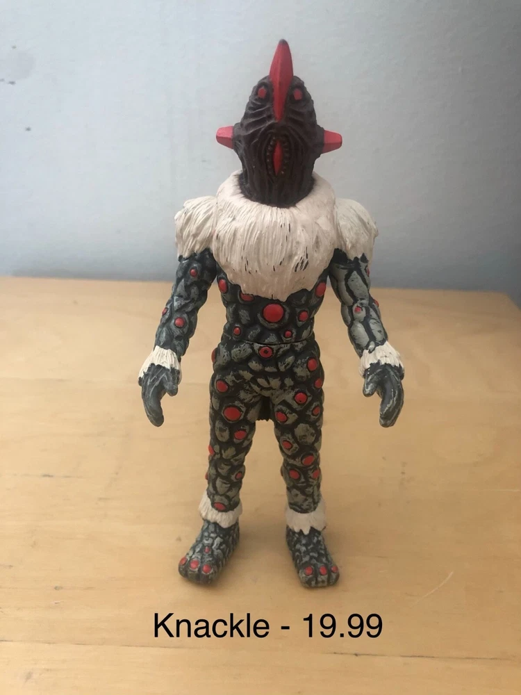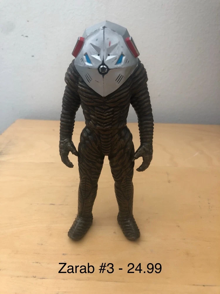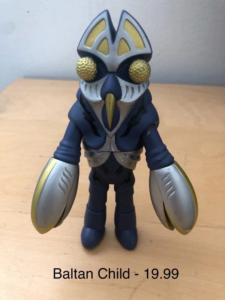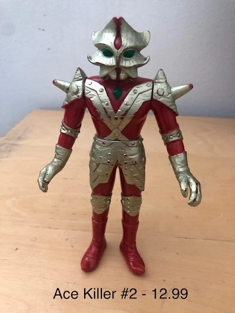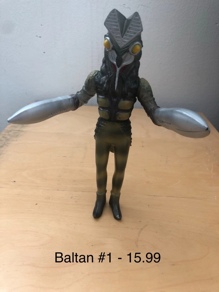 These are Ultraman standard size Kaiju Vinyl Figures by Bandai. Most are in good condition and any defects described in the photo. I put a 3.75 inch Star Wars figure next to one for size comparison, not included. These are being sold individually and not as a lot. Thank you.