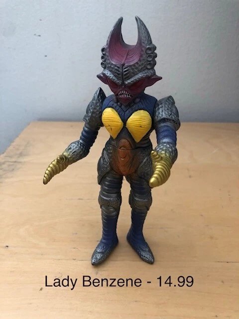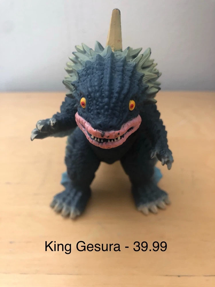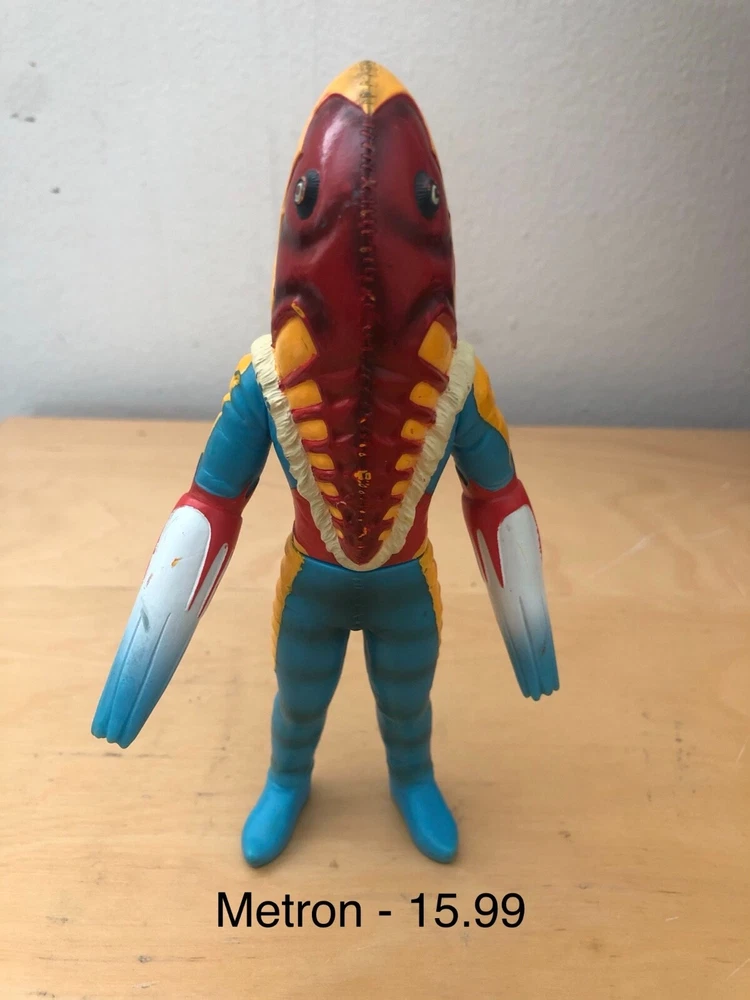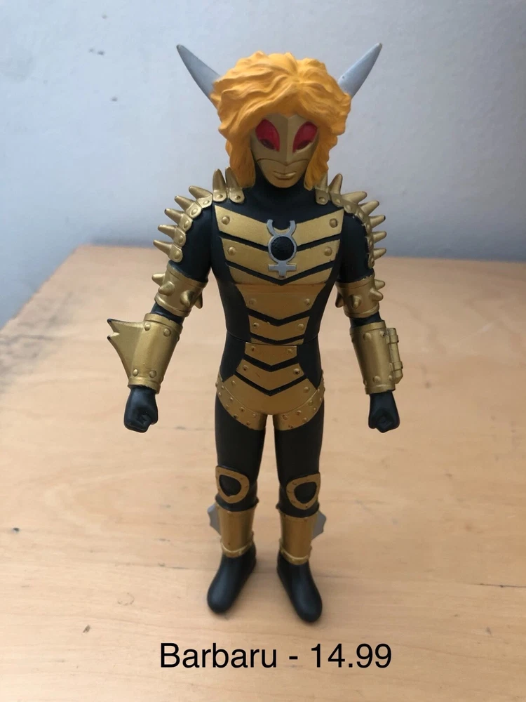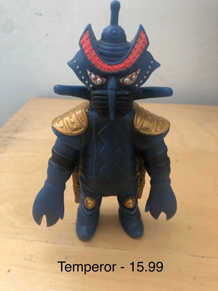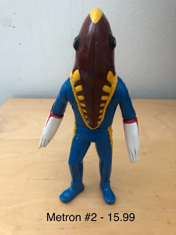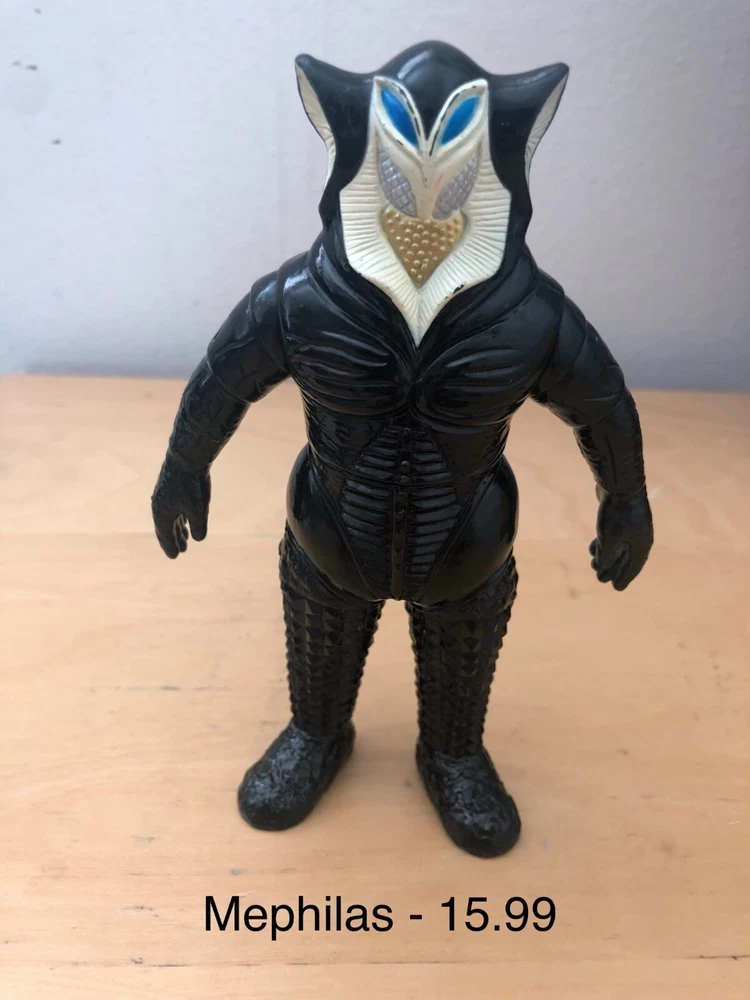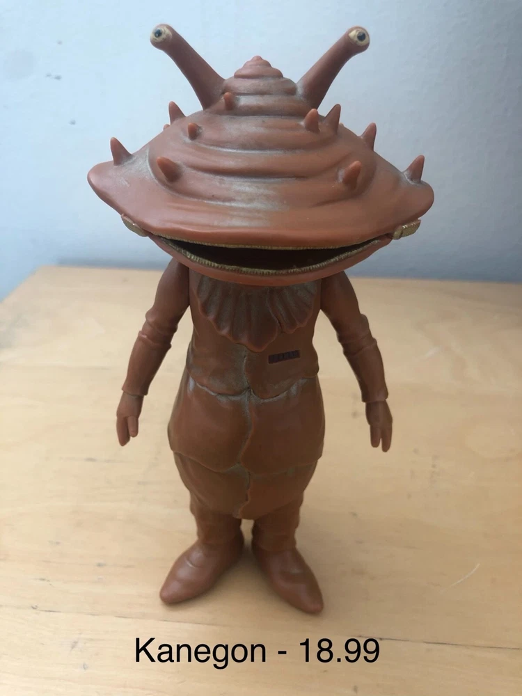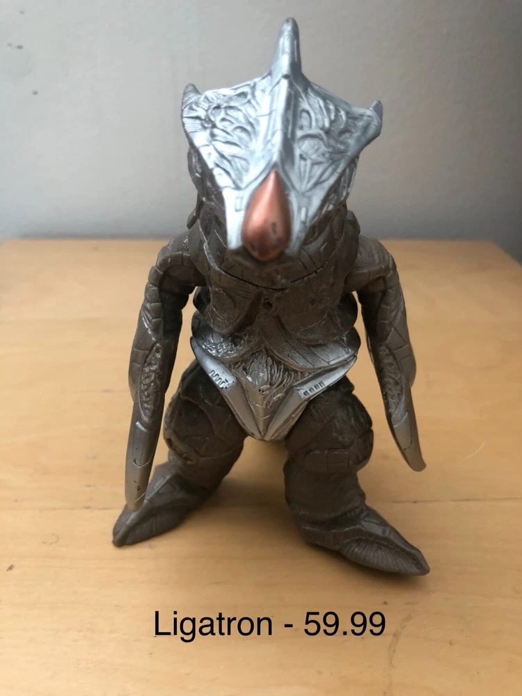 These are Ultraman standard size Kaiju Vinyl Figures by Bandai. Most are in good condition and any defects described in the photo. I put a 3.75 inch Star Wars figure next to one for size comparison, not included. These are being sold individually and not as a lot. Thank you.