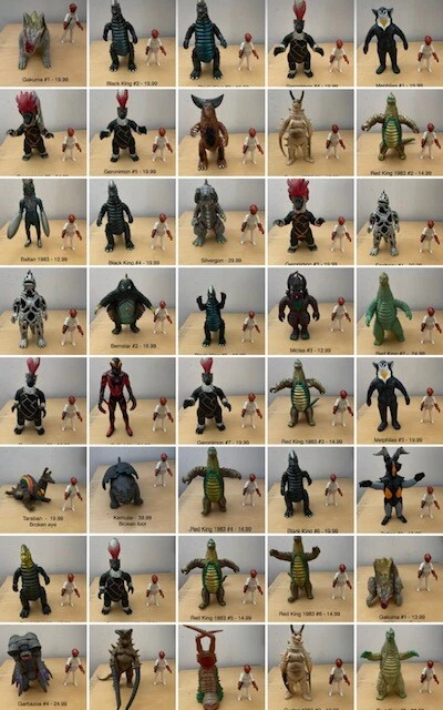 These are Kaiju figures mostly made by Bandai. I placed a standard sized Star Wars figure next to each figure for size comparison. Not included. These are not sold as one lot. Sold separately. Thank y...
