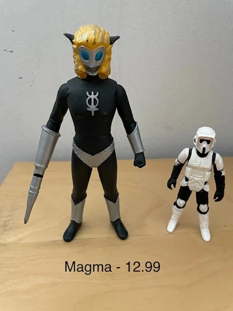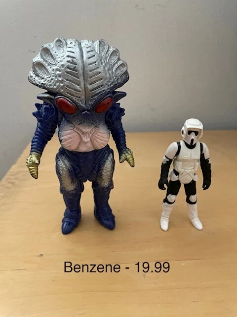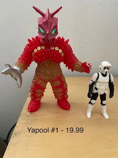 These are vinyl figures from Ultraman and Godzilla. Each figure is sold individually and not together. I put a Star Wars figure next to them for size comparison. Not included. Thank you....