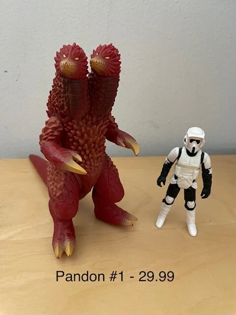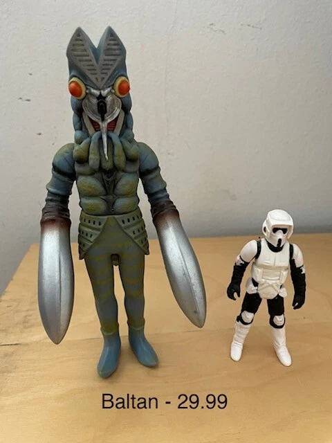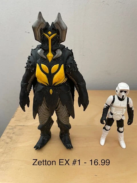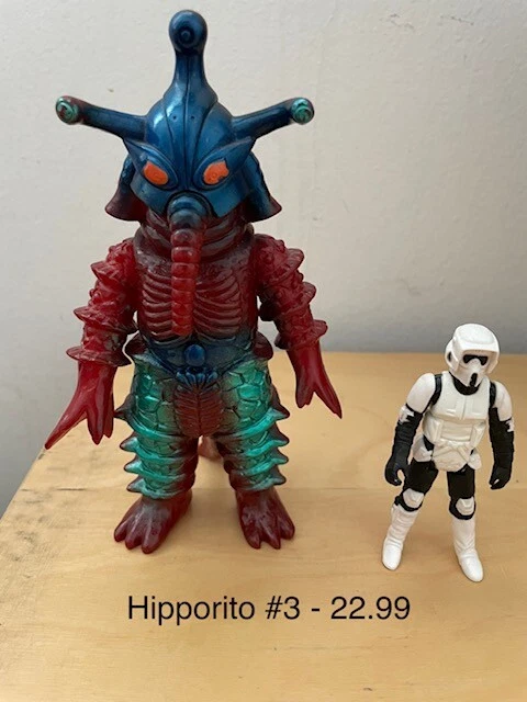 These are vinyl figures from Ultraman and Godzilla. Each figure is sold individually and not together. I put a Star Wars figure next to them for size comparison. Not included. Thank you.
