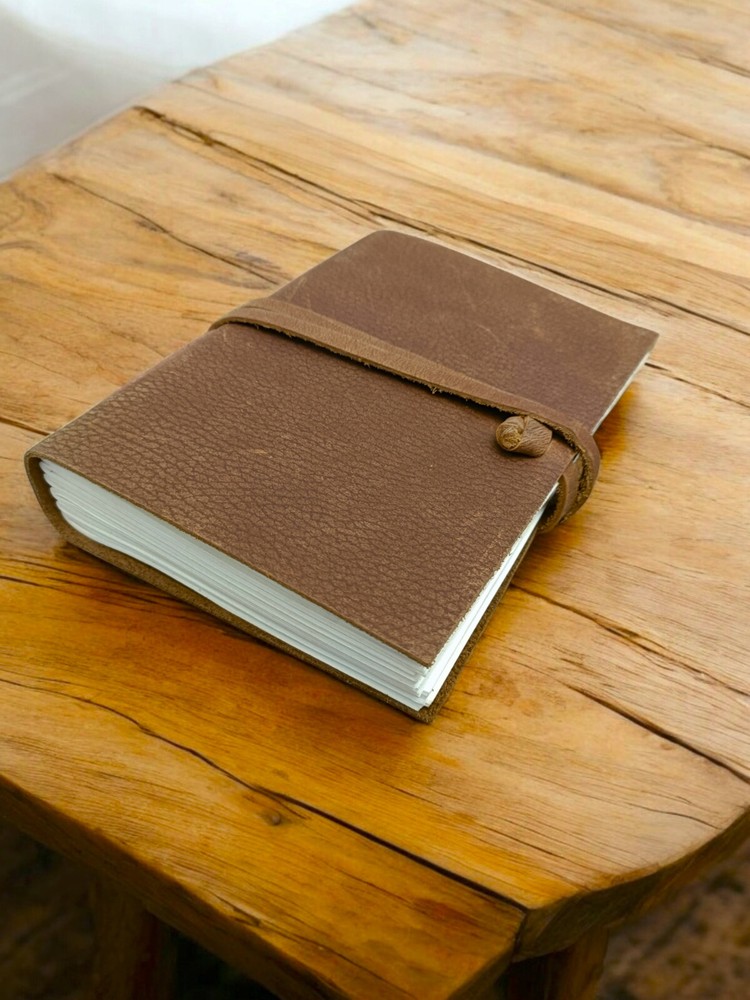 Product Description A BEAUTIFUL LEATHER JOURNAL NOTEBOOK OF THE HIGHEST QUALITY BROWN VINTAGE DIARY FOR MEN AND WOMEN MATERIAL - GENUINE LEATHER SIZE - 7x5 INCH PAGE COUNT - 192 PAGES (BOTH SIDE COUNT) PAGE TYPE - UNLINED BLANK PAGES Entirely handcrafted by Handicraft Export artesian, each leather-bound journal is a work of art and handmade. We use a thicker, higher-grade leather combined with incredible craftsmanship to create a journal that is soft and supple in the hand with that fabulous, intense leather scent. Our water buffalo leather is prepared in the crazy horse style and takes on its own distressed character with use. The natural colour vary due to resolution and light. You will be as proud to own your vintage journal as we have been to make it! Look and fell of an old book The Vintage Journal is made Thick and Rustic Paper which makes you feel like you are writing in an old relic. It will hold any ink without any bleed-through. The Leather Journal can be used as a Sketchbook, Shadow, Grimoire, Poetry journal, Food journal, memory journal, and many more. It transports you to a world all your own. STYLISH AND A TIMELESS MASTERPIECE Old Fashioned Paper along with the beauty of distressed leather, handmade by Artisans creates a masterpiece that you can cherish over decades. Add your special touch and you have a piece of art to hand down to the generations. STURDY BINDING AND LEATHER WRAPAROUND Sturdy hand-stitched binding to make sure that no paper comes out loose from your vintage notebook. The leather wraparound keeps the papers of the journal safe and secure. Naturally tanned leather will age with character - or simply rub away your markings if you choose. A lifelong companion on your journeys A BEAUTIFUL LEATHER JOURNAL OF THE HIGHEST QUALITY LOOK AND FEEL OF AN OLD BOOK STYLISH AND A TIMELESS MASTERPIECE STURDY BINDING AND LEATHER WRAPAROUND Why you should buy the Nomads Vintage Leather Journal ? THE STYLISHLY ANCIENT GIFT The antique cotton paper combined with the beauty of distressed leather, hand-stitched by Artisans, creates a keepsake you will cherish forever. Makes a great gift for the men, women, and Wiccans in your life! CREATE YOUR OWN ADVENTURE Escape with your Nomad Journal and create your own masterpiece. Write, Sketch, Doodle, or Draw, options are limitless.
