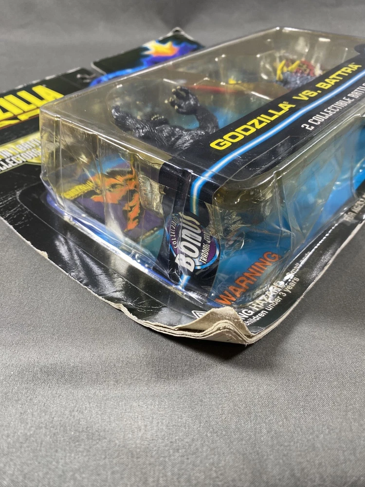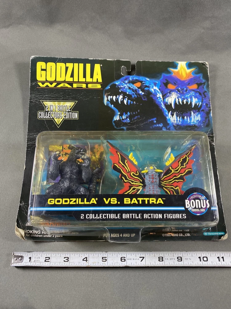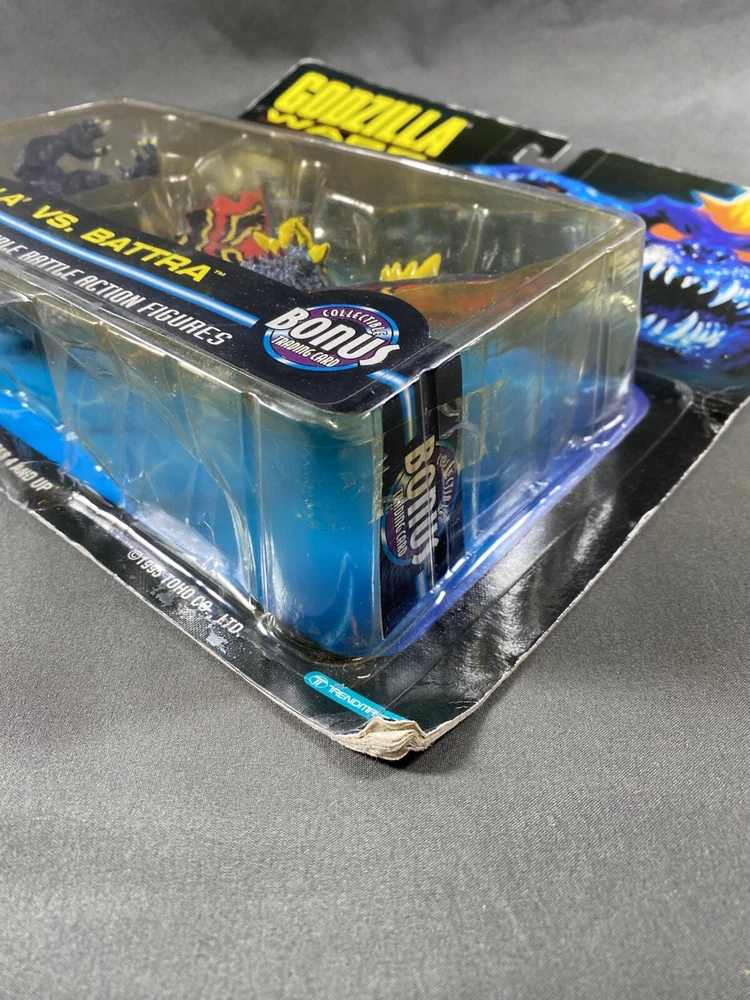 VINTAGE TRENDMASTERS GODZILLA WARS VS BATTRA BATTLE ACTION FIGURE 2 PACK. Packaging has a fair amount of shelfware. Figures are brand new in unopened original package. Please see pictures as they are part of the description. I try to be as accurate as possible in my description. I very much appreciate your positive feedback. Customer satisfaction is my priority. I will answer any questions you have as promptly as possible and to the best of my ability. Please contact me before you leave feedback if you have concerns and I will make my best effort to remedy the situation. USA shipping only. Thanks for looking! R-1