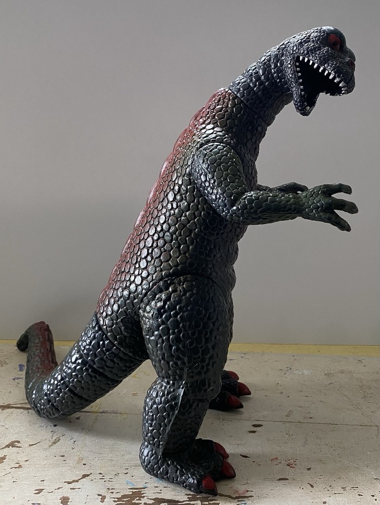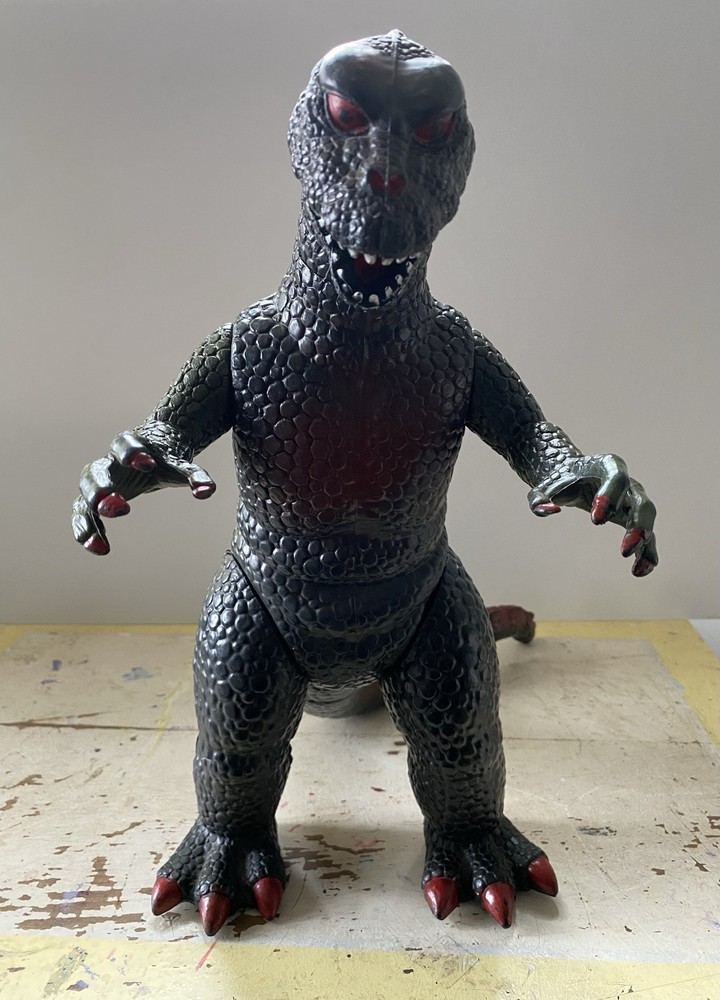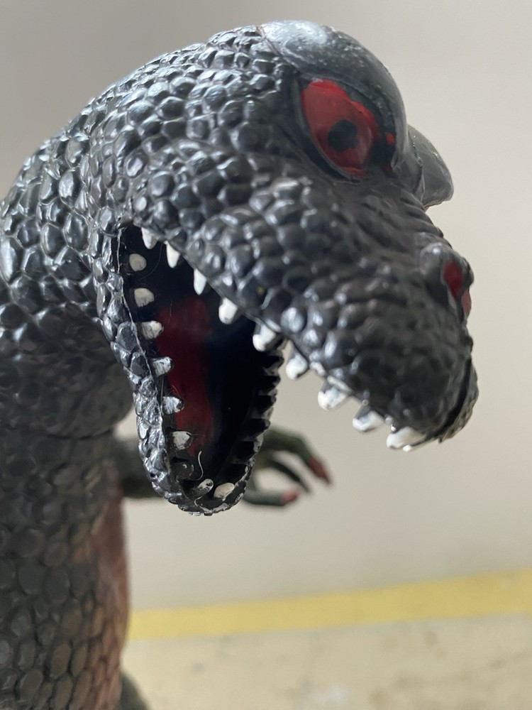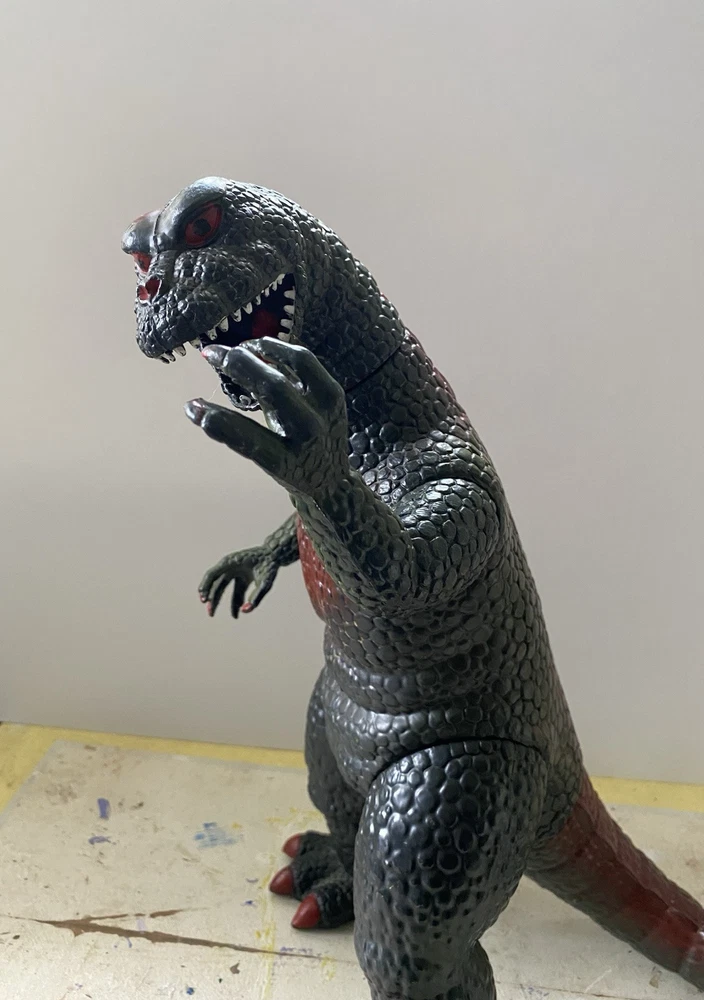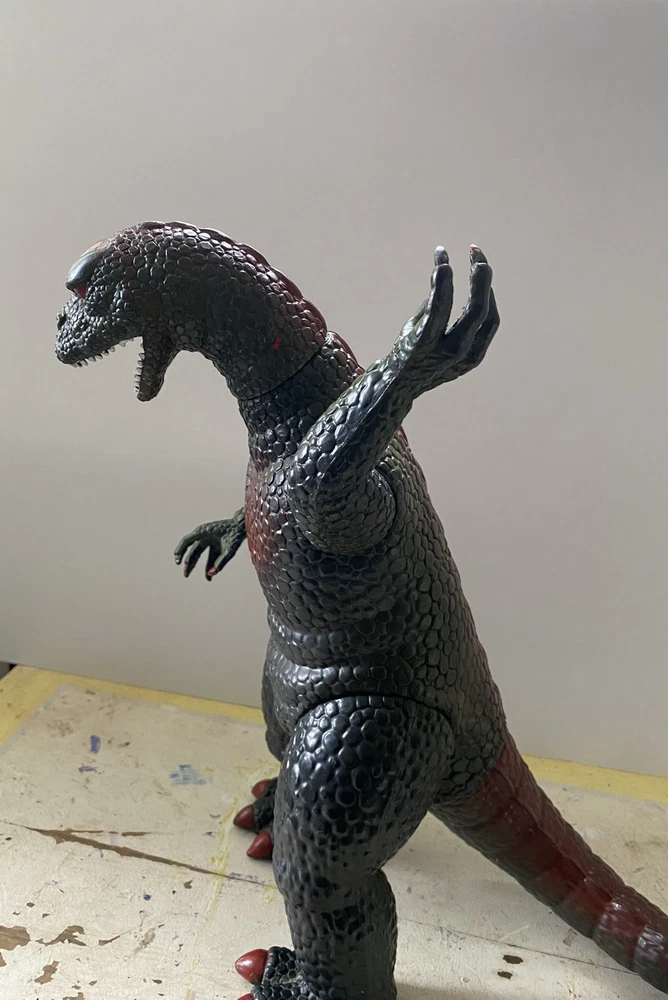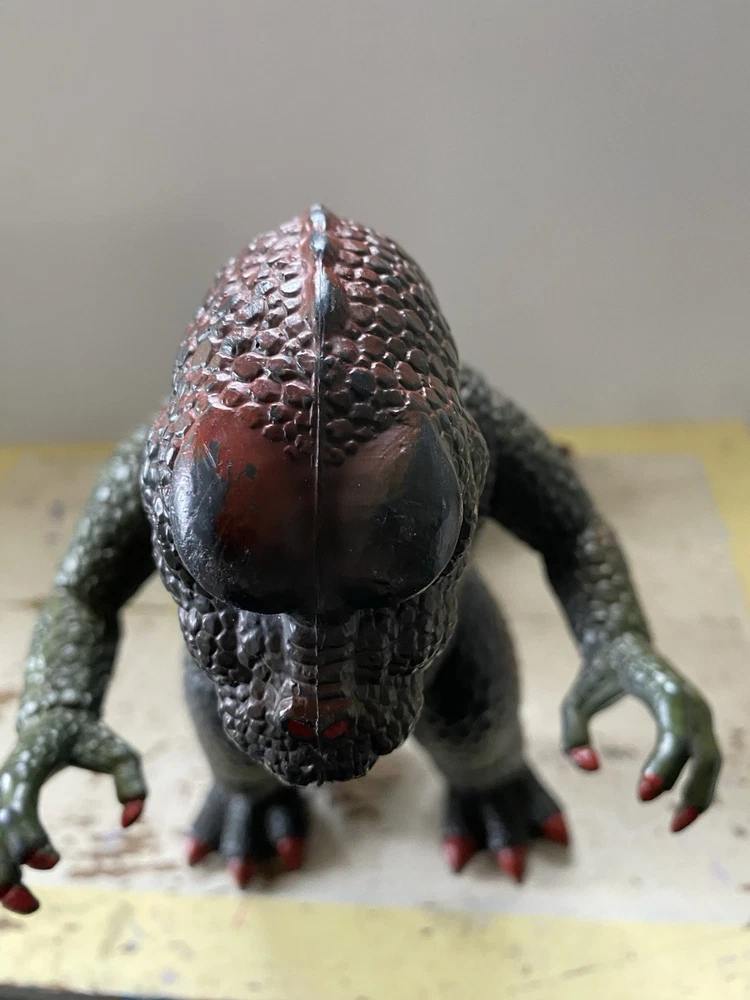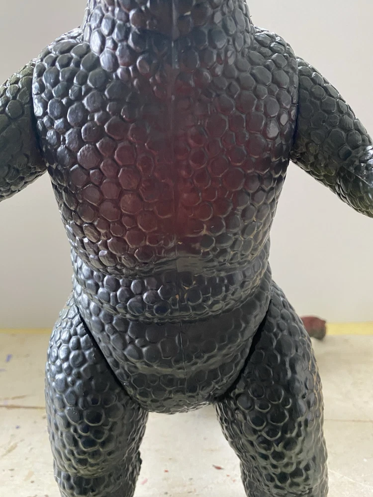 VTG 14.5" IMPERIAL DOR MEI GODZILLA ACTION FIGURE - Posable Joints 1986 14 inches tall and is in good condition. Some of the paint is missing as seen in the pictures because of age. It is about 14 inches long as well. All the joints are adjustable.