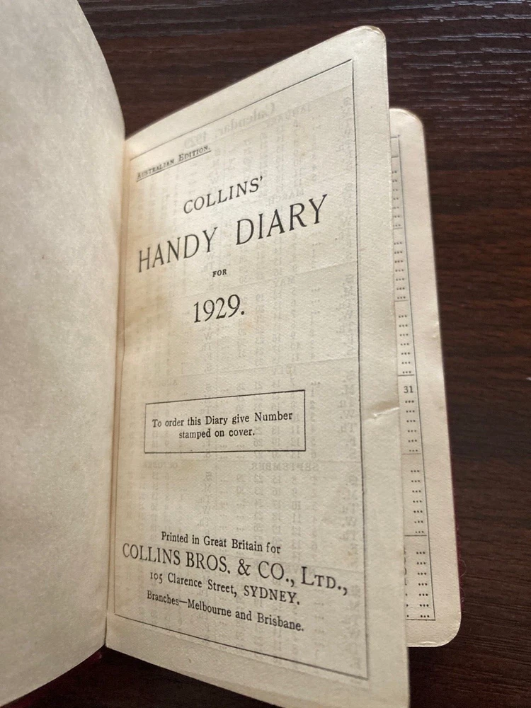VTG - 1929 Collins Handy Diary - No.461 - From Swains - Sydney This item is in very good condition. It does not have writing,stains of rips. It does have fading and normal wear. Please view the photos...