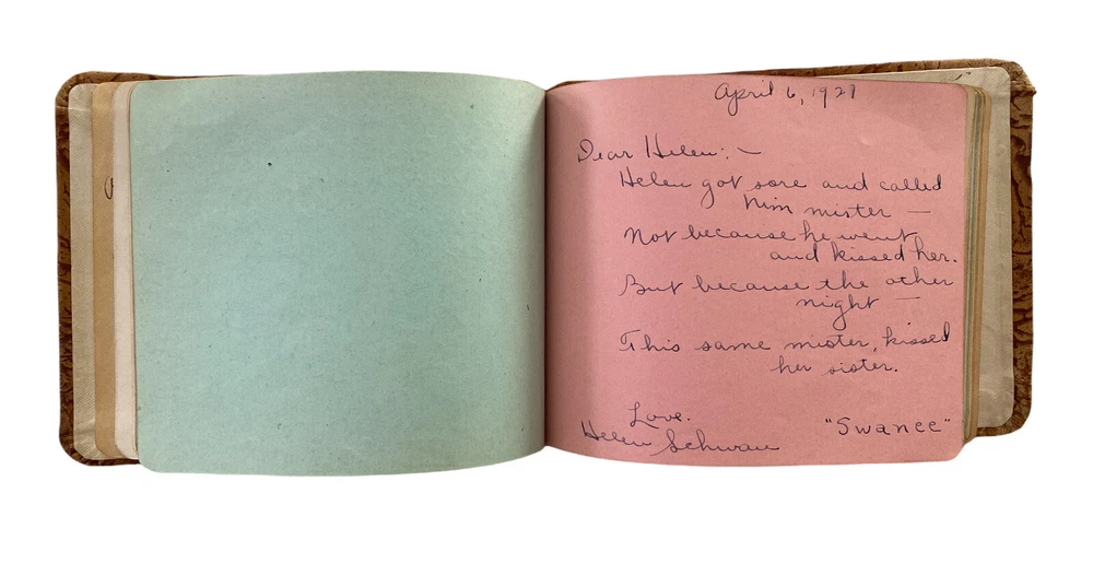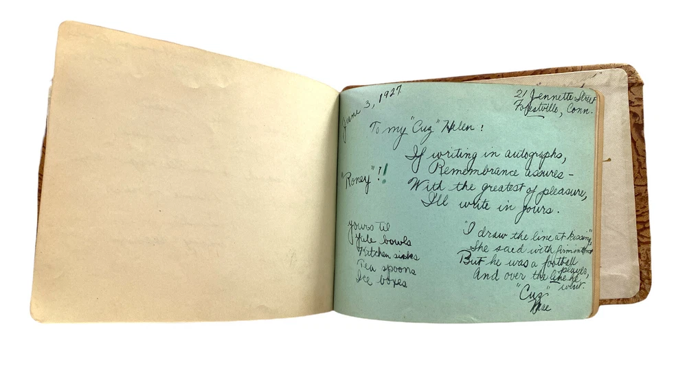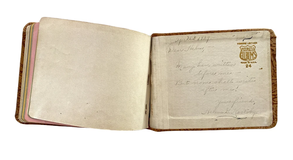 VTG Autographs Book Peerless Textured Brown Leather Signatures & Poems 1927 Size: L6.25" x H4.75" x D0.75" High School Autograph Book Even Contains Dried Flowers From An Admirer. Estate sale find. Great condition for age. I source my items from multiple sources. Some new and some pre-owned. Previously owned items may have come from a home with pets and/or smokers. I work very hard to clean, lint roll and refurbish many of the items I sell. If I miss something please let me know. We will work together to come up with a solution to make it right. Thank you for your part in making the Earth a more beautiful place by buying used items and reducing waste. I Love finding beautiful and unique hard to find items. Thanks for all you do to make a difference! I ship in one business day after payment and many times if I can I will ship the same day. I always leave positive feedback and really count on your feedback as well. I love my customers and strive for your happiness. Please contact me before leaving feedback if your purchase doesn't meet your expectations in any way. THANKS FOR LOOKING AND HAPPY SHOPPING! :)