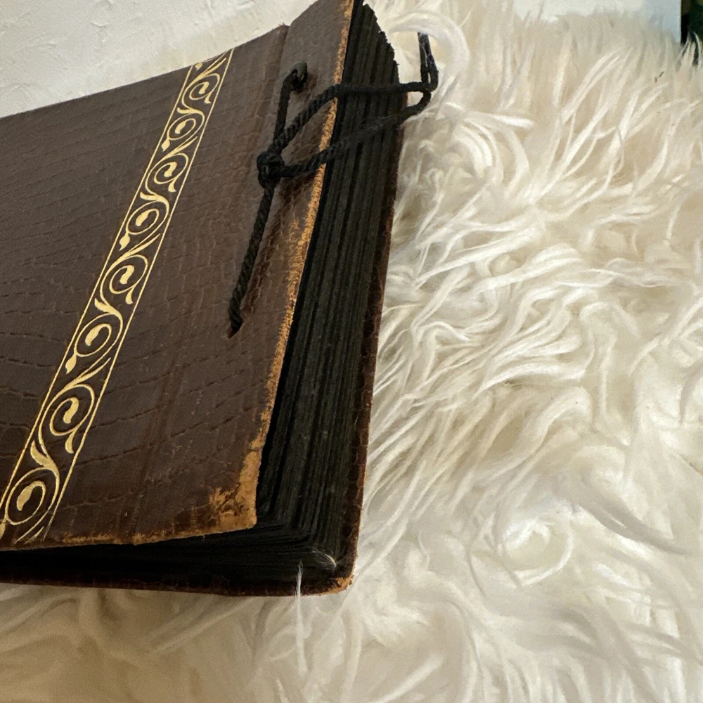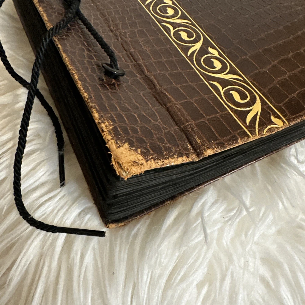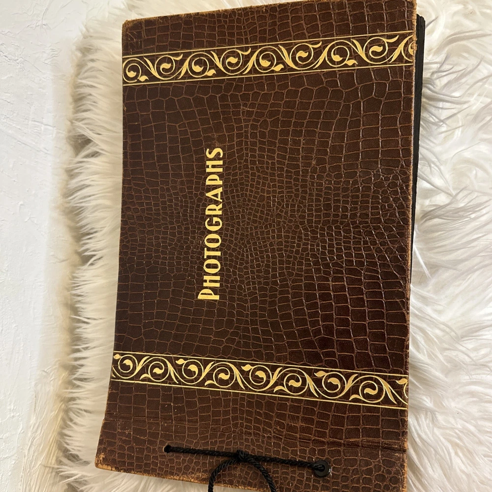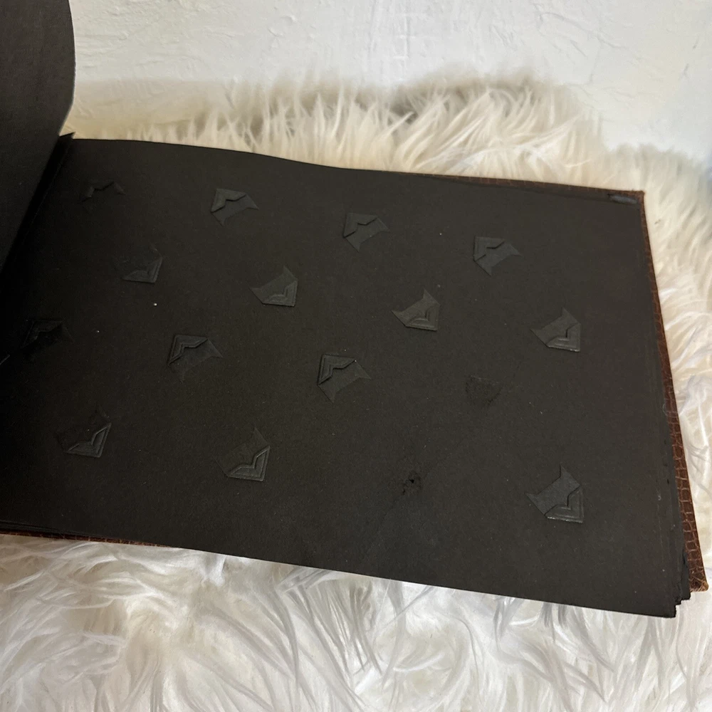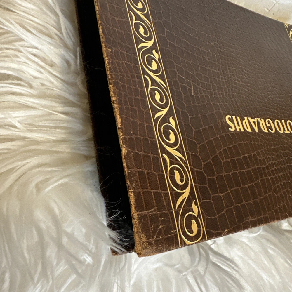 This vintage, genuine leather photo album book is a must-have for any photography enthusiast. The alligator embossed cover adds a unique touch to this book-bound album, which is perfect for storing and displaying your favorite memories. The brown color of the leather material complements any decor and adds a touch of sophistication to this timeless piece. The album is specifically designed for dry-mount albums and is perfect for anyone looking to add a touch of elegance to their photo collection. With its high-quality material and attention to detail, this album is sure to impress. Don't miss out on the opportunity to own a piece of history with this vintage leather photo album book.