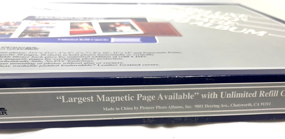 This vintage Pioneer Deluxe Jumbo photo album is the perfect addition to any photography enthusiast's collection. With 20 large magnetic pages, it provides ample space for your favorite memories. The book is bound in high-quality leather and features a beautiful green color that is sure to catch the eye. Ideal for weddings and other special occasions, this album is designed to showcase your photos in the best possible way. It is manufactured in China and is compatible with a variety of camera formats. Whether you're a professional photographer or just looking to display your memories in a unique way, this album is sure to impress.