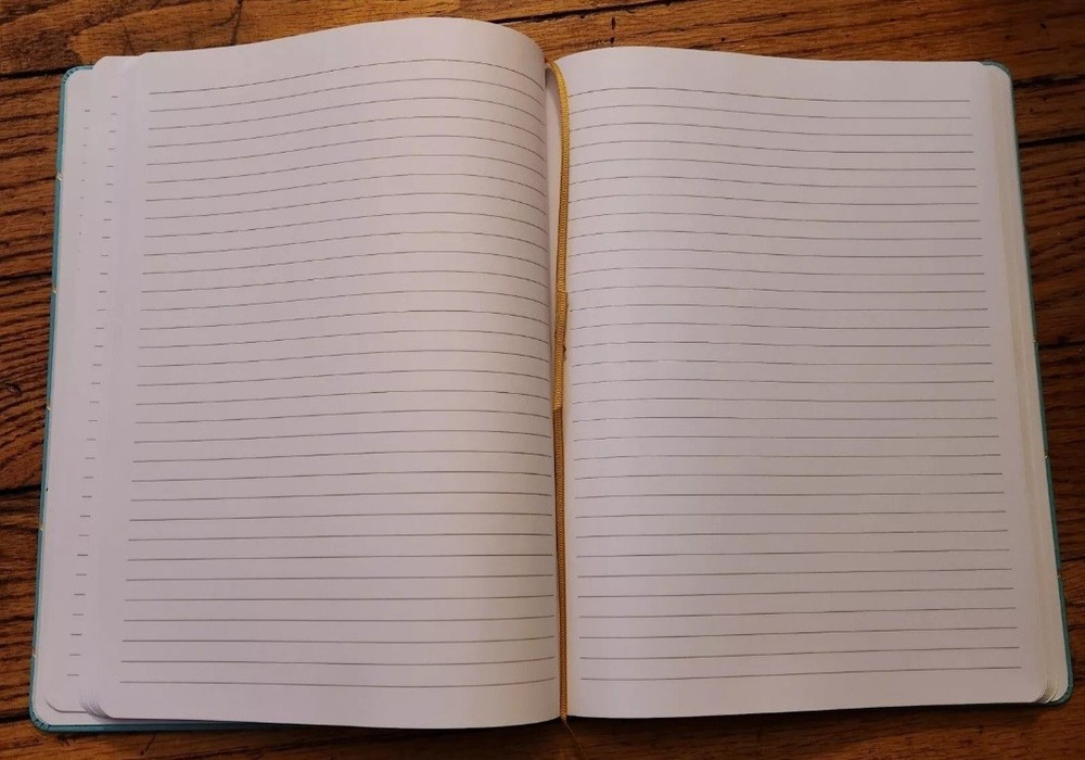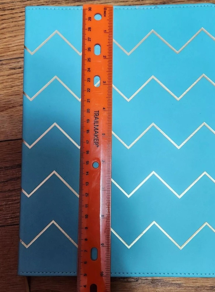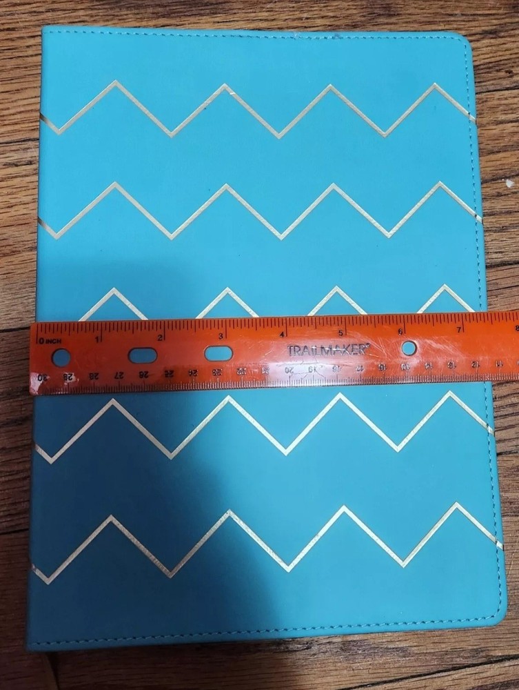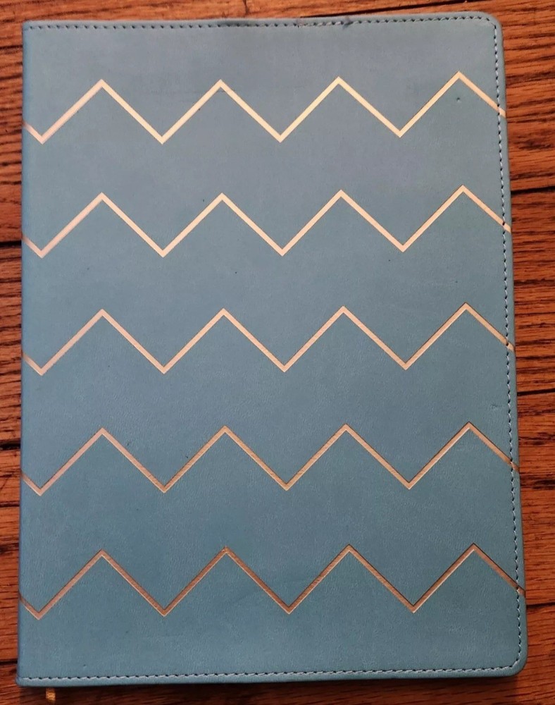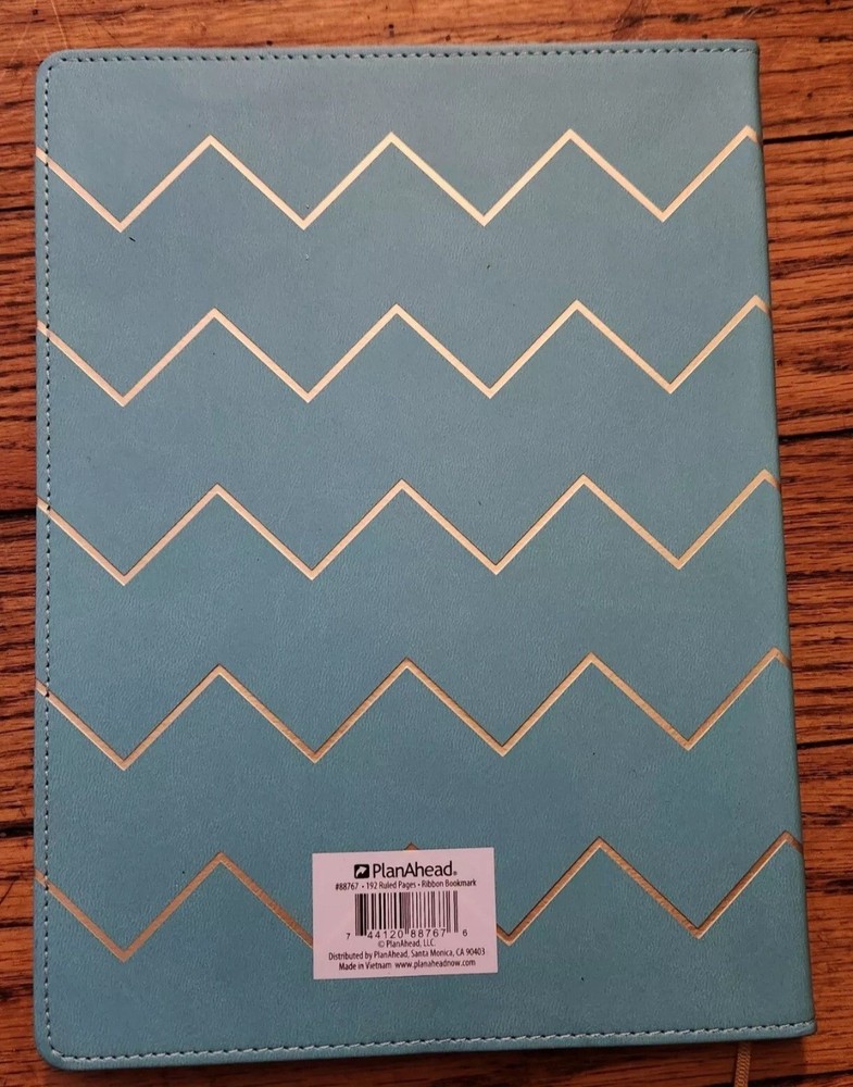 This vegan leather bound notebook is ideal for anyone in need of a stylish and functional journal. The book measures 10x7.5 inches and features a sky blue chevron pattern on the faux leather cover. The lined pages inside are perfect for jotting down notes, thoughts, and ideas.