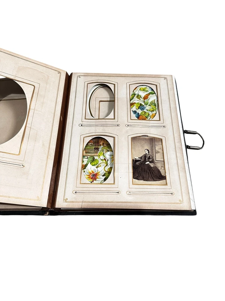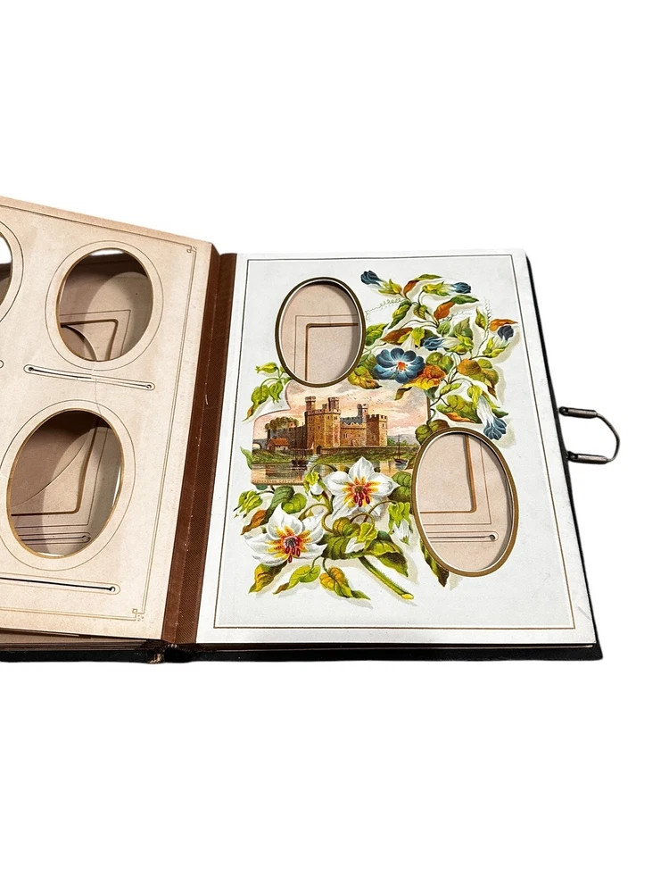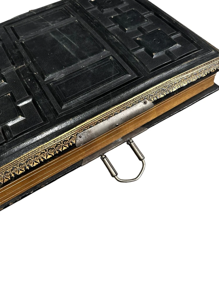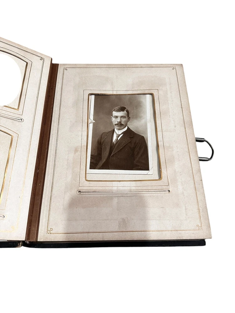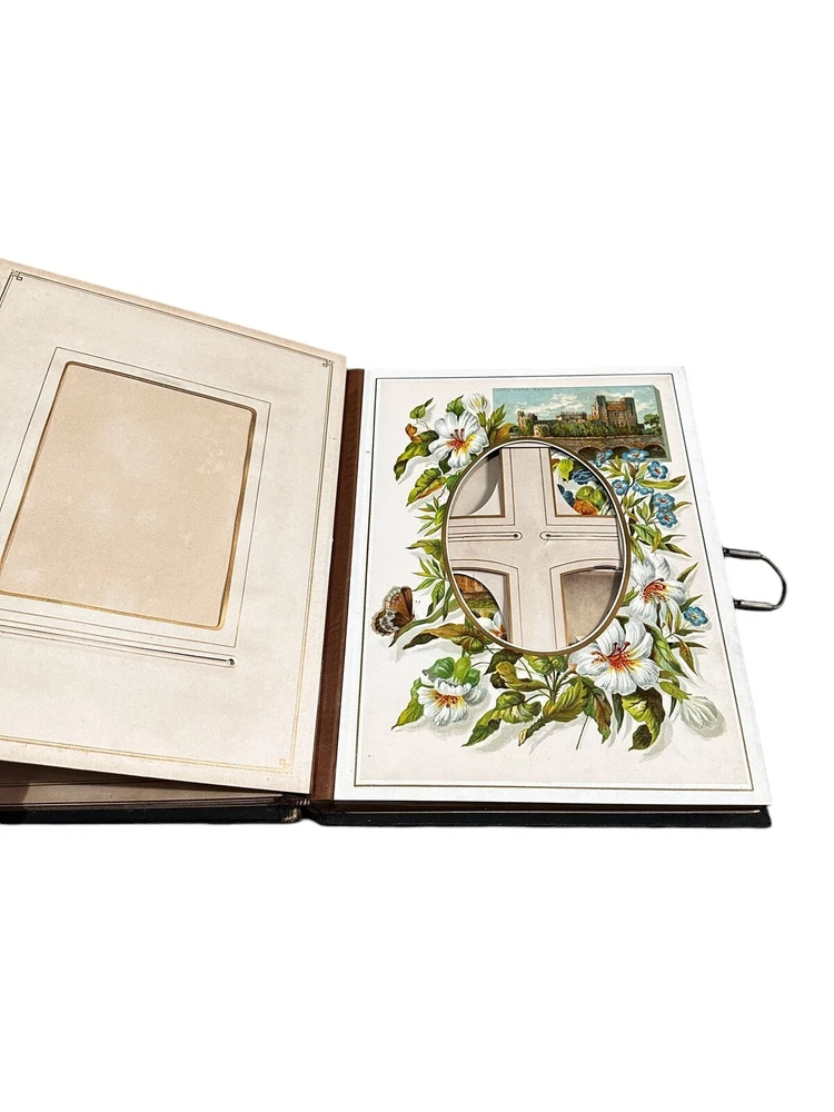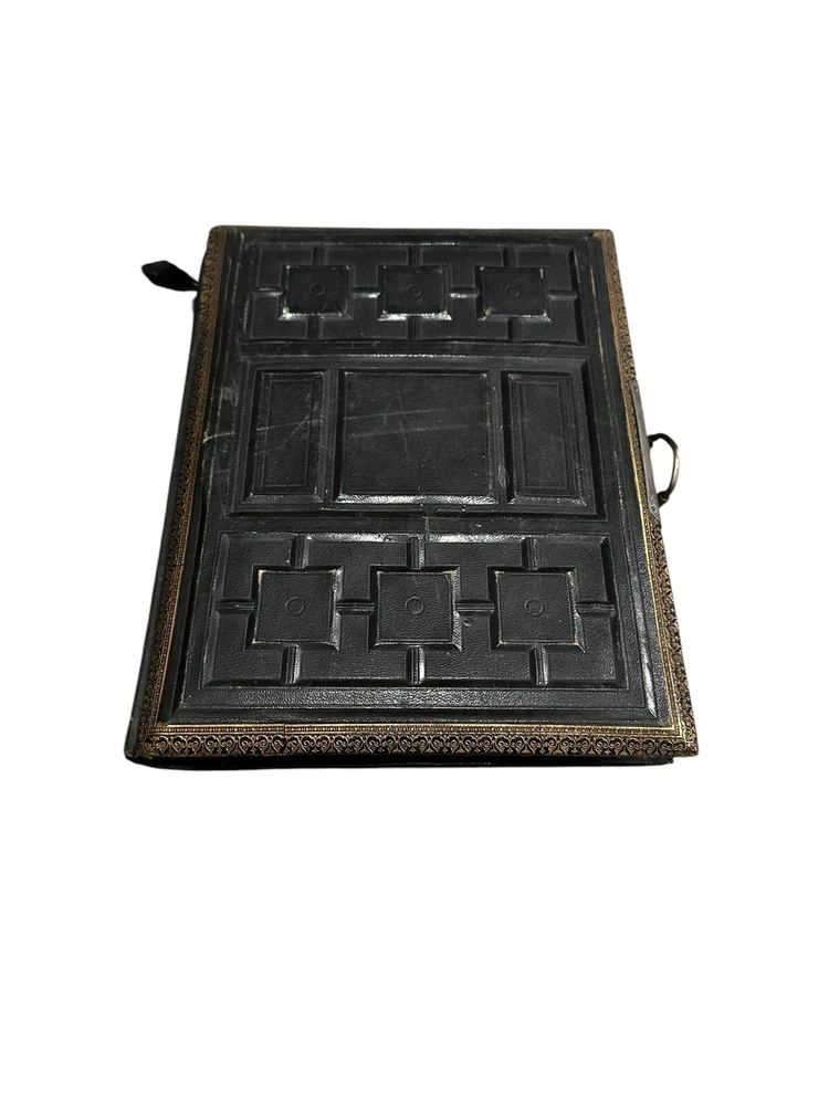 Please do view pictures for condition you will see there is some minor damage to the leather bounding and overall age related wear but still a very beautiful album that measures 29 cm x 22 cm and a th...