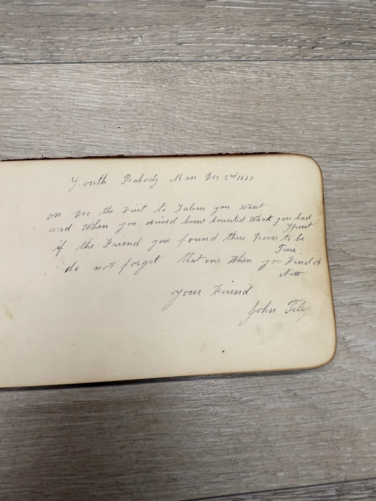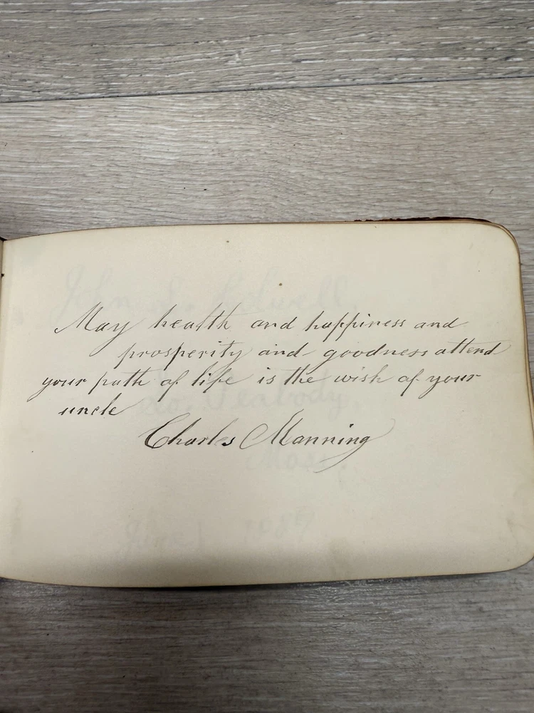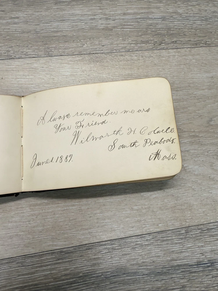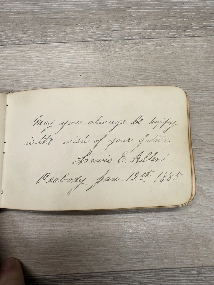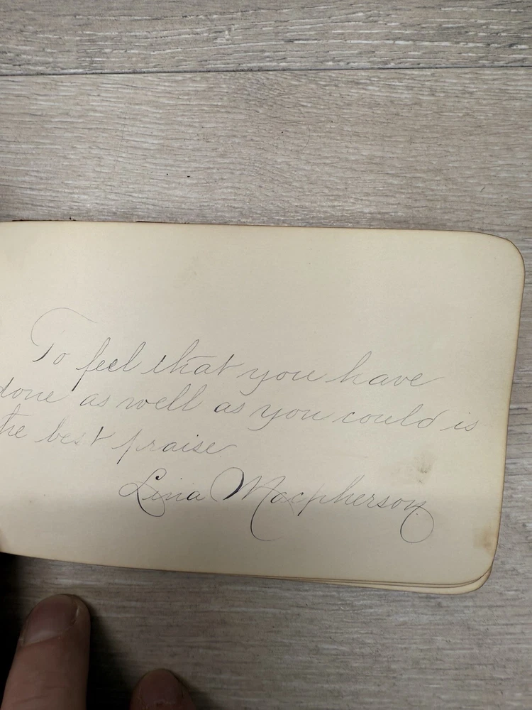 Seems to be a student signature collection autograph book from fellow students and family member members. Dated between 1885 and 1898. Includes poetry, hand, drawn, pictures , glimpse into life of the late 1800s through the eyes of a student.