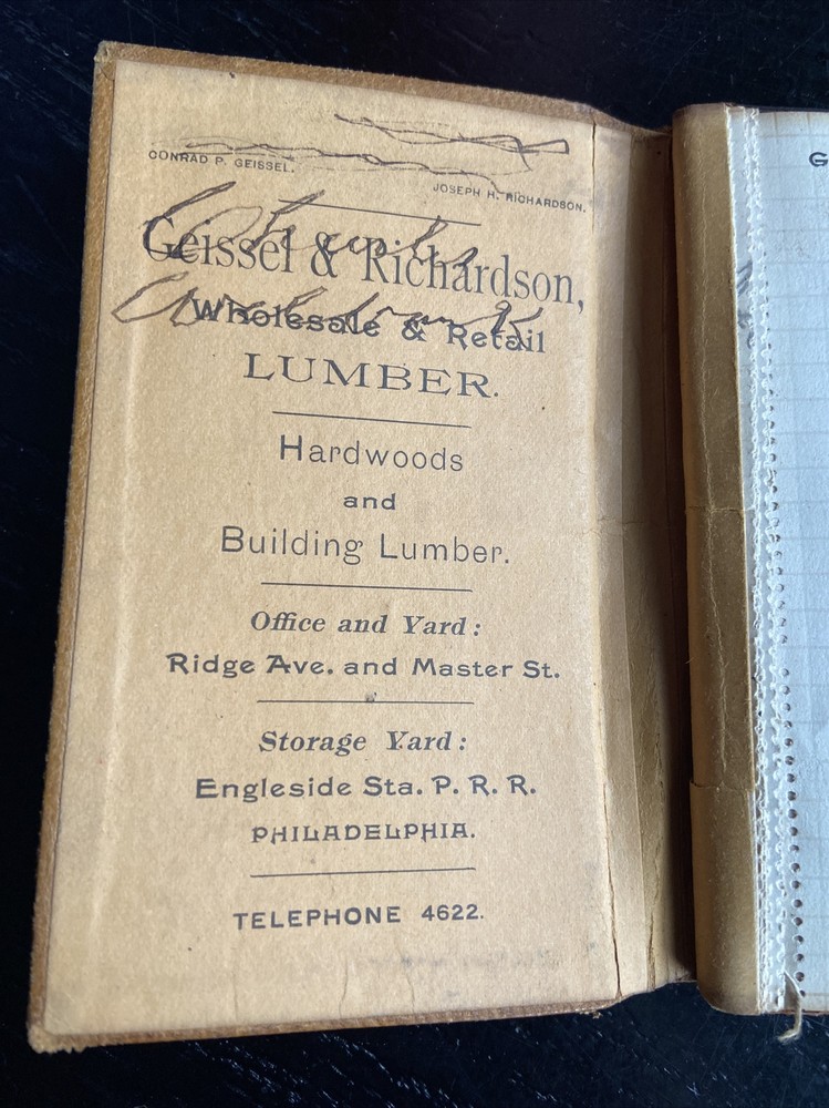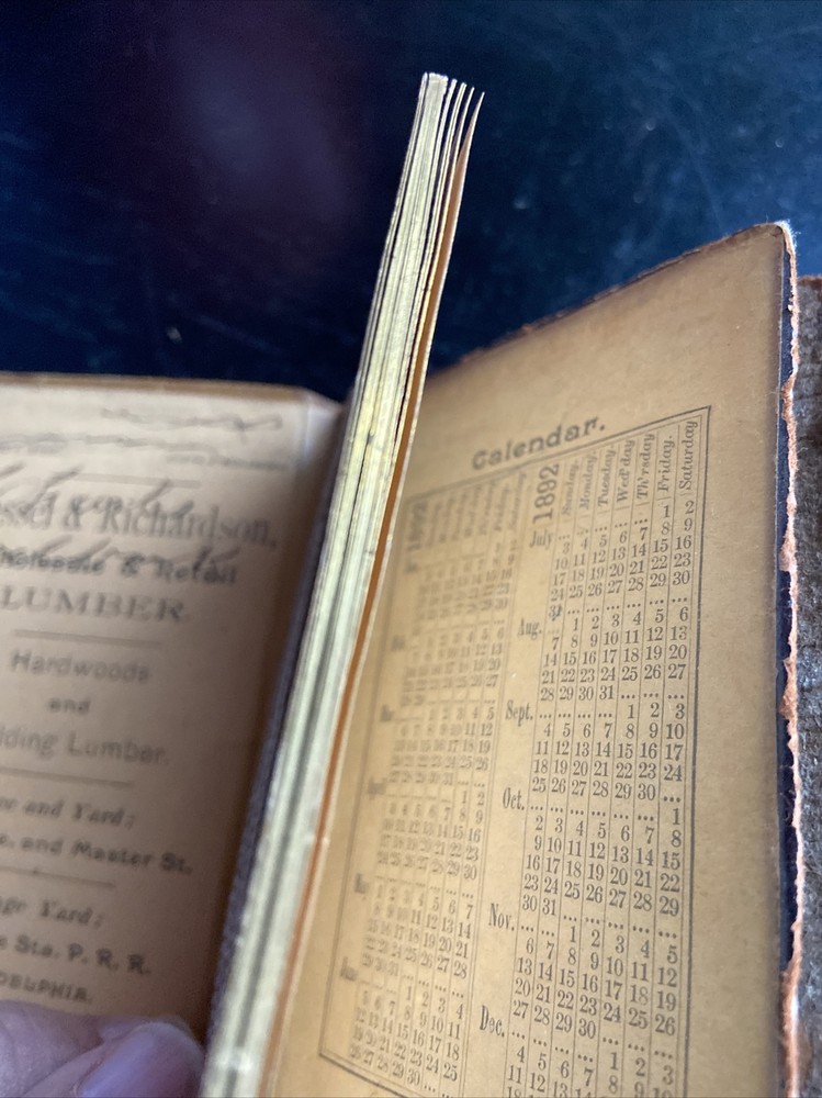 Vintage 1892 Ceissel & Richardson Lumber Leater Pocket note book. Shipped with USPS First Class....