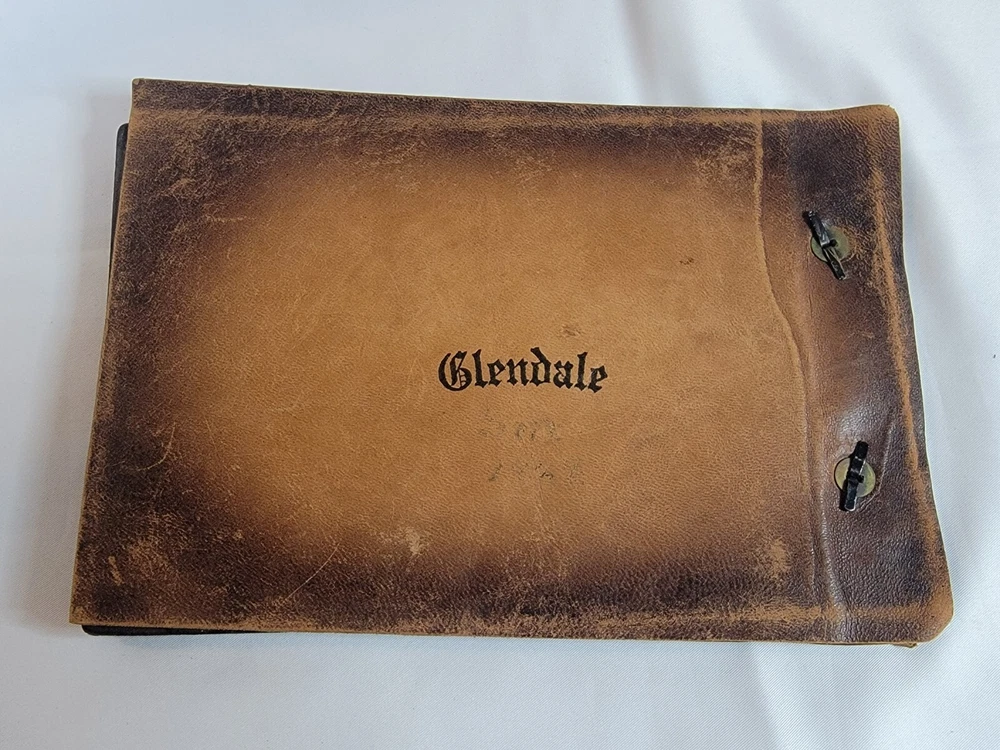 This vintage photo album is a beautiful souvenir from 1929, showcasing the picturesque city of Glendale, California. The album features a tie-bound, brown leather cover and contains dry-mount pages that can hold your cherished memories. The album has a vintage theme and is a perfect addition to any photography enthusiast's collection. It is made in the United States and is suitable for personal use or as a thoughtful gift.