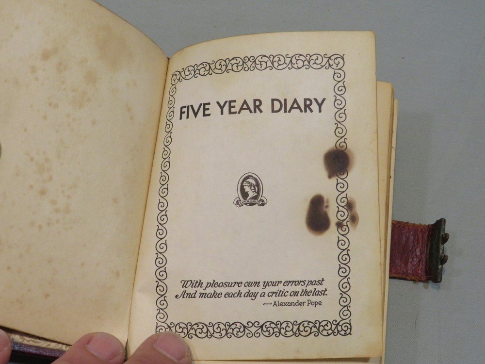 Vintage 1939 Five Year Diary Leatherbound w/Latch, no Key, but not locked See photos for details, sold as is as shown; Additional photos can be provided if needed, just ask; Will combine shipping for multiple purchases, wait for combined invoice before making payment. Check out my store and listings for many other interesting items. LI050425 B2