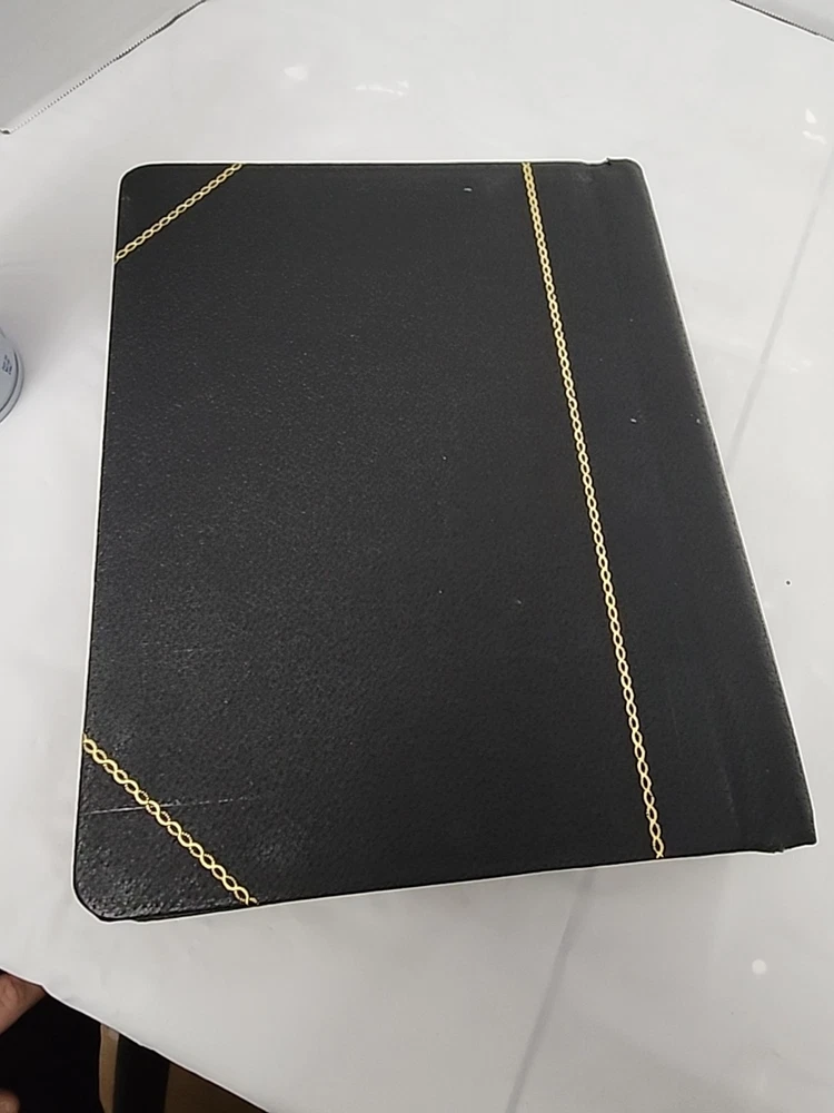 No writing very excellent condition white specs you see seem to be some sort of paper stuck to it, I didn't want to wipe it. Vintage 1980s Boorum & Pease Black Account Journal Blank Ledger Book Gold Trim – Classic Collectible Accounting Record, Premium Leather-Bound Book, Unused Professional Bookkeeping Ledger, Antique Stationery, Historic Office Memorabilia, Executive Financial Journal, Durable High-Quality Paper, Rare Business Accounting Book, Elegant Tax Ledger, Investment Record Keeper, Timeless Office Decor, Unique Bookbinding, Handcrafted Account Ledger, Accountant's Log, Black Leather Journal with Gold Leaf Trim, Vintage Office Supplies, Classic Financial Planner, Personal Finance Organizer, Collectible Office Equipment, Retro Business Tools, 1980s Office Collectible, Rare Antique Office Product, Accounting Memorabilia, Elegant Book of Accounts, Vintage Record-Keeping Supplies, High-End Professional Journal, Vintage Business Ledger Book, Unused Journal with Historical Inscription. Product Description: Up for grabs is a Vintage 1980s Boorum & Pease Black Account Journal , a stunning blank ledger book that offers both historical charm and practical functionality. This rare collectible is a testament to timeless office supplies , featuring a premium leather-bound cover with an elegant gold-tone trim that immediately elevates its aesthetic appeal. Whether you're a collector of vintage office memorabilia , a business professional in need of a durable, high-quality accounting ledger , or someone who simply appreciates classic stationery , this journal is an exceptional find. Made by the renowned Boorum & Pease , known for producing premium-quality office products, this unused ledger has been preserved in excellent condition . The book features crisp, clean pages of durable, high-quality paper , ideal for long-term use, and is perfectly suited for business accounting , financial record-keeping , or even personal use as a tax ledger or investment record . Its blank format allows for versatile use, offering ample space for customized entries such as transaction logs , expenditure tracking , or any other financial entries that require organization. A distinctive and unique feature of this ledger is the inscribed date found on the front page : 8-9-88 . This adds a personal and historic element to the book, making it an even more attractive item for those who value vintage office products with a story. The presence of this inscription provides a glimpse into the ledger’s past, making it not only a functional accounting tool but also a piece of office history that adds authenticity and character to any collection. The black leather cover is not only visually striking but is also incredibly durable, ensuring that the journal will stand the test of time. The gold trim accentuates its sophisticated look, making it an ideal addition to an executive’s desk or a luxury office setting . This book is not just a tool, but a statement piece that can serve as a conversation starter or a gift for a professional accountant or someone who appreciates the artistry behind vintage business tools . Given its premium craftsmanship and unused condition , this ledger is an excellent choice for anyone who needs a high-quality financial organizer , whether for managing personal finances , business accounting , or simply keeping track of investment records . It also serves as an exquisite decorative item for office decor , a unique financial planner , or a professional business notebook . This journal combines elegance , functionality , and historical significance , making it a truly collectible office product . Ideal for those who appreciate the art of old-fashioned accounting , this ledger is a perfect blend of vintage style and modern-day practicality. Whether you're looking to add a rare piece of executive office equipment to your collection or need a premium ledger for professional use, this Boorum & Pease journal is a fantastic choice. Don't miss your chance to own this unique vintage ledger , complete with a timeless design , a historical inscription , and the kind of craftsmanship that is rarely found in today's office supplies.