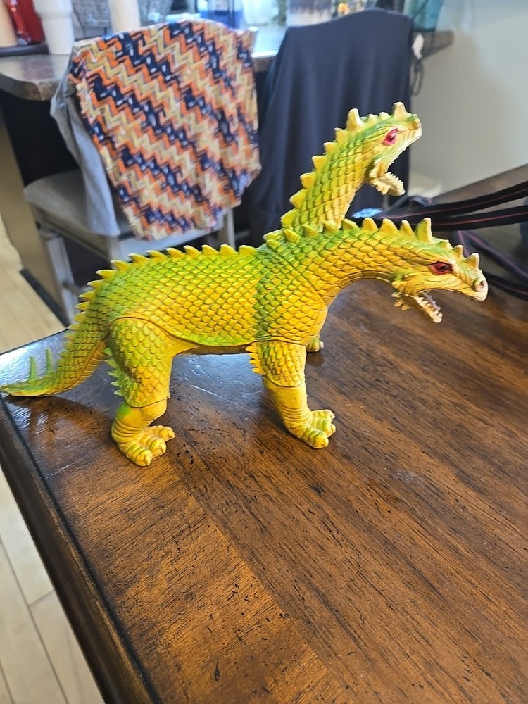 The Vintage 1984 Imperial Dragon Two Headed Figure is a rare and collectible item from the Godzilla franchise. This unique action figure features a 2-headed dragon design, standing at 11 inches tall and made of rubber material. Manufactured in Hong Kong, this original piece embodies the iconic character from the 1980s, perfect for fans of Godzilla and vintage toys alike. The multicolor figure is a must-have for collectors of action figures, especially those interested in the Dragon theme and classic TV shows like Yu-Gi-Oh!