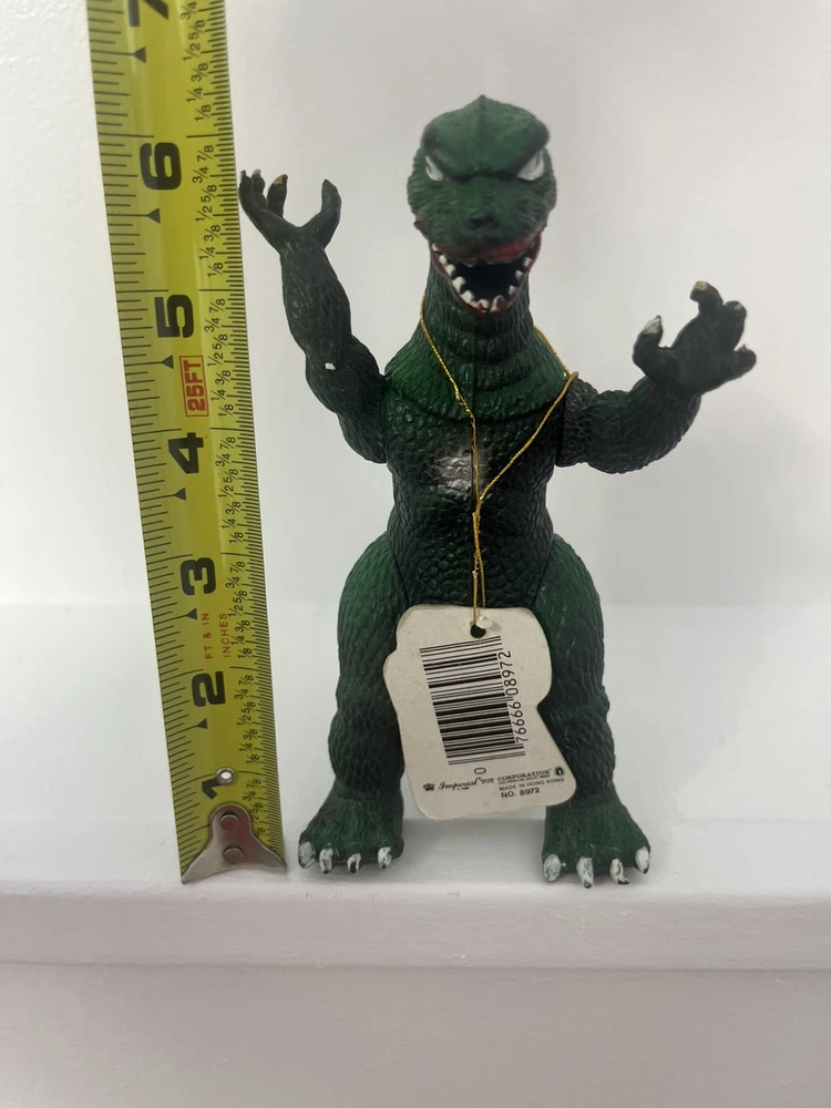 Vintage 1985 Godzilla Figure 6" by Toho Co. Imperial, made in Hong Kong, featuring posable joints and includes the original tag. This collectible toy is based on the iconic Godzilla character and is a nostalgic piece from the popular Godzilla theme.