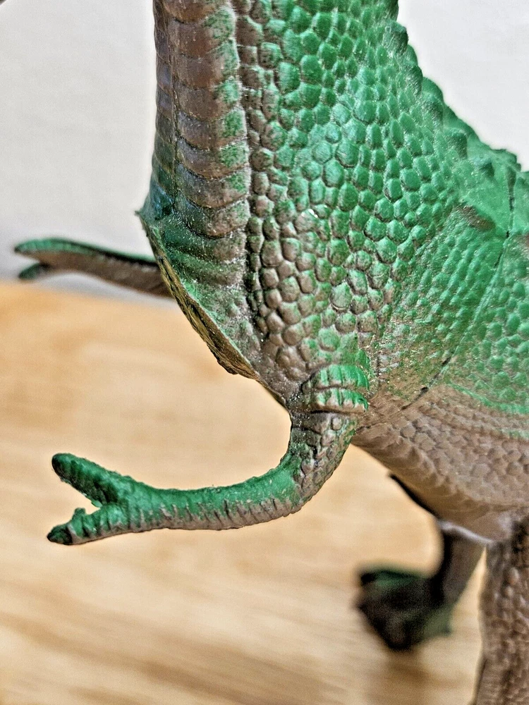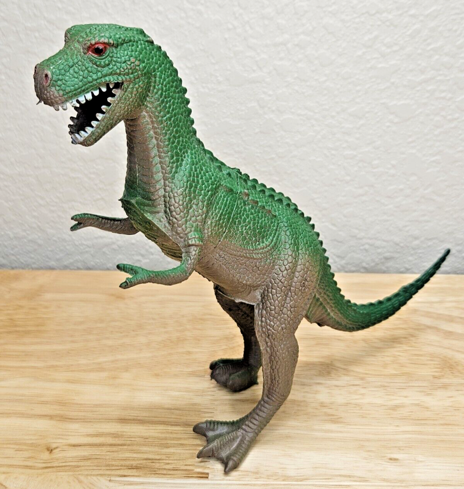 Vintage 1985 IMPERIAL 7.25" Tall Brown & Green PVC T-REX Dinosaur Godzilla Toy. Approximately 9" long. Excellent condition. Visit our eBay store (hopescraftsandnicksknacks) for similar items and other great deals.