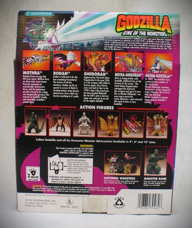 Vintage 1994 Mecca-Godzilla Action Figure in Original Box Trendmasters Vintage 1994 Mecca-Godzilla Action Figure in Original Box Trendmasters Description Vintage 1994 Trendmasters Godzilla - Mecca-Godzilla Action Figure in Original Box... Unopened box... Condition: Used Condition Notes: Excellent condition, please see photos for details. Click images to enlarge