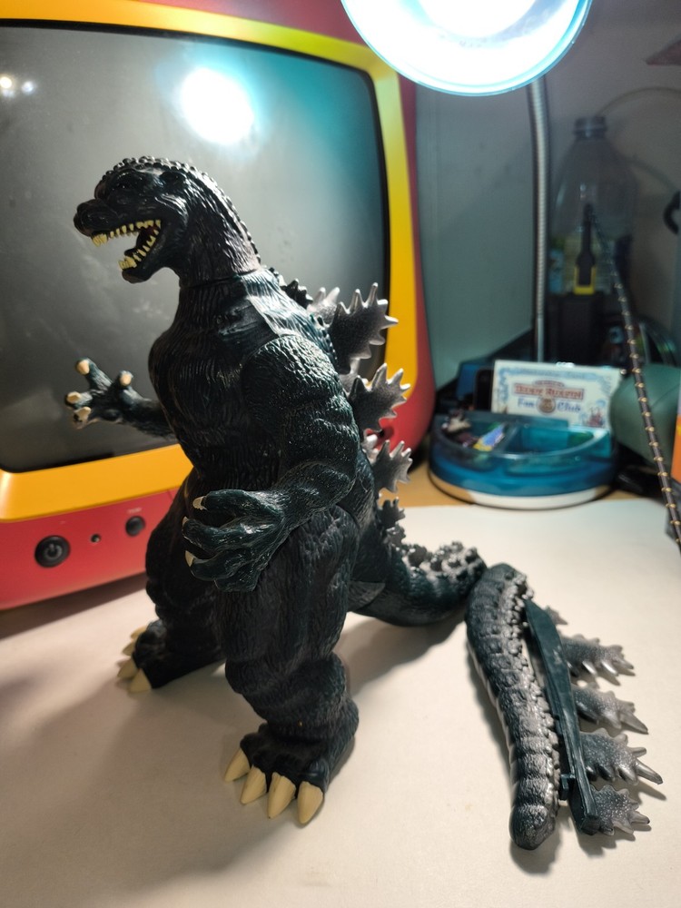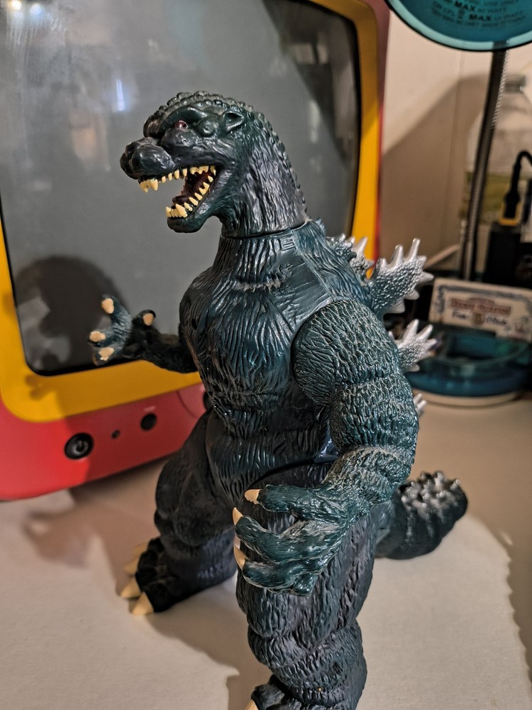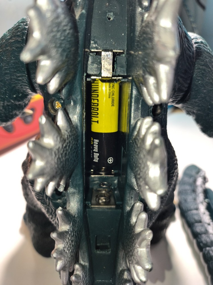 This is a listing for a 10" 1994 roaring Godzilla in working shape. There are a couple of things to point out. #1 the tail has become unattached , but with some adhesive can be put back. #2 , there was some battery acid on the contacts but I've cleaned it the best I can. As shown it does turn on and roar, quite loudly actually. Shipped ground advantage.