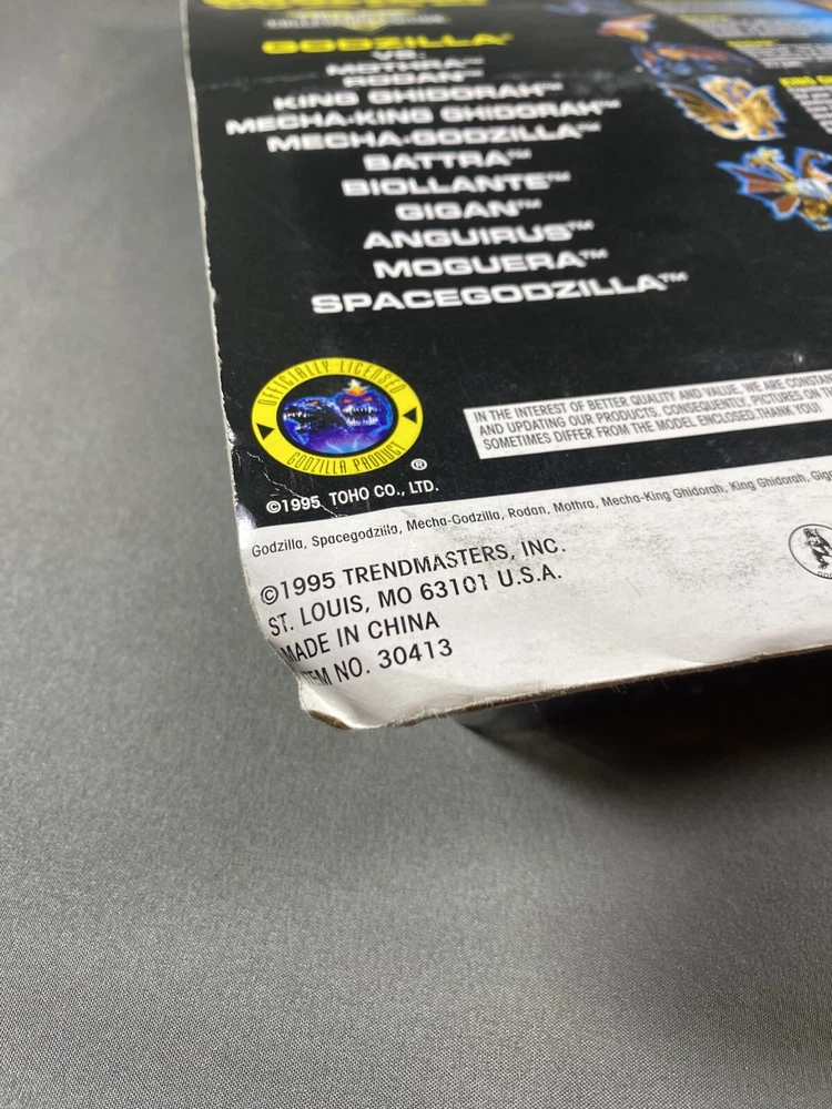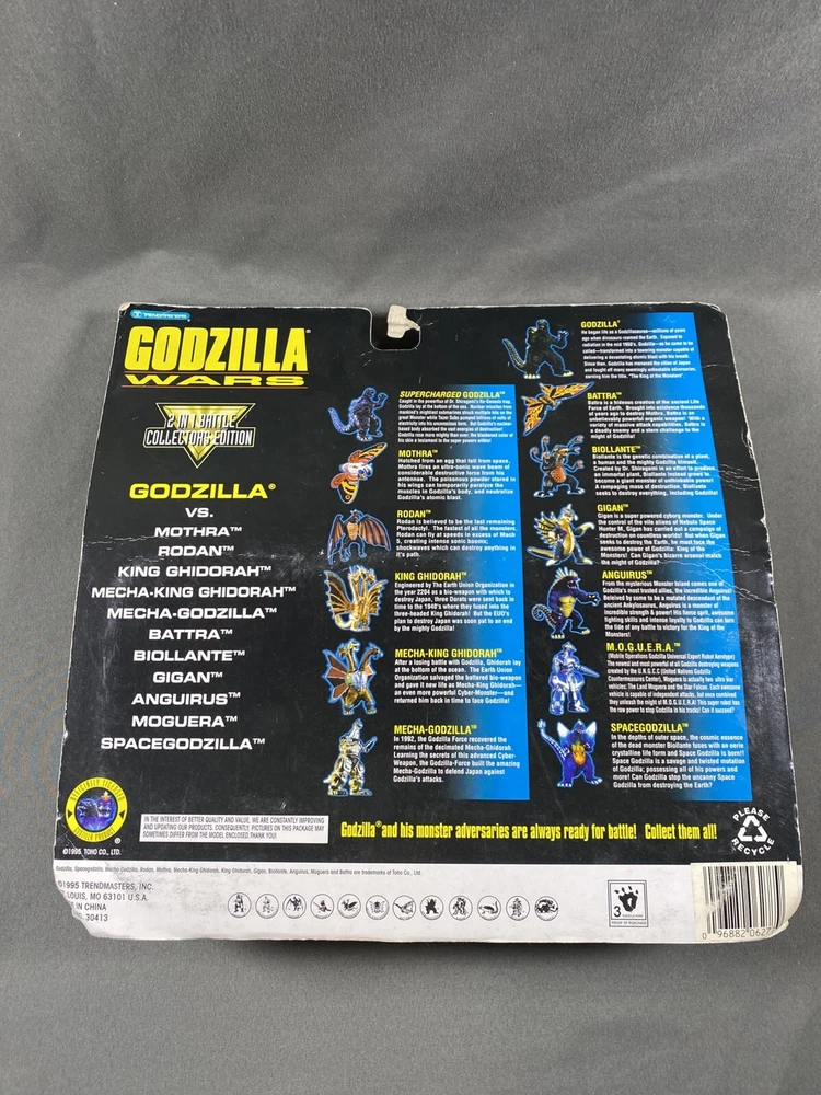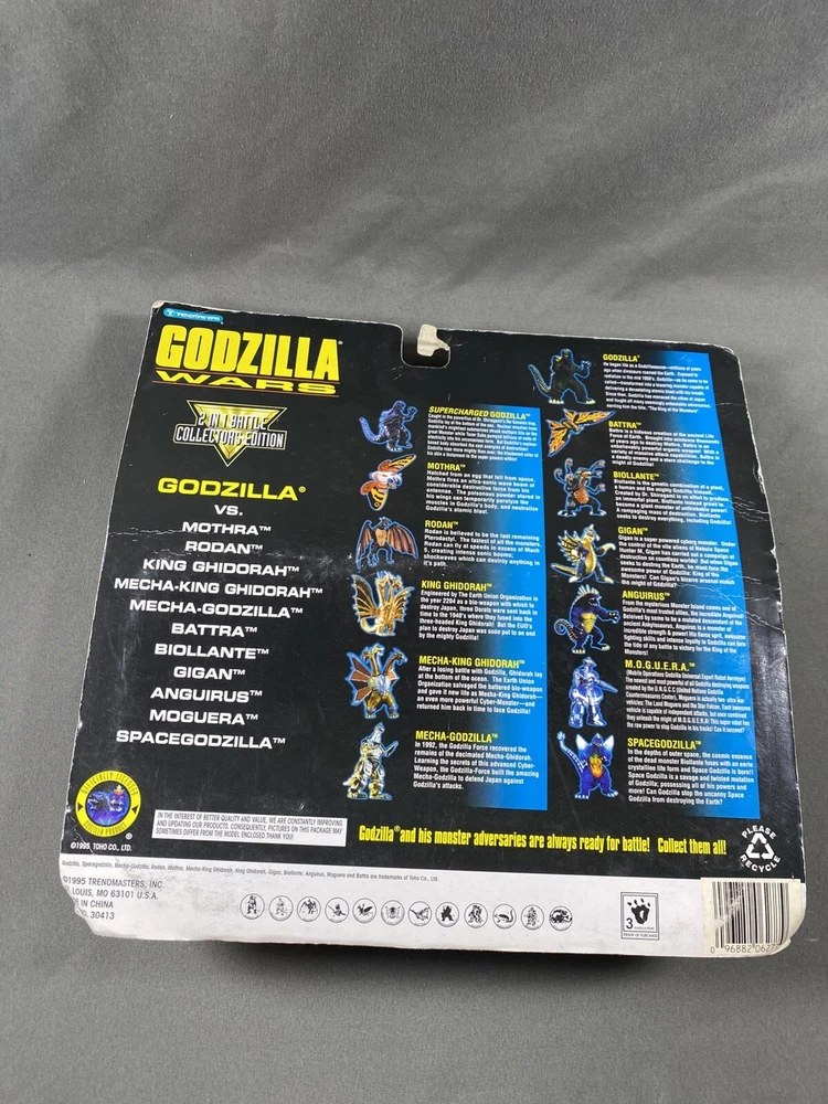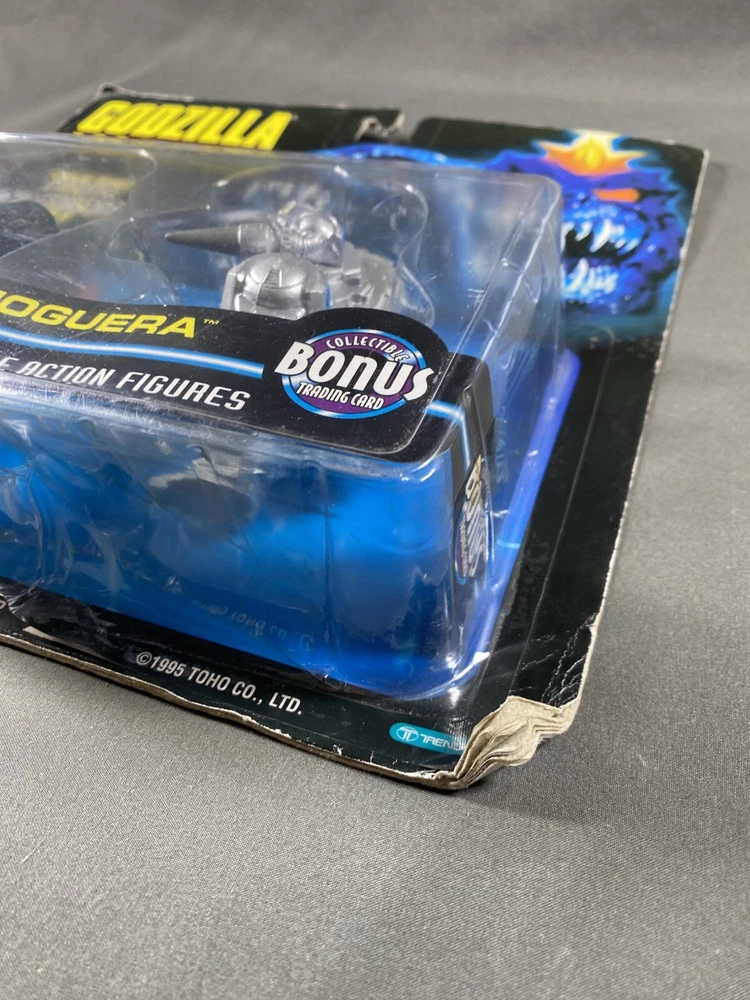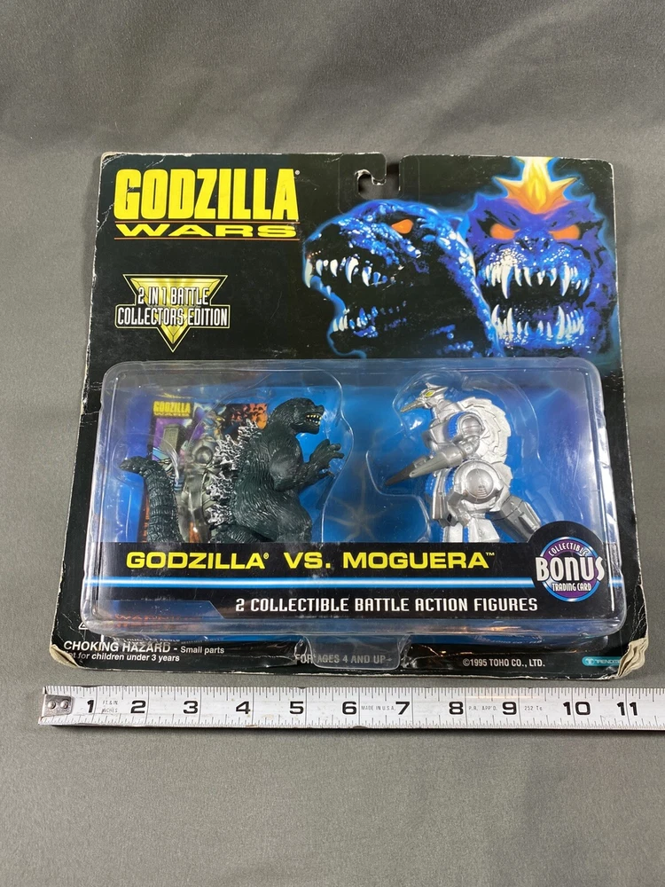 Vintage 1995 Godzilla Wars Godzilla Vs Moguera Battle Action Figure 2 Pack. Packaging has a fair amount of shelfware. Figures are new in unopened original package. Please see pictures as they are part of the description. I try to be as accurate as possible in my description. I very much appreciate your positive feedback. Customer satisfaction is my priority. I will answer any questions you have as promptly as possible and to the best of my ability. Please contact me before you leave feedback if you have concerns and I will make my best effort to remedy the situation. USA shipping only. Thanks for looking! R-1