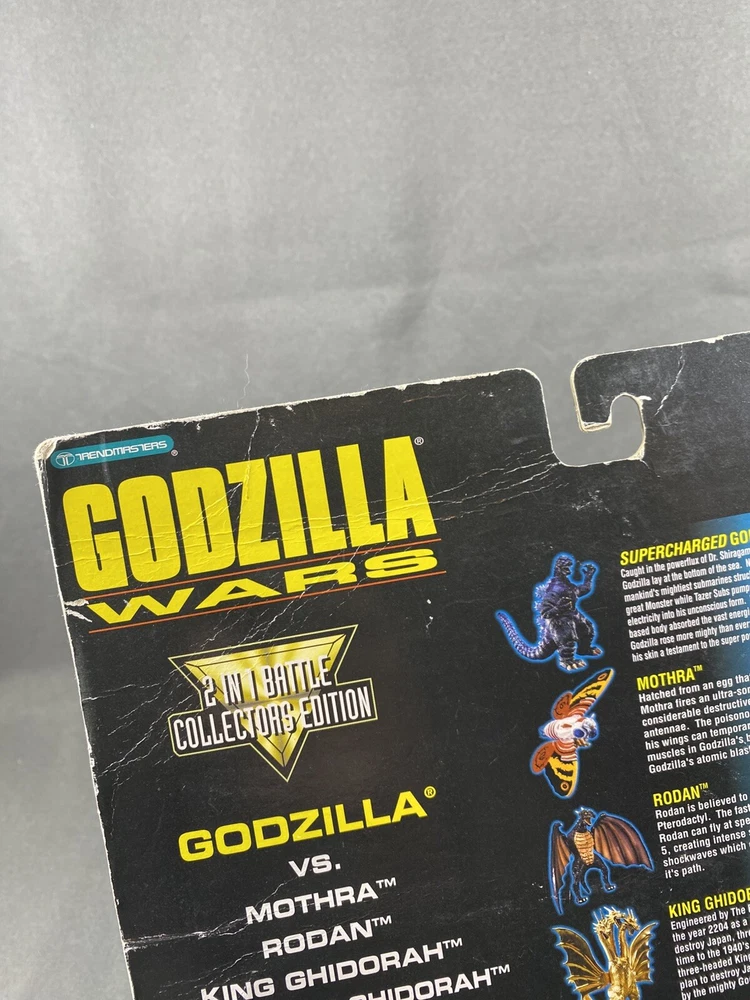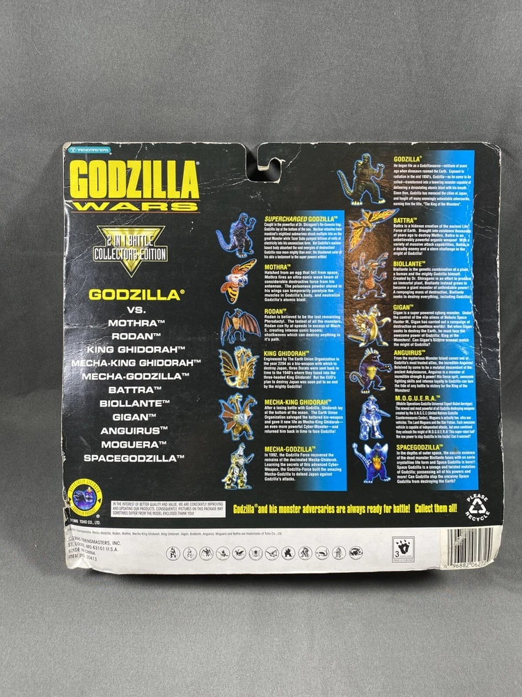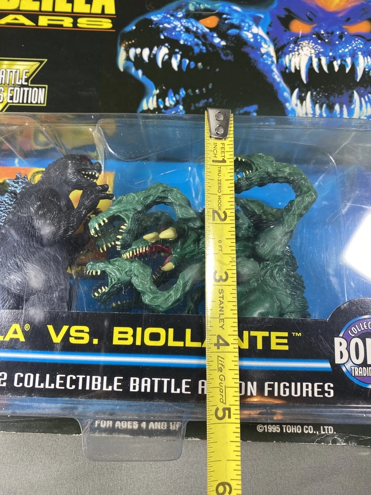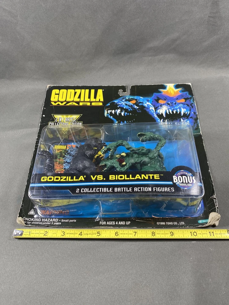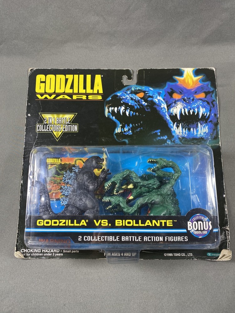 1995 Trendmasters Godzilla Vs Biollante godzilla Wars 2 in 1 Battle Collectors Edition action figures pack. Comes as seen pictured. New in unopened original packaging. Packaging has a fair amount of wear and tear. Please see pictures as they are part of the description. I try to be as accurate as possible in my description. I very much appreciate your positive feedback. Customer satisfaction is my priority. I will answer any questions you have as promptly as possible and to the best of my ability. Please contact me before you leave feedback if you have concerns and I will make my best effort to remedy the situation. USA shipping only. Thanks for looking! R-1