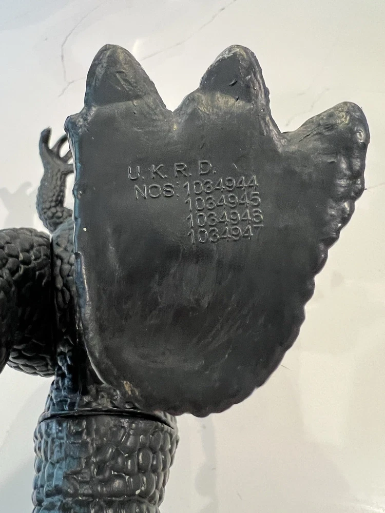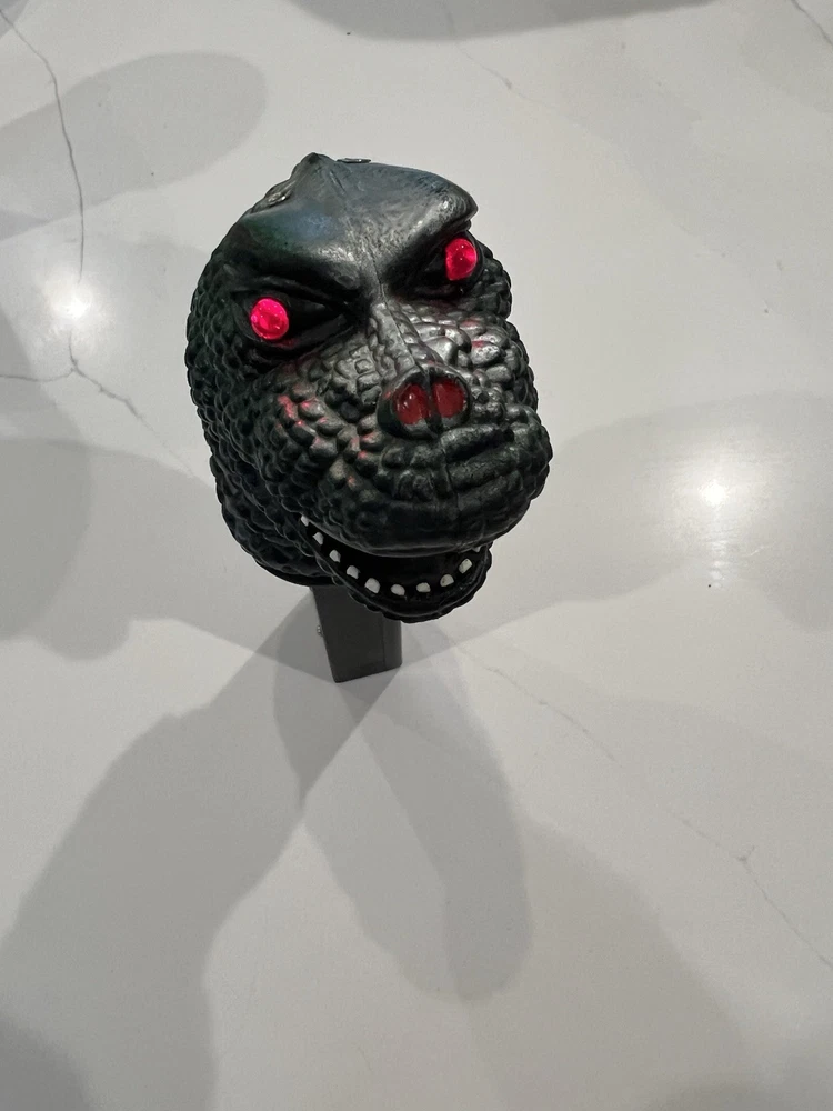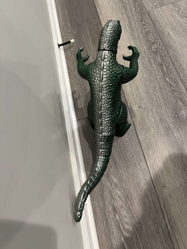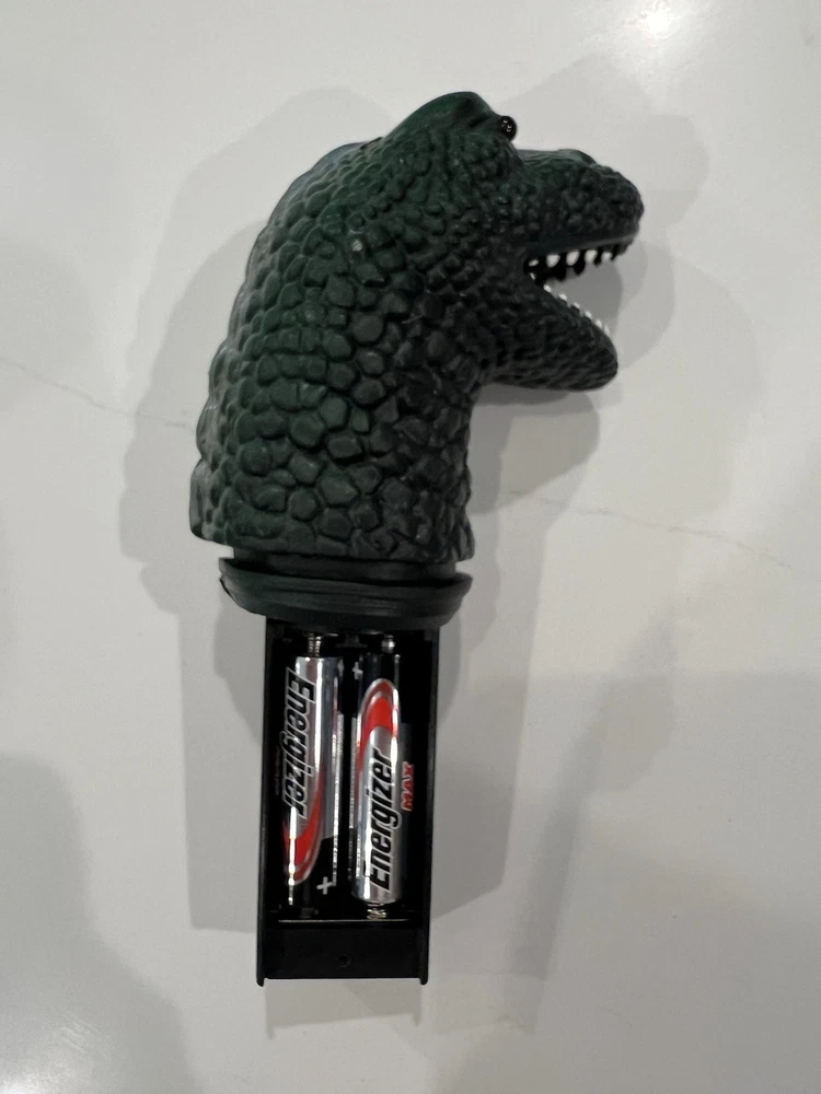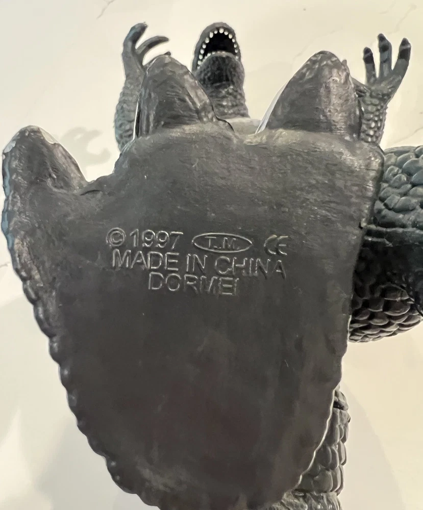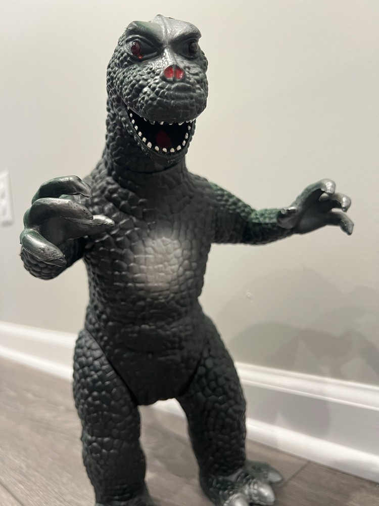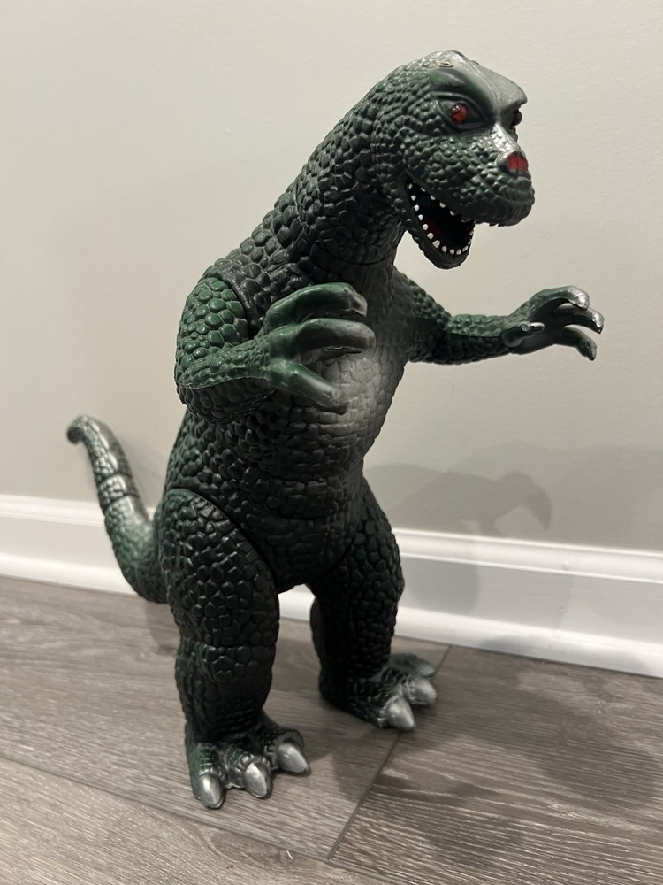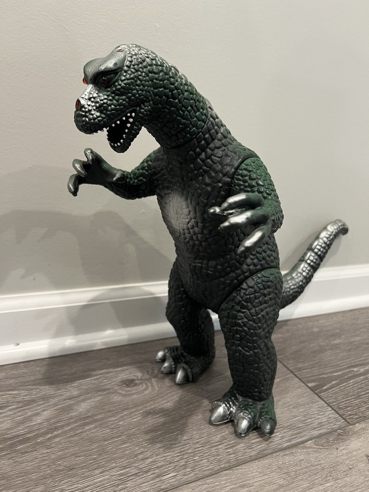 For sale, a 1997 Dor Mei Godzilla About 15” in height, with posable arms, head, legs and tail. Pretty good original green and silver paint job Lights and sound works great, new batteries, ready to go. Item will ship quickly and safely with UPS ground! Buy with confidence!