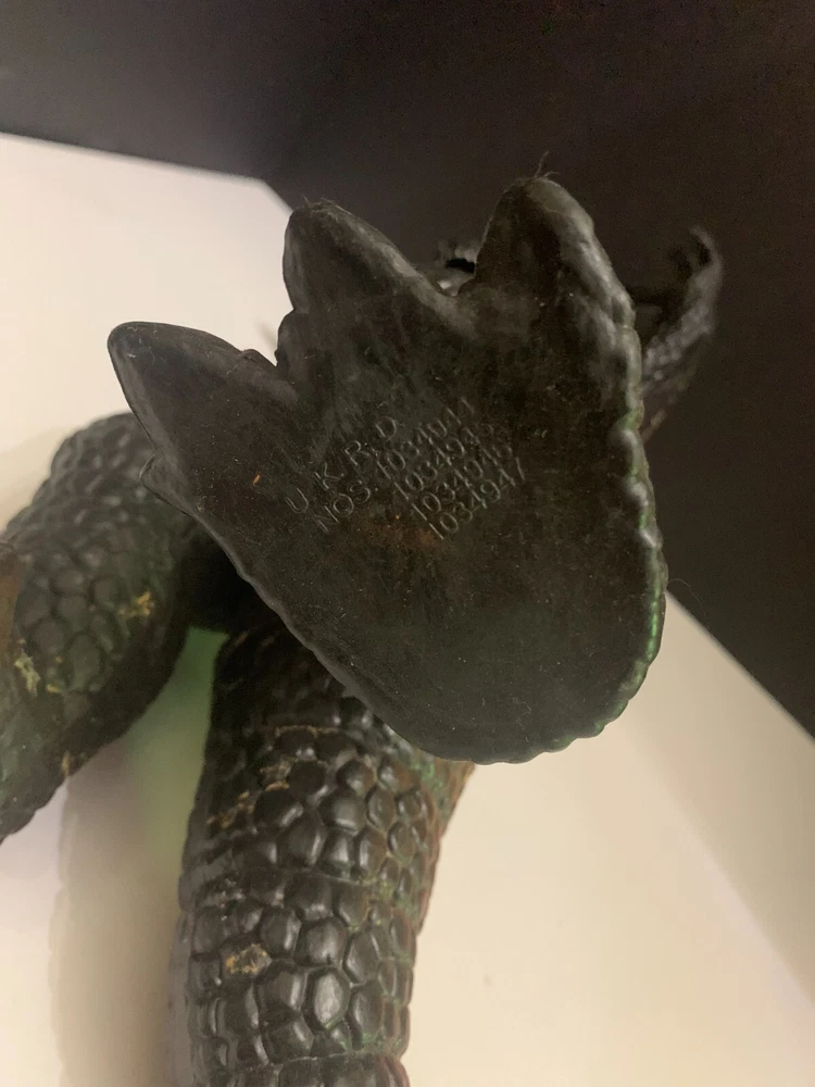 ITEM: Vintage 1997 Dormei Black and Red Godzilla 14 inch Animated Action Figure DESCRIPTION: This is a Vintage 1997 Dormei Black and Red Godzilla 14 inch Animated Action Figure . Nice Find ! This is made of a plastic material. It is marked: 1997 Made in China Dormei . The size is approximately 14 inches tall. CONDITION: This is in Good condition with some minor finish wear/loss. and it could use a cleaning . The pictures are part of the description, so please view all pictures. This is being as shown, so if you have any questions please contact us. NOTE: The post office goes by size and weight and location, I ship Priority mail unless otherwise stated. If a Parcel post option is listed as a shipping option (sometimes it is due to weight or size or a combination of both) please be aware that this is for a one way ticket from the Post Office--if it is returned for any reason I have to pay to pick it up and pay to reship it to you-- Parcel Post can take up to 9 days to get to you, if you are buying a book and choose Media Mail this could take up to 9 days to get to you so please keep this in mind. Even though I ship within 1 business day, these forms of shipping take longer. If you are an International Buyer and choose a First Class International Shipping Option Be Aware There is No Tracking Number And Items Do Get Lost. You Will Be Responsible If The Item Is Lost, I recommend shipping via International Priority Mail so you have a tracking number!! I always ship within one business day. If you want the item very quickly then pay for the item by 7 pm Monday through Friday then the item will be at my local post office on its way to you at 7 am the next day. If you pay after 7 pm Monday through Friday nights, I will ship the item out the second business day. For example, if you pay for an item at 7:05 pm on Monday night, it will be taken to my local post office at 7 am on Wednesday. I do ship out on Saturday too. If you pay via an e-check it will not ship until payment clears through Paypal which can take from 5-10 days. I only accept returns if the item is not as I described it. All pricing is up front so you know exactly how much everything is! CONTACT: If you have any questions, comments, or concerns please use eBay messages. PAYMENT : PAYPAL PREFERRED Payment is expected within 4 days of completed auction. International Buyers – Please Note: • Import duties, taxes, and charges are not included in the item price or shipping charges. These charges are the buyer's responsibility. • Please check with your country's customs office to determine what these additional costs will be prior to bidding/buying. • These charges are normally collected by the delivering freight (shipping) company or when you pick the item up – do not confuse them for additional shipping charges. • We do not mark merchandise values below value or mark items as "gifts" - the US and International government regulations prohibit such behavior. RETURN POLICY: I only accept returns if the item is grossly misrepresented. The return shipping is the buyer's responsibility. SHIPPING & HANDLING: The post office goes by size and weight and location, I ship Priority mail unless otherwise stated. There is no handling charge passed on to buyers. You are paying for the cost of the shipping only. The cost of the supplies used to ship your item is being paid by me. COMBINED SHIPPING: I offer combined shipping on all items of similar size and weight. However, if you purchase an extremely large and fragile piece, I will NOT ship that with other large and fragile pieces. INTERNATIONAL SHIPPING: The post office goes by size and weight and location, I ship Priority mail unless otherwise stated. There is no handling charge passed on to buyers. You are paying for the cost of the shipping only. The cost of the supplies used to ship your item is being paid by me. 2115