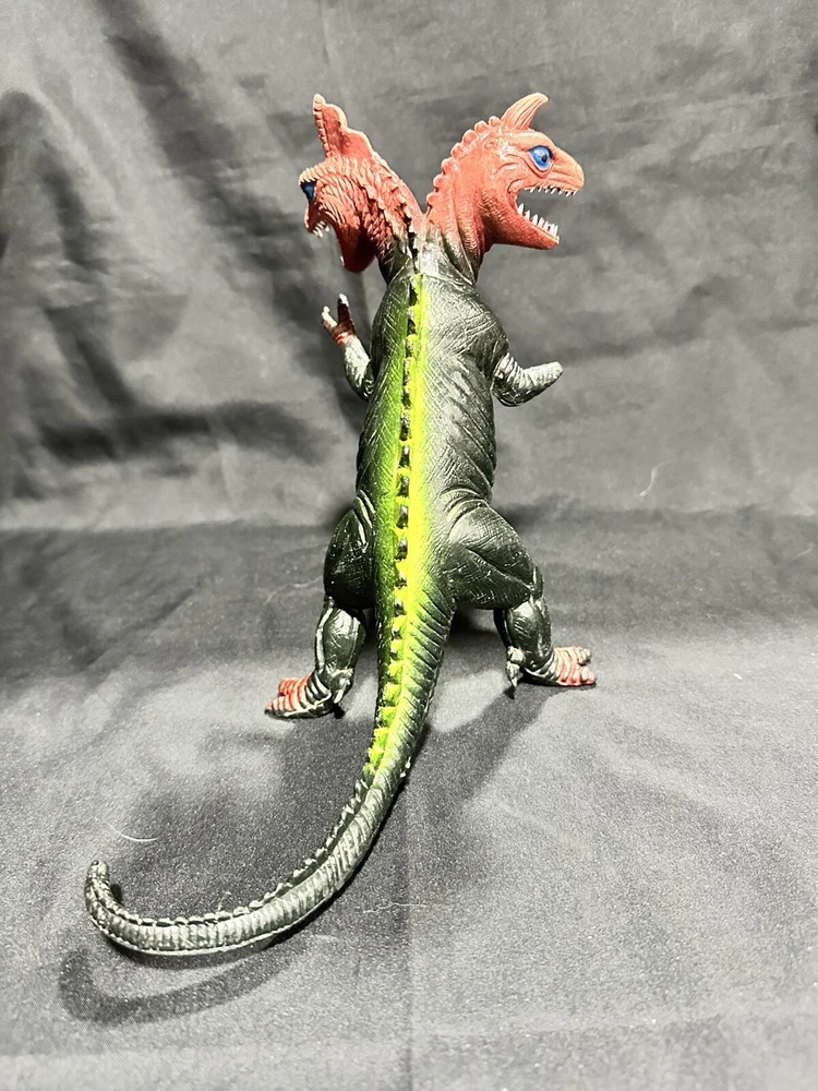 This vintage 2-headed kaiju monster figure stands at 8 inches tall and features the iconic Godzilla dinosaur. The toy is made from high-quality vinyl and was manufactured in China. The brand is unknown, but the theme of the figure is Godzilla. This collectible is perfect for fans of the legendary monster and would make a great addition to any toy collection. The figure is suitable for display and play and is sure to impress anyone who sees it. Don't miss out on the chance to own this unique and fascinating piece of vintage toy history.