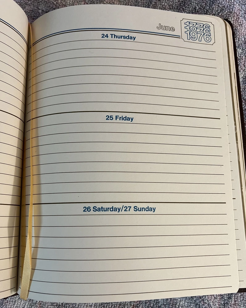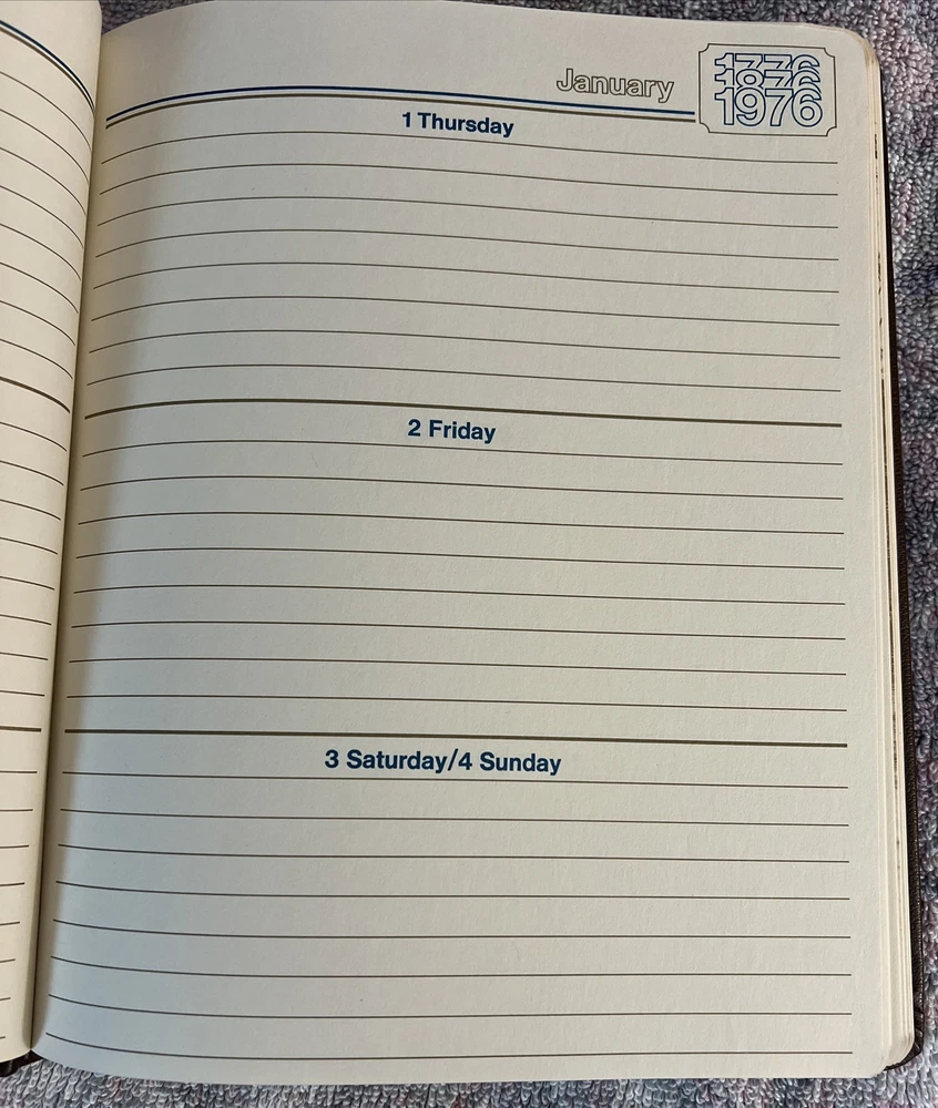 Vintage American Bicentennial Diary-1976 Limited Edition of 20k- Unused, Not Written in. Has a distinct smell of old books.