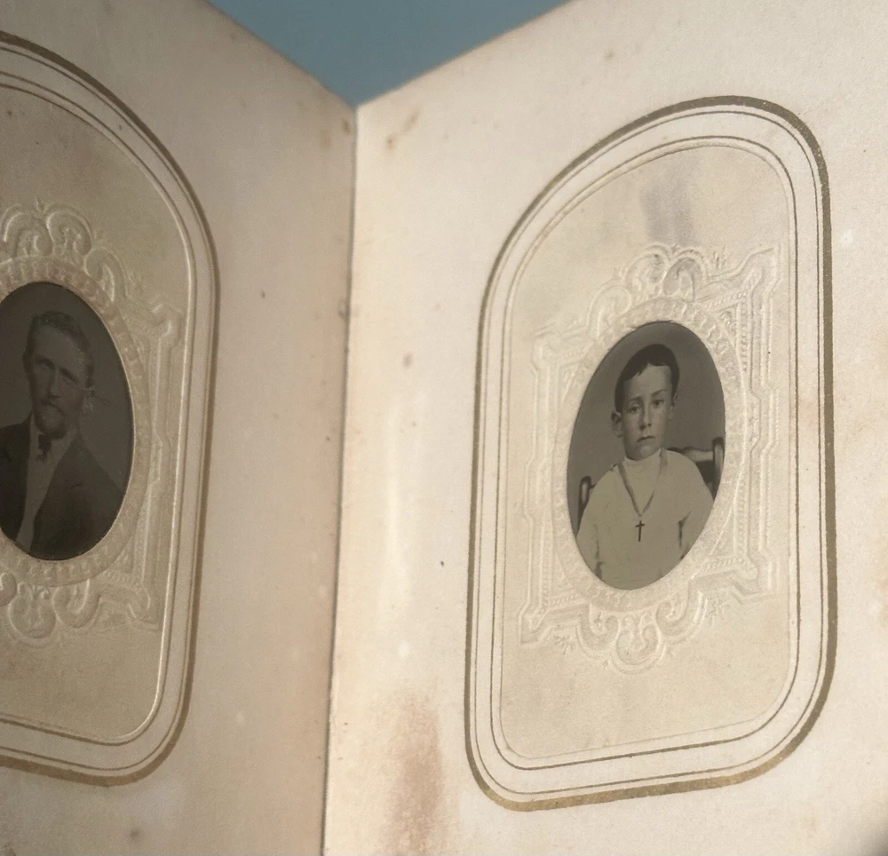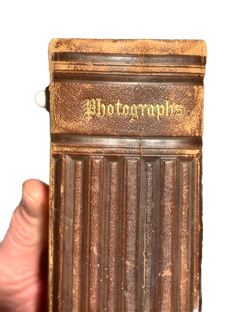 Vintage Antique mid to late 1800’, Leatherbound Photo Album 43 Cabinet Card Portrait Photos With Clasp. The album is measuring 5 1/4” by 6”. Good condition. Please see photos as part of the description. Please check out our other listings. Thousands of items in stock. We ship worldwide! Free US shipping and returns