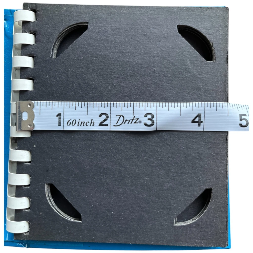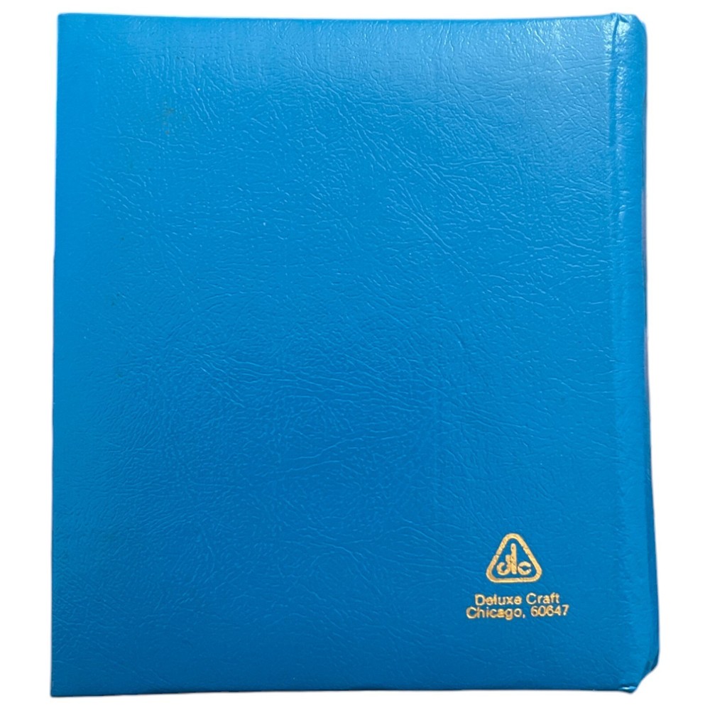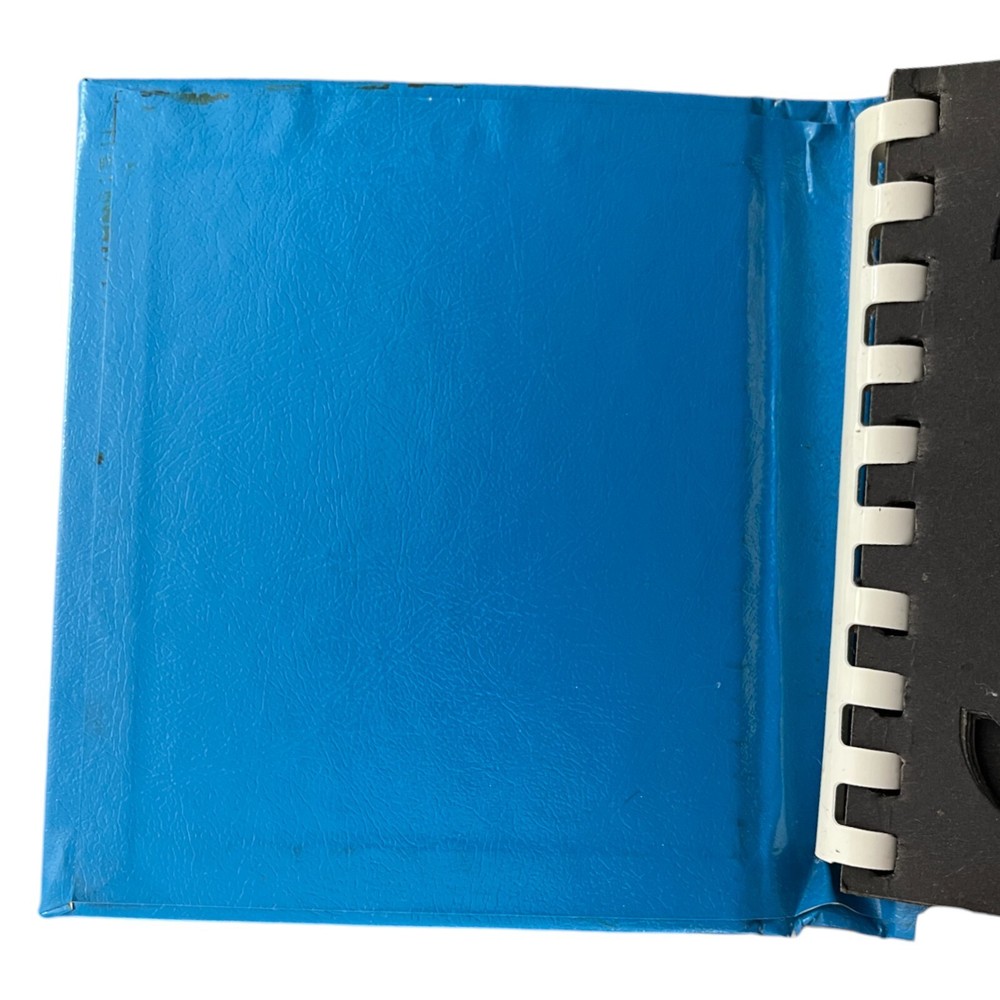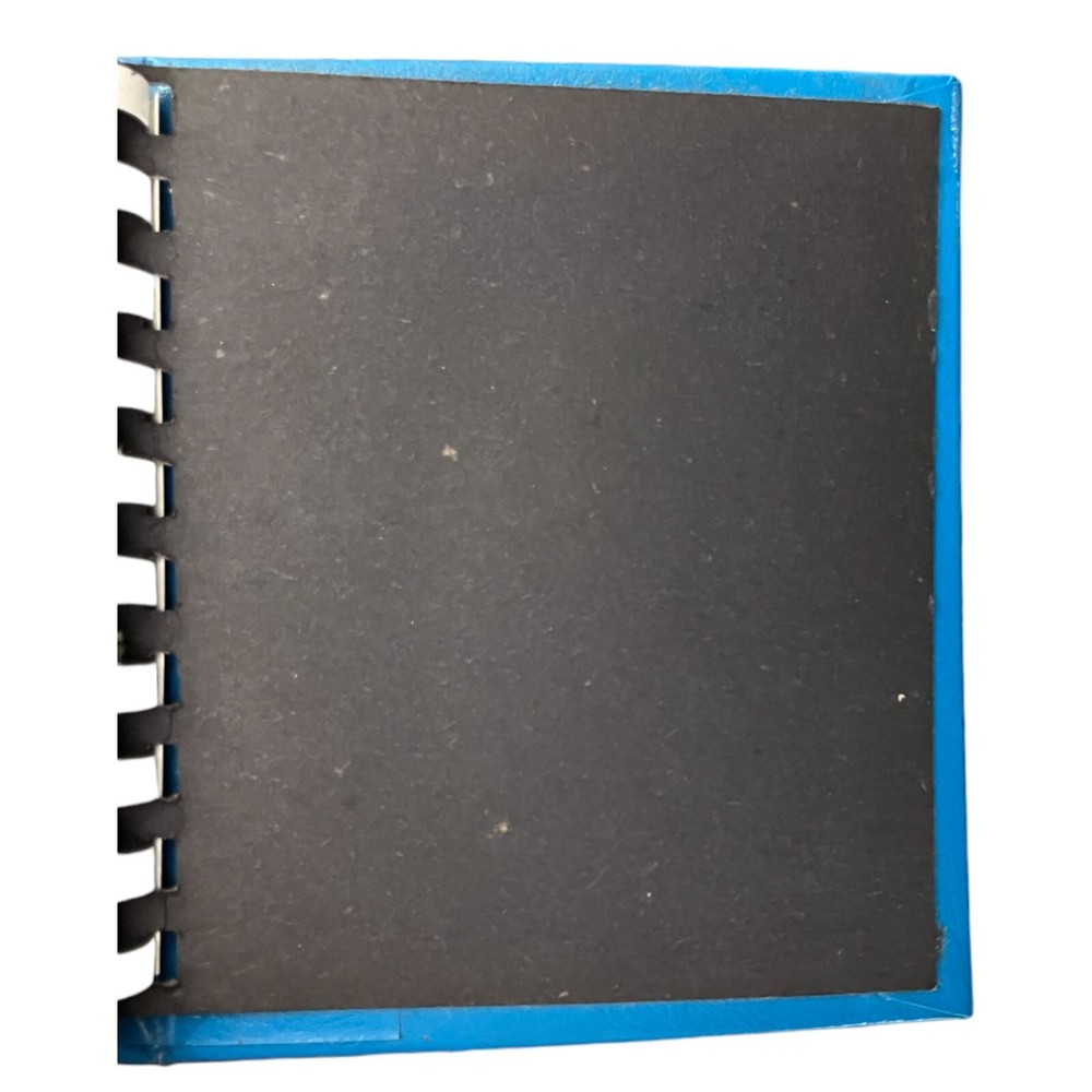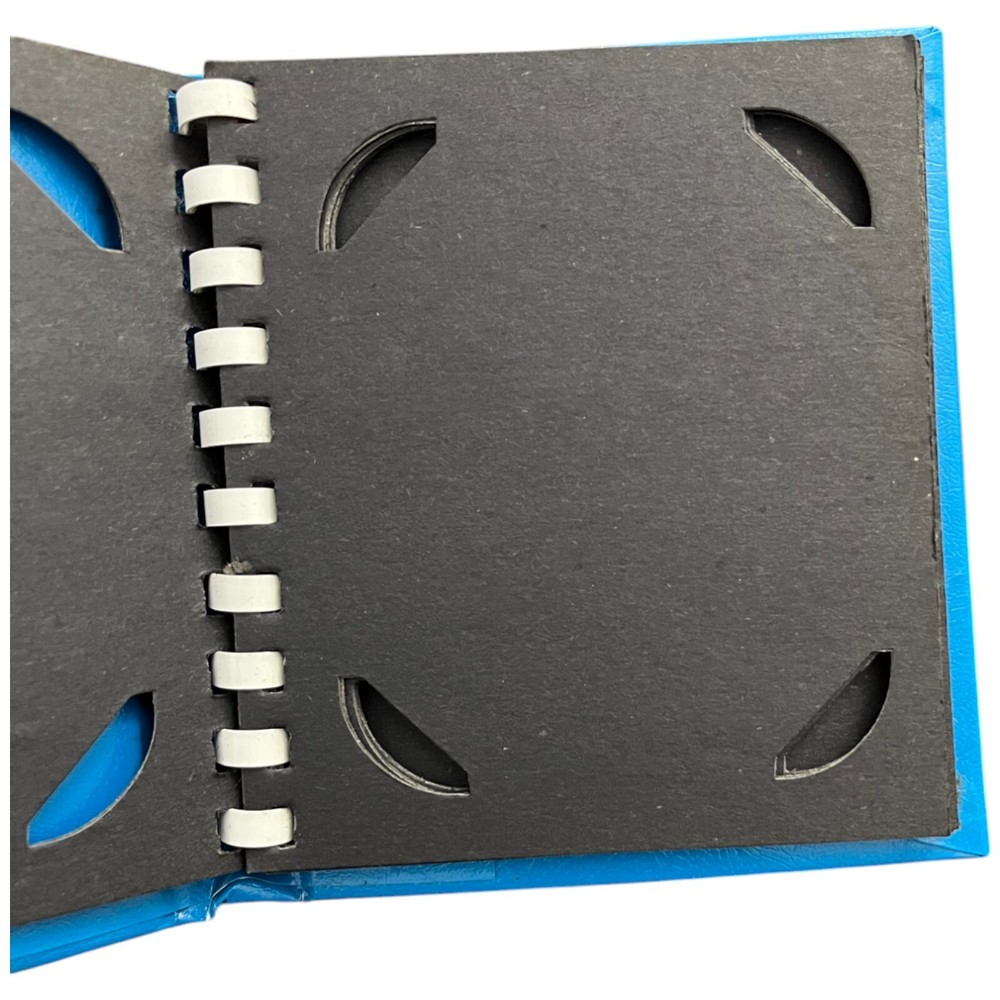 Vintage Blue Spiral Bound Photo Album Print Holder - Holds 3.5 x 4.25" Solid shape but has some issues. Has some minor staining on the covers. Inside cover has staining/wear on the top. Back cover inside has some scuffing. 5 Spiral Bound "pages"