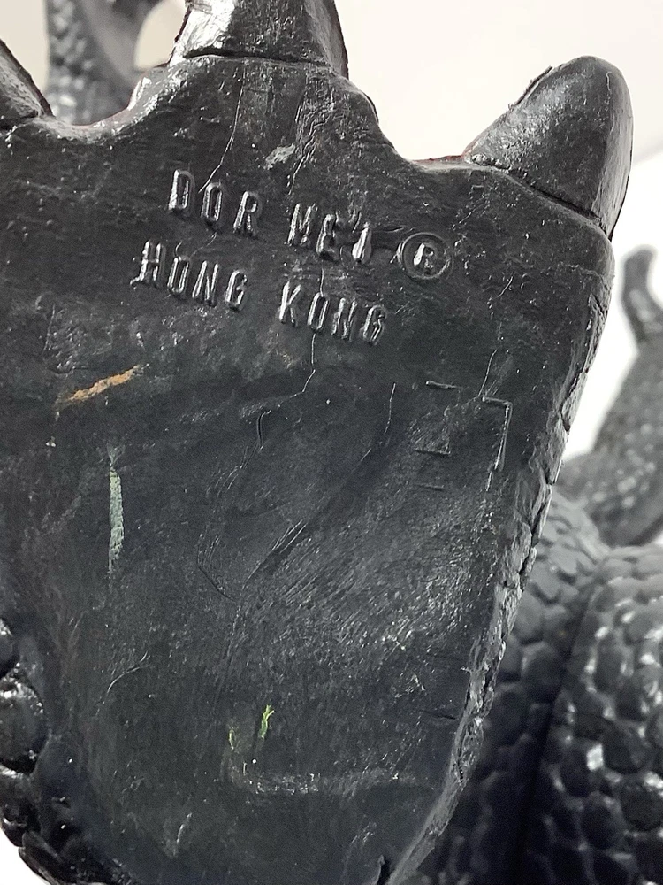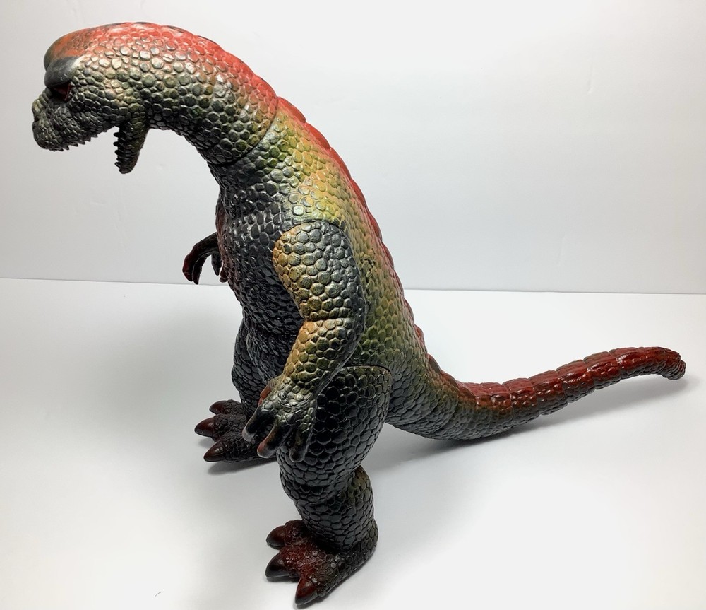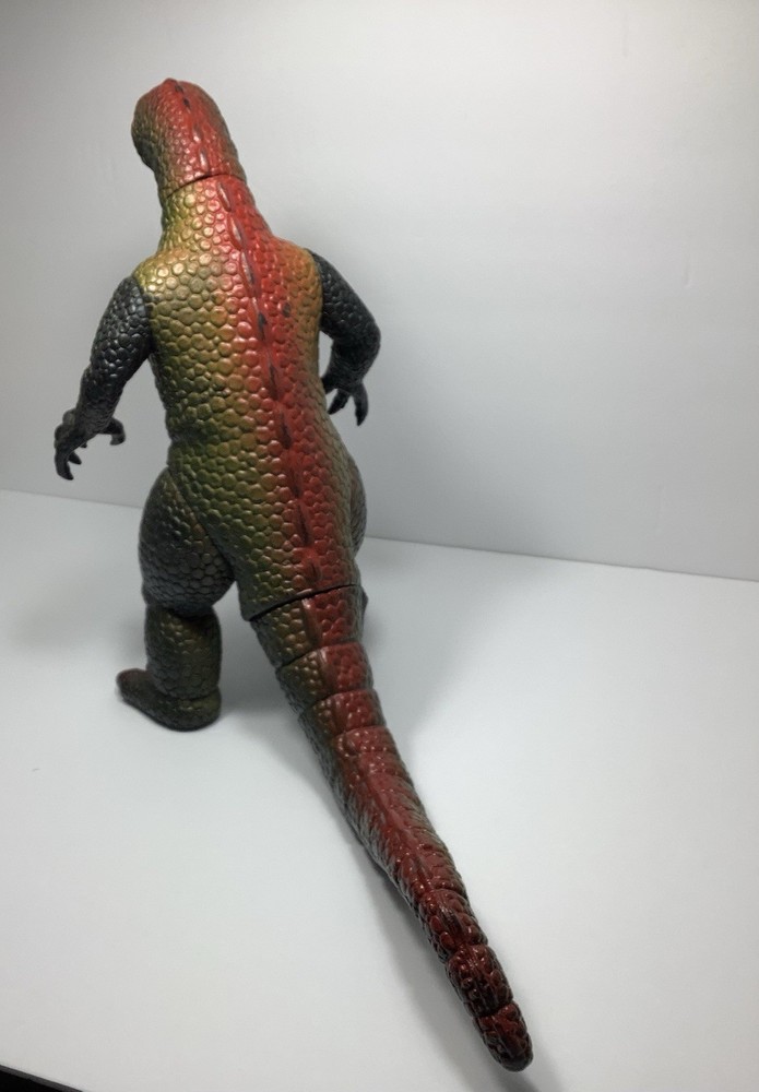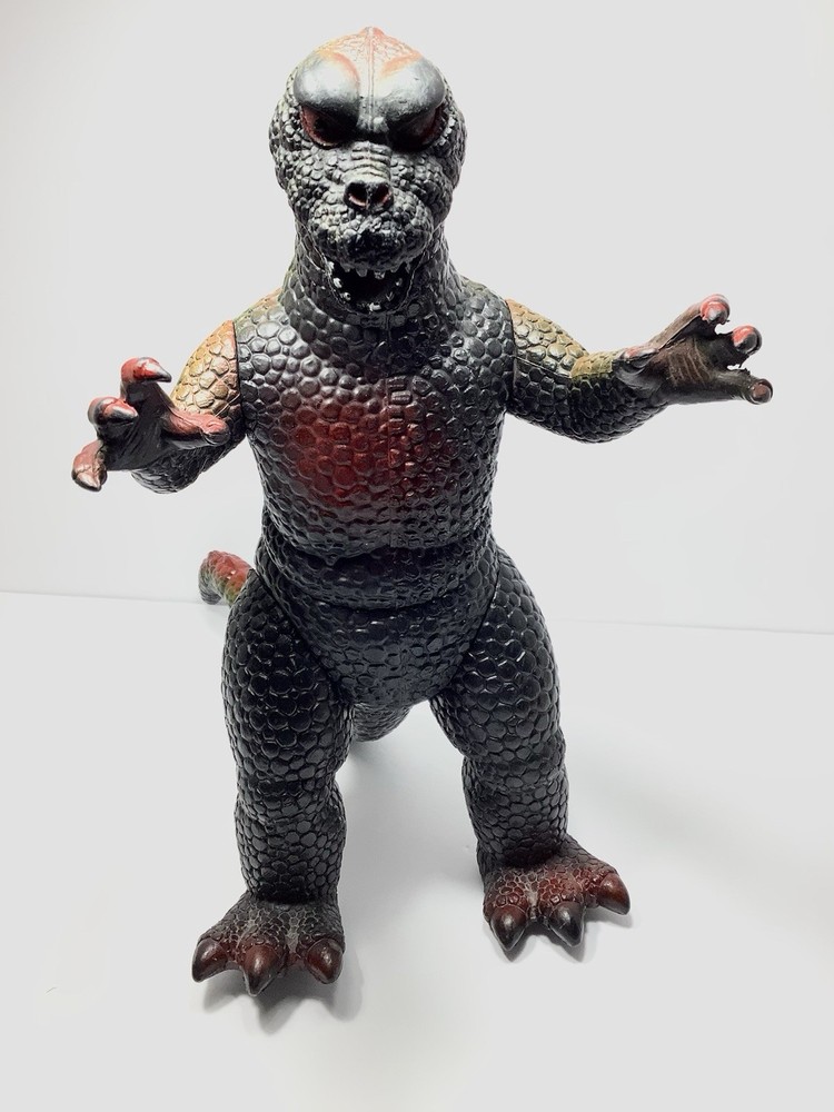 This is a vintage Dor Mei Godzilla action figure that stands at 14 inches tall. It features a gorgeous red design and was made in Hong Kong. He is approx. 14” in height. The figure is suitable for age 3+ , making it a perfect collectible for fans of Godzilla. It does not have a date on it. My mother had it before me, I have had it 20 years. There are WEAR marks on his back where the red/orange color has been removed due to usage. Head and tail is possible. Arms move up and down. From a pet and smoke free home. No returns or refunds. Thanks for looking and have a great day.