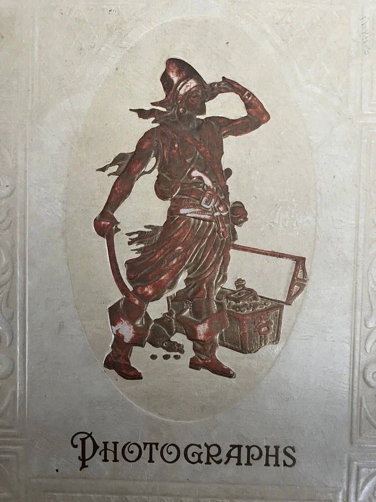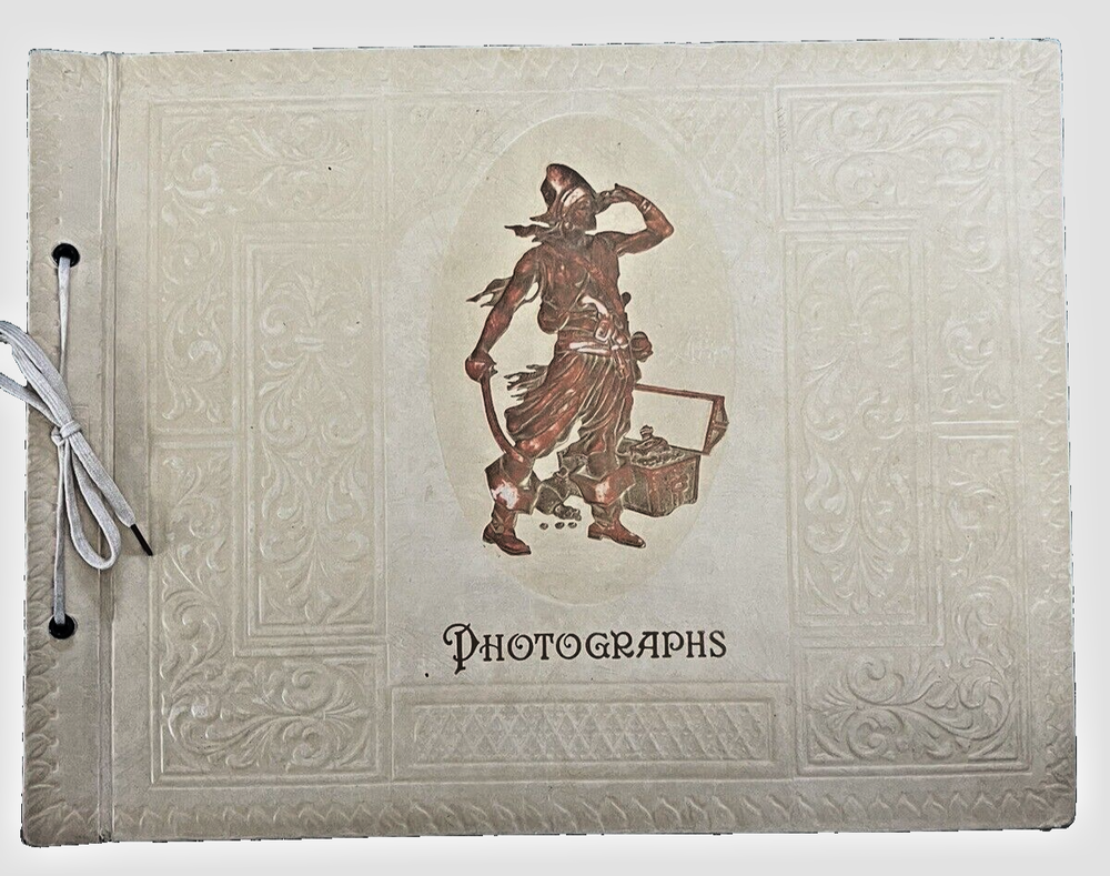 Vintage Faux Leather String Bound Scrapbook Album Embossed Pirate Treasure Chest. Color is Ivory. Measures apx: 15" x 11.5" Pre-owned item. Does have photo corners from original user still attached to the pages. With a little effort, These can be removed. Visit my store to see more items! Splash Body and Bath Co | eBay Stores Thanks for looking!