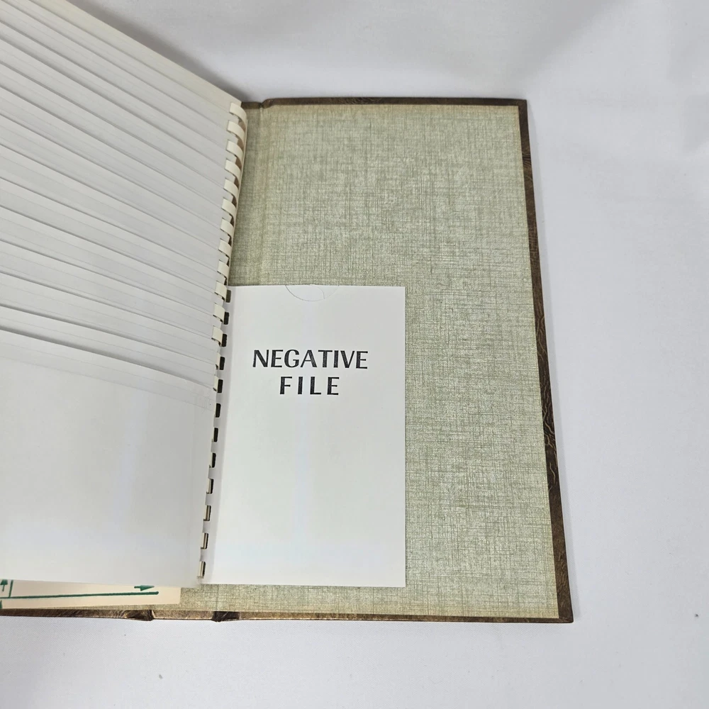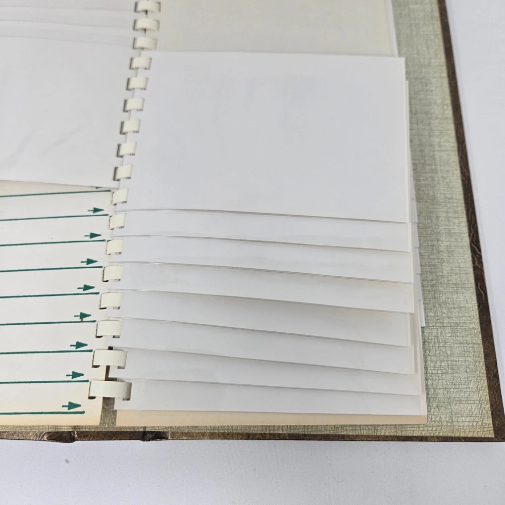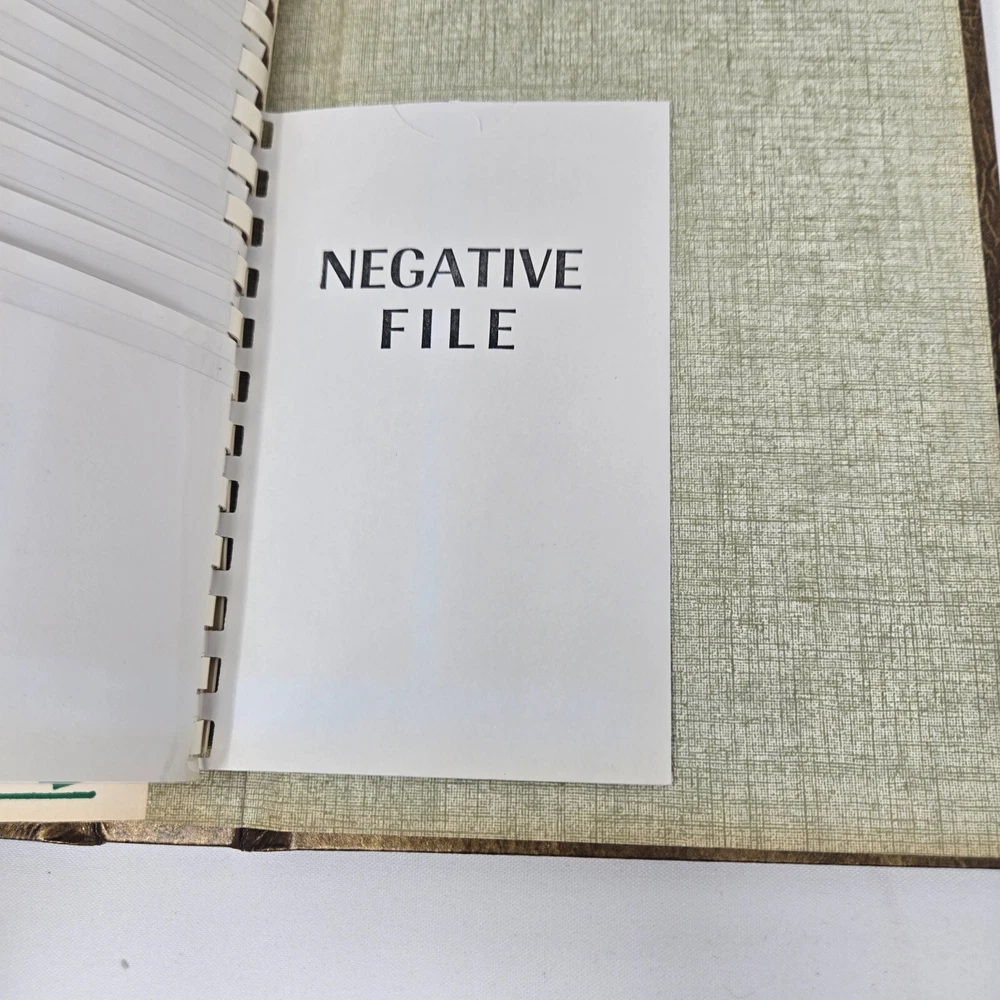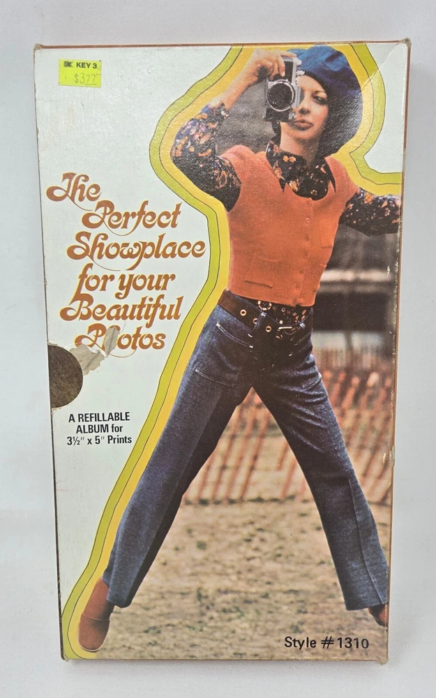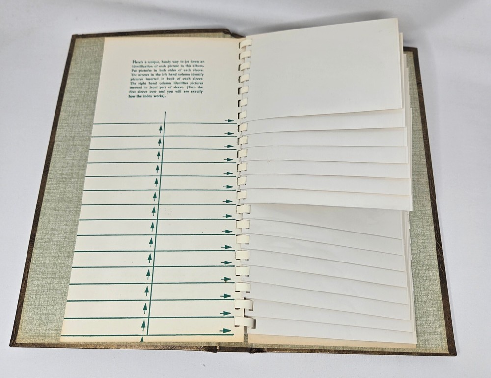 This is an unused photo album from the 1970s from Focal, MPN 1310. It is a spiral bound album with a brown, faux leather cover that holds up to 60 3.5" x 5" photos such as those from 110, 107, and 108 film cameras. They are cascading slip-in pockets. It comes in original box. This album is new, old stock. It has never been used but is from the 1970s so is not in mint condition. It is in original box and has been safely stored in cabinet all these years. It has no damage or defects, just some yellowing from natural aging.