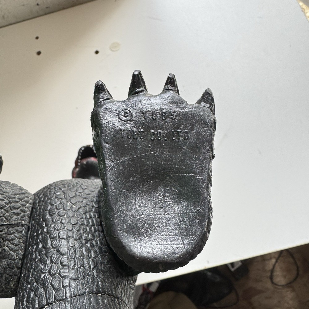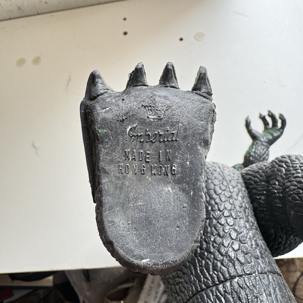 The vintage 13" Godzilla action figure from 1985 is a highly sought-after collectible for fans of the iconic monster. Produced by Imperial, this articulated toy captures the essence of the Green Imperial Godzilla from the Toho franchise. With detailed design and high-quality construction, this classic piece is sure to be a standout addition to any collection of monster-themed toys or Godzilla memorabilia. Perfect for display or play, this vintage action figure is a must-have for any Godzilla enthusiast.