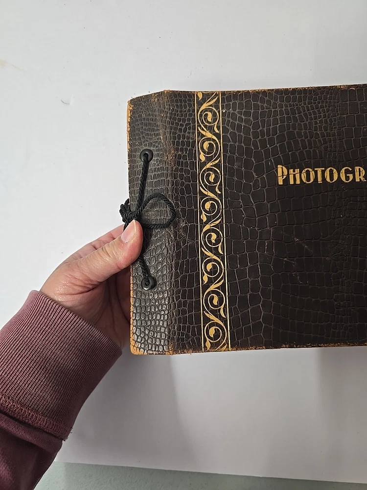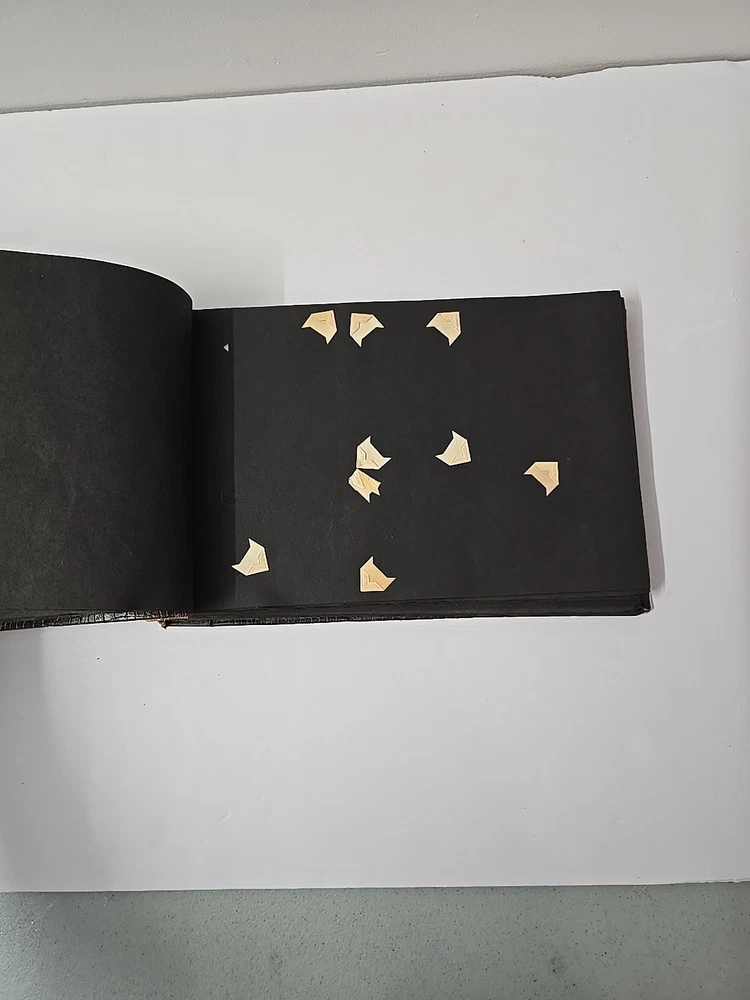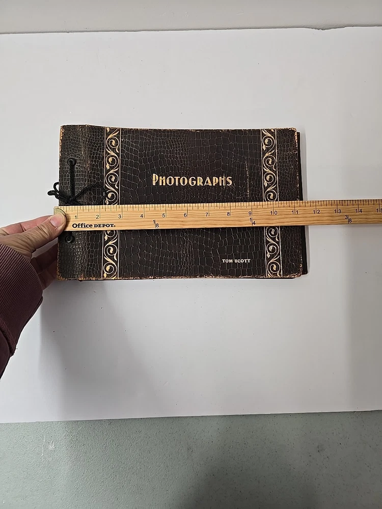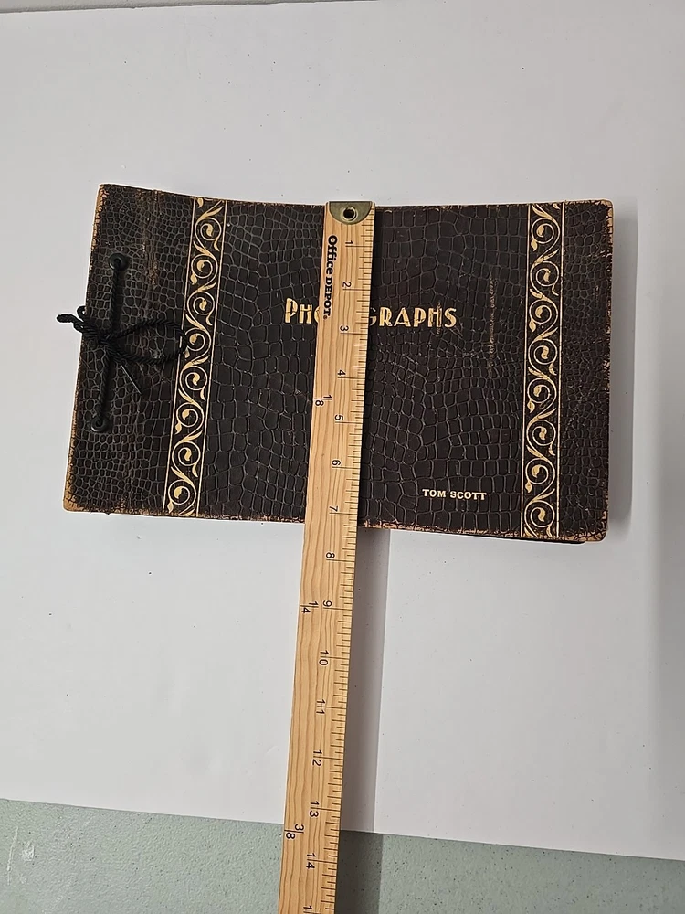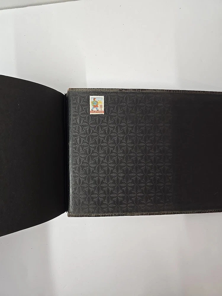 Pre-owned does have some wear and tear binding is loose some discoloration corners damaged Some of the pages appear that they used to have photos some of the pages have photo corner stickers on them last couple of pages are damaged too. Sold as is.