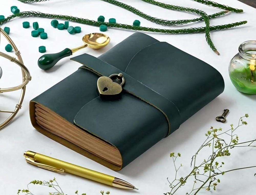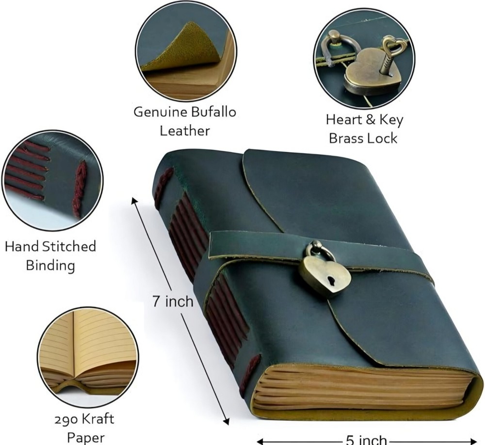 ANSAR HANDICRAFTS Vintage Handmade Leather Journal Diary Notebook Discover the perfect blend of vintage charm and modern functionality with our Handmade Leather Journal. Crafted from high-quality, genuine leather, this 7x5-inch journal exudes timeless elegance, making it an ideal companion for your daily reflections, creative writing, or note-taking. The journal features two types of paper: Deckle-Edged Paper for an authentic, rustic feel, and Crafts Line Paper for a more structured writing experience. Whether you're jotting down thoughts, sketching, or organizing your tasks, this journal offers the perfect canvas for your creativity. Diary with Lock - Personalized Gifts for Women -Leather Journal Notebook With Lock - Lined Pages - Notepad With Lock -Gifts for him and her Product Features: availaible in four Colours Journal Handmade Leather Cover: Each journal is meticulously crafted from genuine leather, providing durability and a soft, luxurious feel. Dual Paper Options: Includes deckle-edged paper for a vintage look and crafts line paper for neat, organized writing. Compact & Portable: The 7x5-inch size makes it easy to carry with you wherever you go. Vintage Aesthetic: Perfect for lovers of all things vintage, with a design that complements any style. Secure Closure: The wrap-around leather strap ensures your journal stays closed and your thoughts remain private. Handcrafted Quality: Each journal is made by skilled artisans, ensuring unique character and unmatched quality. Perfect Gift for Women: Ideal for Writers: A thoughtful gift for any woman who loves to write, journal, or sketch. Special Occasions: Perfect for birthdays, anniversaries, or as a holiday gift. Personal & Meaningful: Give a gift that encourages creativity and self-expression. Versatile Use: Whether it's used as a diary, planner, or travel journal, this notebook will be cherished. Embrace the art of journaling with a beautiful, vintage-style notebook that’s as unique as your thoughts.