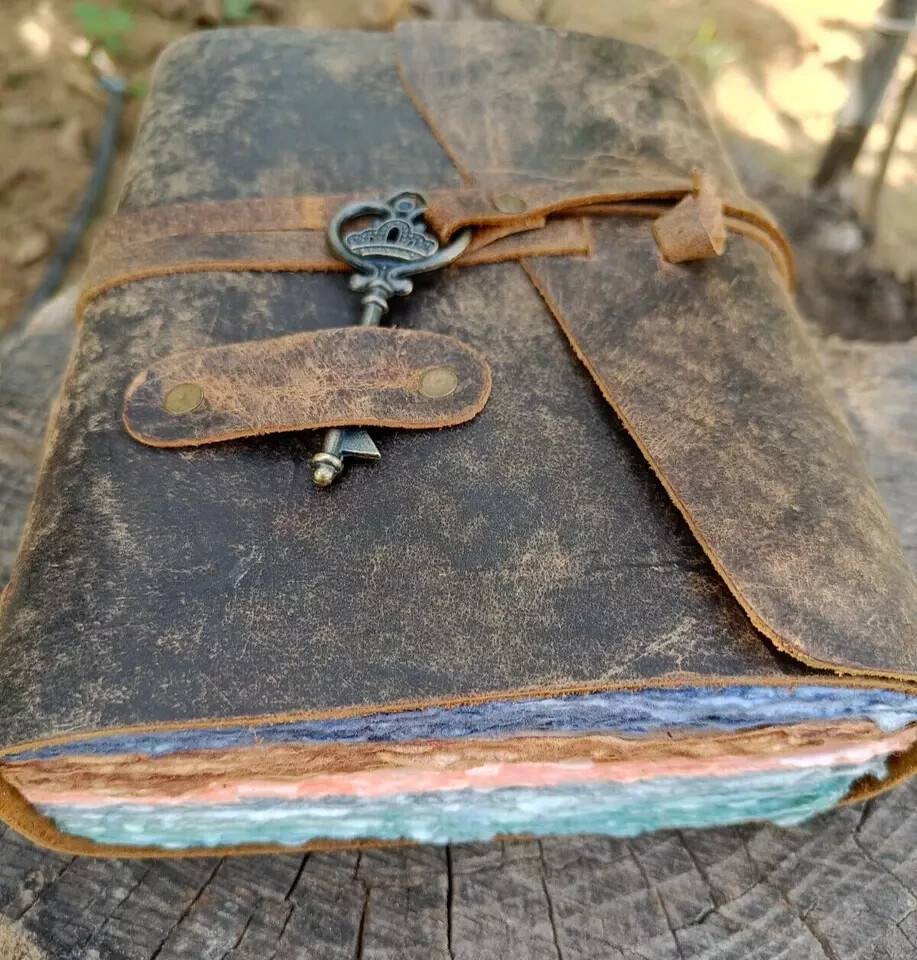 *Unique Handmade Multi color Cotton Paper 200 blank paper pages. *Unique leather journal with handmade cotton multi color paper. * A Beautiful Leather Journal of the Highest Quality *Entirely handcrafted by artisans, each leather bound journal is a work of art. *Product Dimensions: (8 x 6 inches) (20.32 x 15.24 CM) Pages : 200 ( counting both side) *We use a thicker, higher grade leather combined with incredible craftsmanship to create a journal that is soft and supple in the hand with that fabulous, intense leather scent. Thanks for visit my ebay store