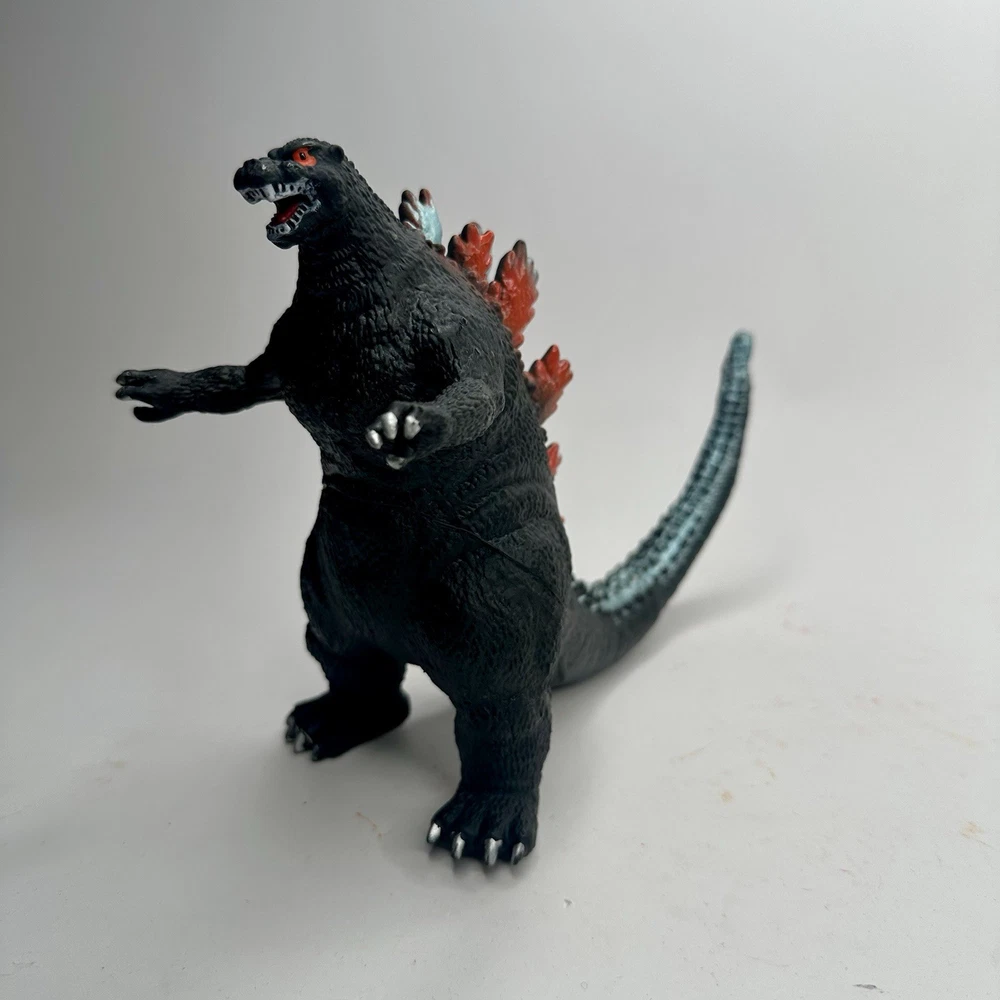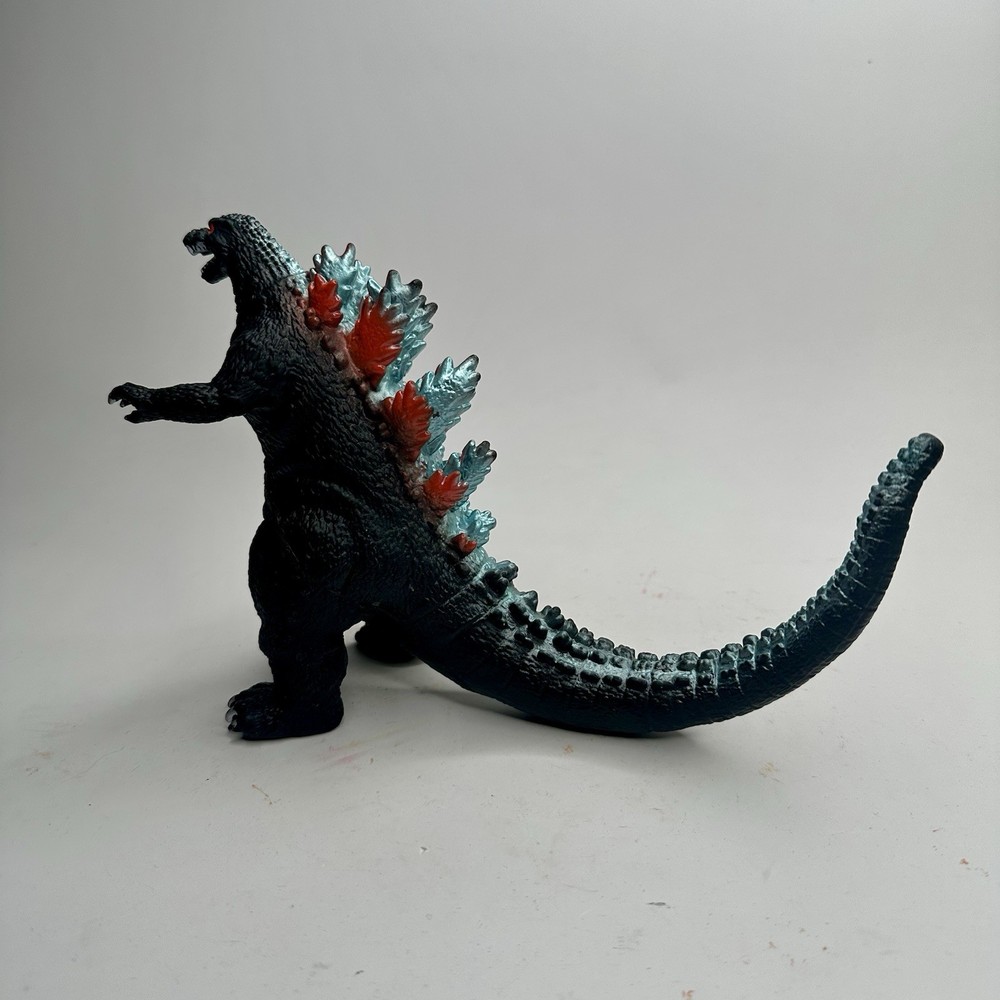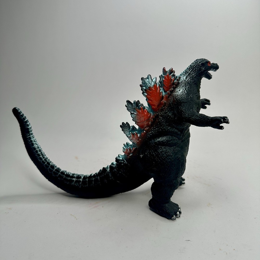 The Vintage Godzilla Action Figure is a nostalgic 6" tall toy depicting the iconic monster with classic black, red, and blue dorsal plates. This collectible item is perfect for fans of Godzilla and vintage toys, showcasing the fearsome creature in a timeless design that captures the essence of the legendary monster. Displaying intricate details and vibrant colors, this action figure brings to life the legendary Godzilla in a fun and playful way, making it a must-have for any fan of the franchise.