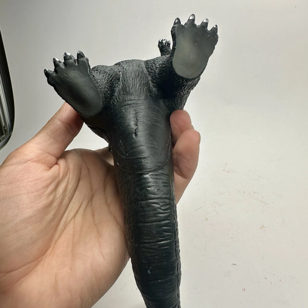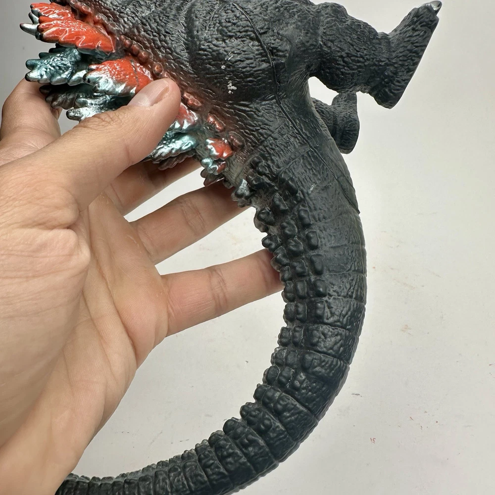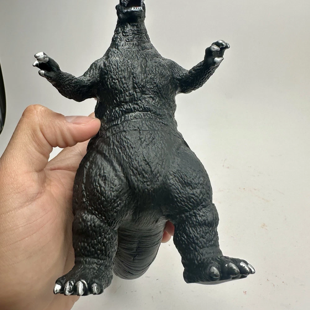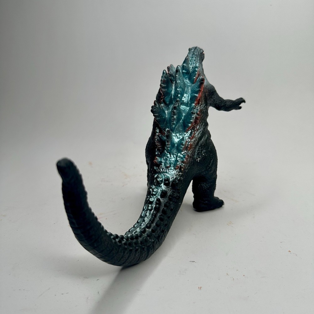 The Vintage Godzilla Action Figure is a nostalgic 6" tall toy depicting the iconic monster with classic black, red, and blue dorsal plates. This collectible item is perfect for fans of Godzilla and vintage toys, showcasing the fearsome creature in a timeless design that captures the essence of the legendary monster. Displaying intricate details and vibrant colors, this action figure brings to life the legendary Godzilla in a fun and playful way, making it a must-have for any fan of the franchise.