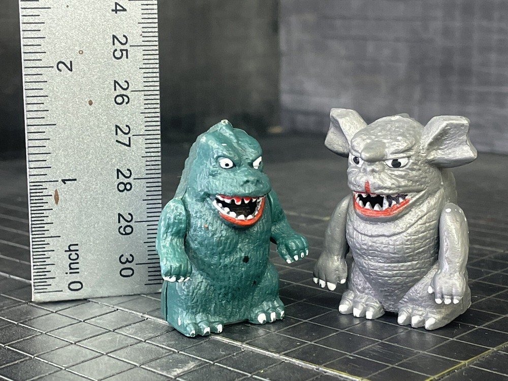 Non working, do not spark Vintage Godzilla Gojira Choro-Q Sparking Friction Japan Toy Kaiju Figure Set. Condition is Used. Shipped with USPS Ground Advantage.