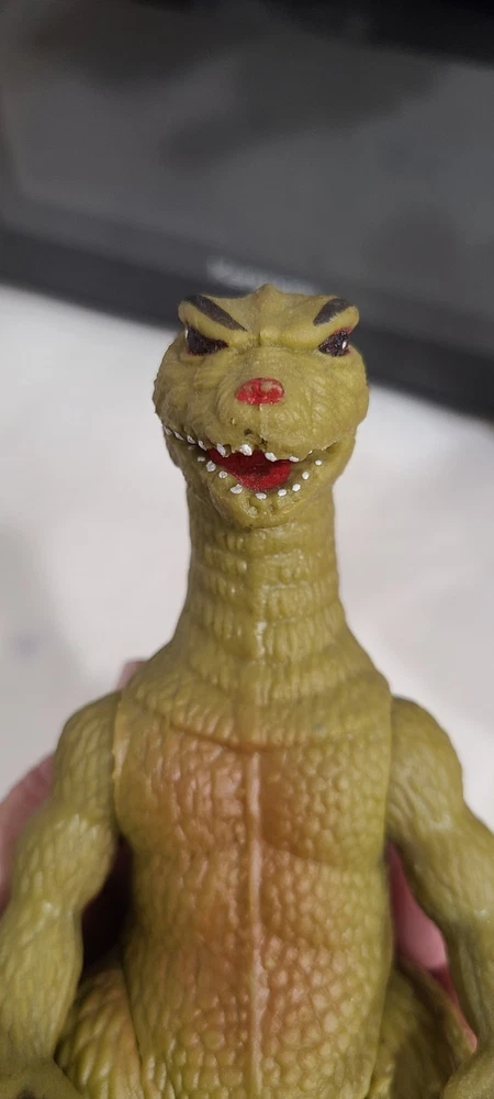 Up for sale is a vintage Godzilla green figure. I believe this to be from Mexico. It stands approximately 7 inches tall. It may show some paint rub, scuffs and or marks on it. It seems to have a chipped left hand nail. Overall it's in good condition. Comes from a smoke free home. Thanks for looking.