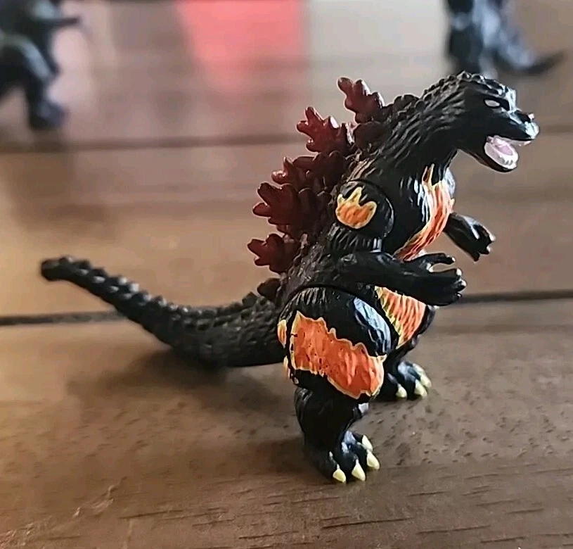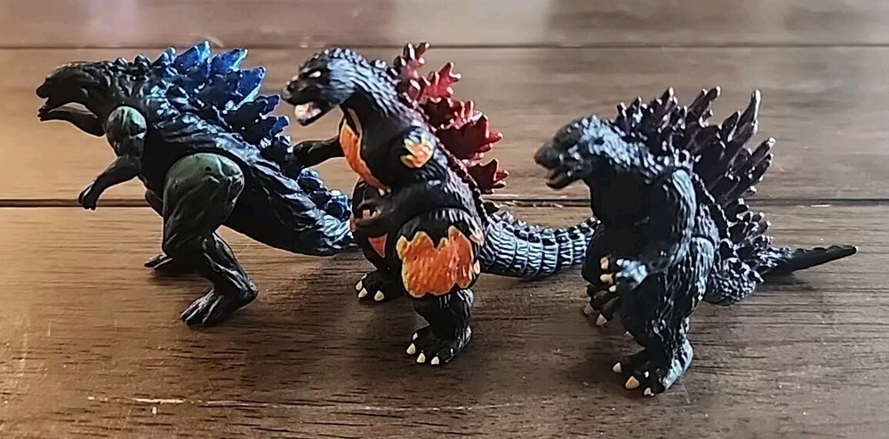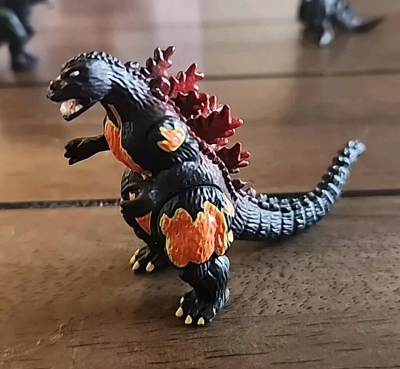 Vintage Godzilla Lot Of 3 Burning Fire Lava Mini Action Figure 3” Bandai VTG. Including Burning Fire Blue Back Scales Red/Purple Back Scales Items are used so please look at the pictures for the overall condition of the items, and if you would like any other pictures please ask.