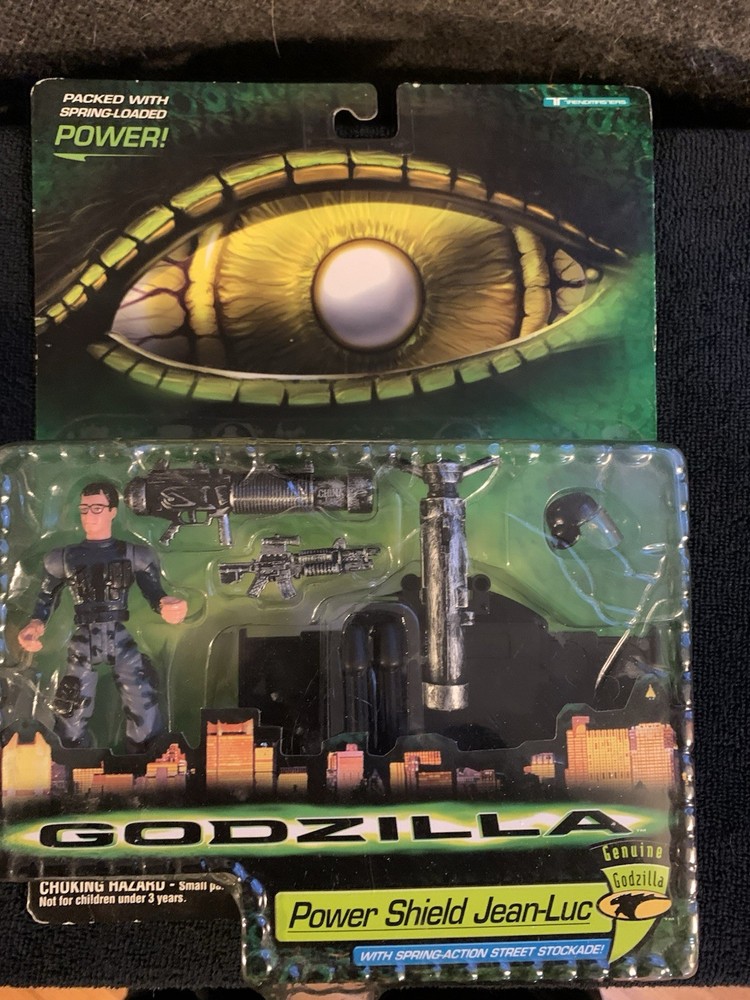 The Vintage Godzilla Power Shield Jean-Luc Action Figure Set from 1998 is a collectible item featuring the iconic character Godzilla. Made from ABS plastic, the multicolored figure comes sealed in its original packaging, making it a sought-after piece for fans of the Godzilla franchise. With its animated adventures theme and boxing sport features, this action figure set captures the essence of the 1990s era and is a must-have for collectors of vintage Godzilla memorabilia. Thank you for looking.