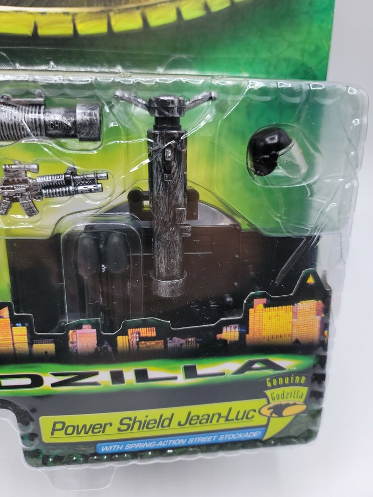 Vintage Godzilla Power Shield Jean-Luc Action Figure Set 1998 Sealed. Box shows slight wear. Shipped with USPS First Class Mail. Please see all photos for description and condition.