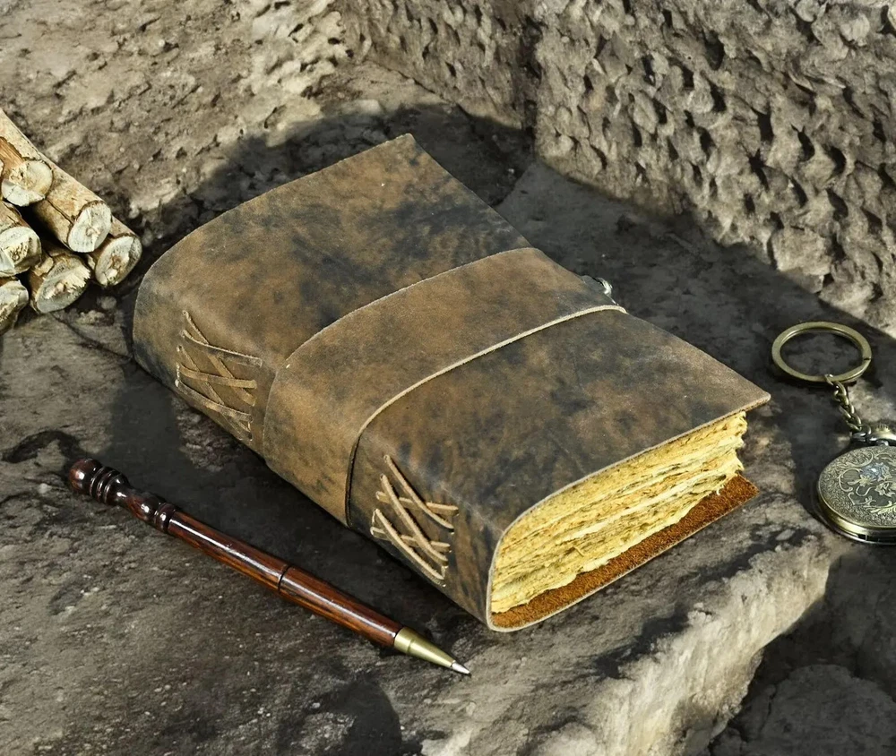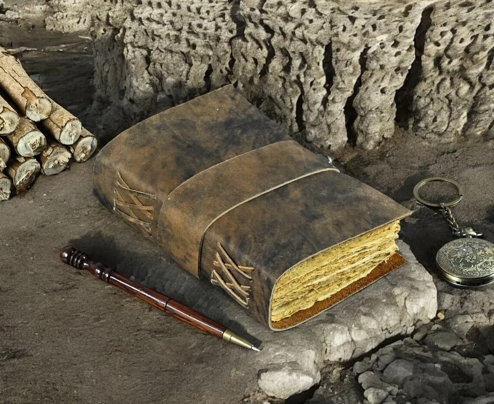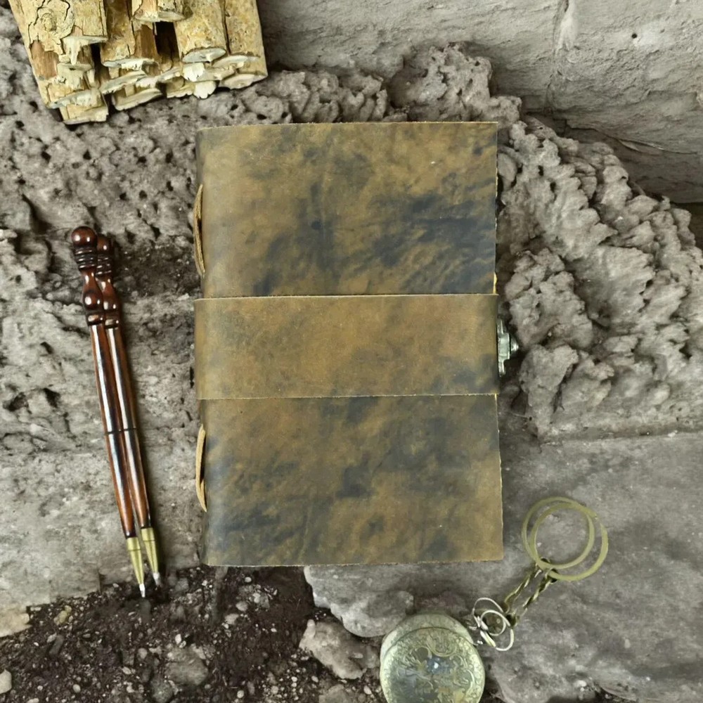 Embrace the mystique of a bygone era with this Vintage Handmade Leather Bound Journal , the perfect companion for your Blank Spell Book of Shadows or personal grimoire. Crafted with an authentic antique look , this journal is designed for witches, mystics, and creatives alike, offering a place to record your sacred rituals, spells, dreams, and reflections. With its rustic handmade leather cover and antique pages , this journal evokes an air of ancient wisdom and timeless magic. Key Features: Handmade Leather Cover : The journal features a genuine, handcrafted leather cover , carefully selected and distressed to create a vintage, worn-in look. The soft yet durable leather feels luxurious in your hands and will age beautifully over time, gaining a unique patina as you continue to use it. Each journal is one-of-a-kind, with natural variations in color and texture, making it an exceptionally personal and timeless item. Antique-Inspired Pages : Inside the journal, you’ll find blank, acid-free pages that are designed to evoke the feeling of antique parchment . The pages feature a slightly aged look with soft, rustic edges, perfect for anyone seeking to capture their thoughts, spells, or creative ideas with an ancient and magical flair. The texture and appearance of the pages enhance the journal’s mystical appeal, making it ideal for your Book of Shadows , Grimoire , or personal journaling. Perfect for Spells, Rituals & Magic : This journal is ideal for anyone looking to document their magical practices , from spells and rituals to sacred writings and affirmations. The vintage aesthetic and blank pages provide a sacred space for witches, spiritual practitioners, and seekers to connect with ancient wisdom and manifest their intentions. It’s a place where personal and mystical growth can be captured and cherished. Versatile for Creative Writing & Artistic Expression : Beyond its use for spiritual practices, this journal is perfect for creative expression. Use it for journaling , writing poetry , or even as a sketchbook . Its blank pages provide an open canvas for any artistic endeavor, making it an excellent gift for artists , writers , and dreamers . A Thoughtful Gift for Mystics & Creatives : This Vintage Handmade Leather Bound Journal makes an exceptional gift for those who cherish the mystical arts , the beauty of handcraftsmanship, and the power of written expression. Whether it’s a gift for a witch , a spiritual seeker , a writer , or an artist , this journal will be treasured as a sacred space to record magical moments and personal growth.