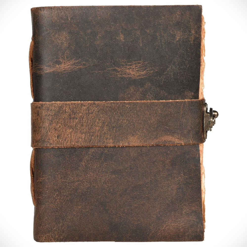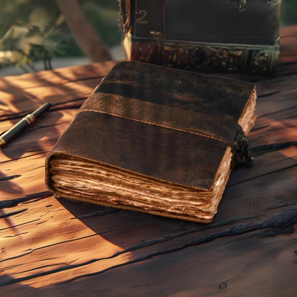 VINTAGE LEATHER JOURNAL: A Perfect Journal for Women and Men by Leather Village. This Vintage Journal is Made from Genuine Buffalo Leather which is naturally tanned with oils and is chrome free. As these Daily Journals are made with genuine Cruelty free leather so each vary in look and shade producing a unique item. JOURNAL NOTEBOOKS WITH STURDY BINDING: Belt Wrap around closure with Antique Bras lock to keep the papers of the journal safe when not being used. A sturdy hand stitched binding to make sure that no paper comes out loose. WATERCOLOR PAPER: This leather Sketchbook comes with handmade deckle edges paper which is made from recycled cotton waste these old Paper are No Bleed Scrapbook Paper. The Mixed Media Sketchbook is Suitable for Writing, Watercolor, Acrylic Colors, Pastel Color and all Dry & Wet Mediums. Use it like Sketch Pad, Watercolor Sketchbook etc. PERFECT GIFT: This vintage-inspired journal serves as an exquisite and timeless gift suitable for a diverse range of recipients, including women, men, teen girls, boys, and cherished grandparents. A lovely treat for your loved ones for an anniversary, birthday or graduation present, or for someone starting a new adventure LEATHER VILLAGE PROMISE: - Leather Village Leather Bound Journal comes with the Trust and promise of Purity of craftsmanship with each Writing Journal. Product Description LEATHER VILLAGE Premium Old Vintage Journal for Men & Women The Perfect Journal for Creatives, Travelers, and Thoughtful Souls An ideal gift for artist writers, travelers, graduates, friends, or anyone who has a love for writing and note-taking. A Journal that is worthy of your thoughts and ideas, that will make you feel special every time someone opens it and that will last a lifetime. Ideal for Daily Writing and Drawing Needs Unique Bound Journal The Unique Bound Journal offers premium leather, a secure lock, and a stylish design for writing and safekeeping your thoughts. 150 GSM Thick Vintage Paper 150 GSM Thick Vintage Paper provides a durable, high-quality feel, ideal for journaling, sketching, and preserving memories with a classic texture. Secure and Sturdy Binding Secure and sturdy binding keeps your journal durable, ensuring pages stay intact for long-lasting use. Old Handmade Journal Our old handmade journals are designed to reflect your style, perfect for capturing memories, ideas, and thoughts in a one-of-a-kind way. The video showcases the product in use. The video guides you through product setup. The video compares multiple products. The video shows the product being unpacked.