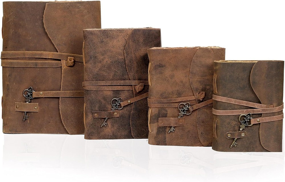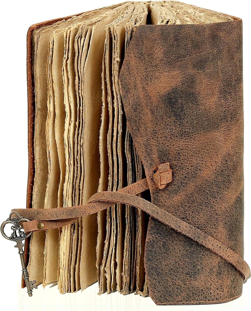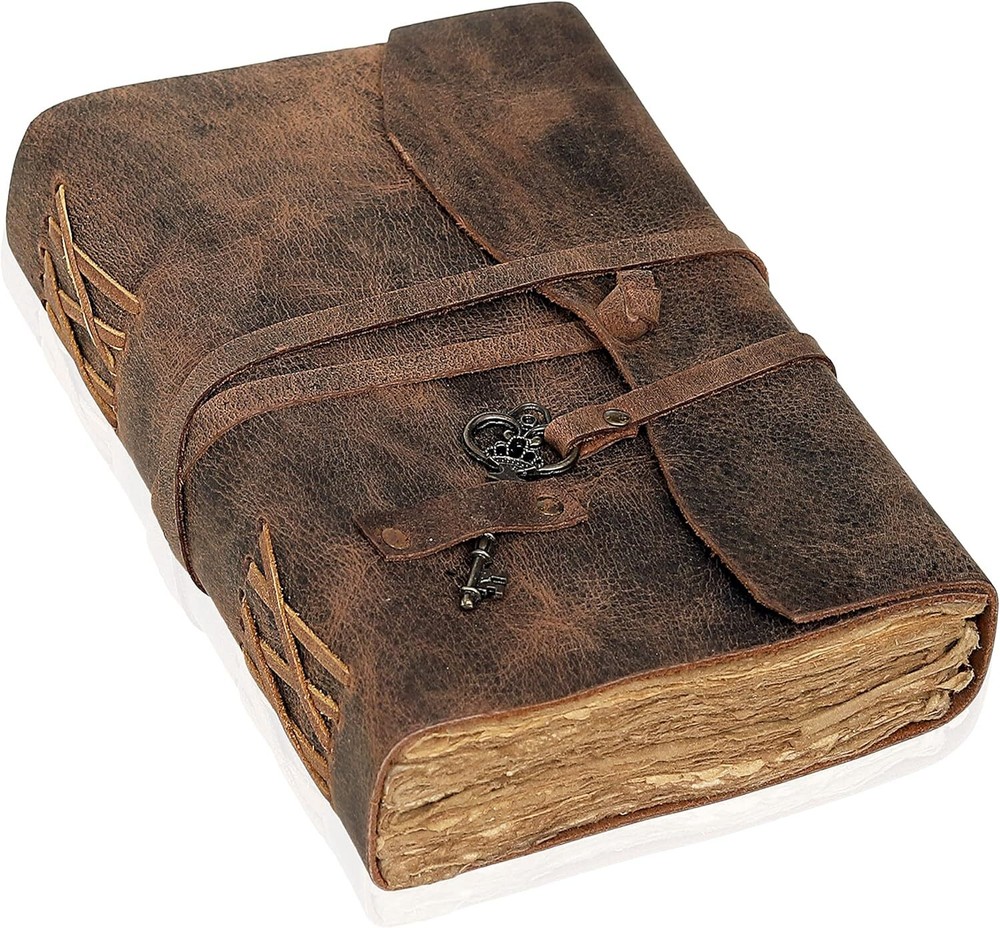 Vintage Leather Journal - Antique Handmade Leather Bound journal with deckle edge paper for Men And Women Diary - Leather Sketchbook - Drawing Journal Notebook - Great Gift (5 by 7 inch) Item Description About this item PERFECT HANDCRAFT JOURNAL - Made from 100% Buffalo Leather with Antique Deckle Edge Paper. This Book Is Hand Crafted by Artisans Working with Leather for Decades. The Color of The Journal Is Very Unique Vintage Brown. USE ANY KIND OF PEN - Write/sketch/doodle on your journal notebook with a Fountain Pen CalligraphyPen, Ball Pen, Brush Pen, Acrylic Colours, Watercolor. IDEAL USE AND PERFECT GIFT – Perfect Use for Business Executive, Poetry Work, Journalists, Craftsman, Writer. A Lovely Treat for Your Loved Ones for An Anniversary, Birthday or Graduation Present, Or for Someone Starting A New Adventure and A Perfect Gift for Those Who Love Vintage One. DIMESNIONS – (7” X 5” X 1.5”) With Uncut Deckle Edge Paper, Easily Handle Notebook, You Can Fit with Minimum Space, Easily Handle in Long Journey. Once You Have Used It You Will Feel Like You Have the Best Journal in the World. BINDING AND KEY BOOKMARK – Binding Is Made by Hand Stitching Which Having Enough Strength That the Paper Never Comes Out. The Key Is Very Antique Can Be Used as Bookmark. The Leather Strap Wrap Around the Journal Is Complete Solution for Paper Safety and Open-Close the Journal. The Journal Made by High Quality Buffalo Leather and Paper Have Been Used Is Vintage Historical Paper Which Is Very Durable. Payment safe payment via ebay Shipping F And Free Shipping Return 30 Day's returns