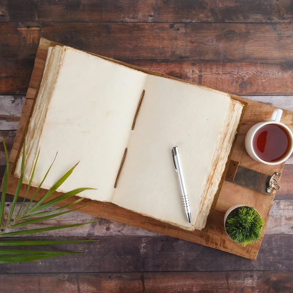 VINTAGE LEATHER JOURNAL: A Perfect Journal for Women and Men by Leather Village. This Vintage Journal is Made from Genuine Buffalo Leather which is naturally tanned with oils and is chrome free. As these Daily Journals are made with genuine Cruelty free leather so each vary in look and shade producing a unique item. JOURNAL NOTEBOOKS WITH STURDY BINDING: Belt Wrap around closure with Antique Bras lock to keep the papers of the journal safe when not being used. A sturdy hand stitched binding to make sure that no paper comes out loose. WATERCOLOR PAPER: This leather Sketchbook comes with handmade deckle edges paper which is made from recycled cotton waste these old Paper are No Bleed Scrapbook Paper. The Mixed Media Sketchbook is Suitable for Writing, Watercolor, Acrylic Colors, Pastel Color and all Dry & Wet Mediums. Use it like Sketch Pad, Watercolor Sketchbook etc. PERFECT GIFT: This vintage-inspired journal serves as an exquisite and timeless gift suitable for a diverse range of recipients, including women, men, teen girls, boys, and cherished grandparents. A lovely treat for your loved ones for an anniversary, birthday or graduation present, or for someone starting a new adventure LEATHER VILLAGE PROMISE: - Leather Village Leather Bound Journal comes with the Trust and promise of Purity of craftsmanship with each Writing Journal. Product Description LEATHER VILLAGE Premium Old Vintage Journal for Men & Women The Perfect Journal for Creatives, Travelers, and Thoughtful Souls An ideal gift for artist writers, travelers, graduates, friends, or anyone who has a love for writing and note-taking. A Journal that is worthy of your thoughts and ideas, that will make you feel special every time someone opens it and that will last a lifetime. Ideal for Daily Writing and Drawing Needs Unique Bound Journal The Unique Bound Journal offers premium leather, a secure lock, and a stylish design for writing and safekeeping your thoughts. 150 GSM Thick Vintage Paper 150 GSM Thick Vintage Paper provides a durable, high-quality feel, ideal for journaling, sketching, and preserving memories with a classic texture. Secure and Sturdy Binding Secure and sturdy binding keeps your journal durable, ensuring pages stay intact for long-lasting use. Old Handmade Journal Our old handmade journals are designed to reflect your style, perfect for capturing memories, ideas, and thoughts in a one-of-a-kind way. The video showcases the product in use. The video guides you through product setup. The video compares multiple products. The video shows the product being unpacked.